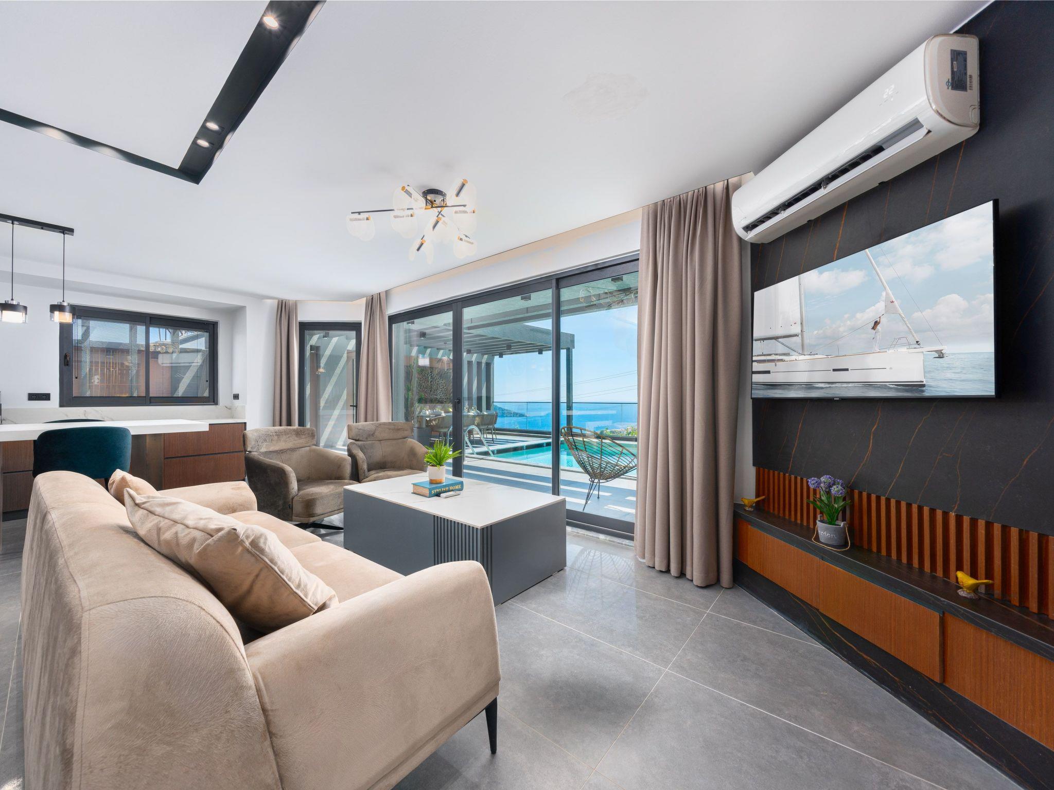 Discover the perfect getaway for an unforgettable break at the gorgeous villa in the Kiziltas area of Kalkan. This inviting residence combines comfort with an extensive range of relaxation facilities and can accommodate up to 8 guests. Complemented by exclusive extras such as a whirlpool, hammam and sauna, your stay here promises pure relaxation and luxury, surrounded by picturesque sea and natural scenery.