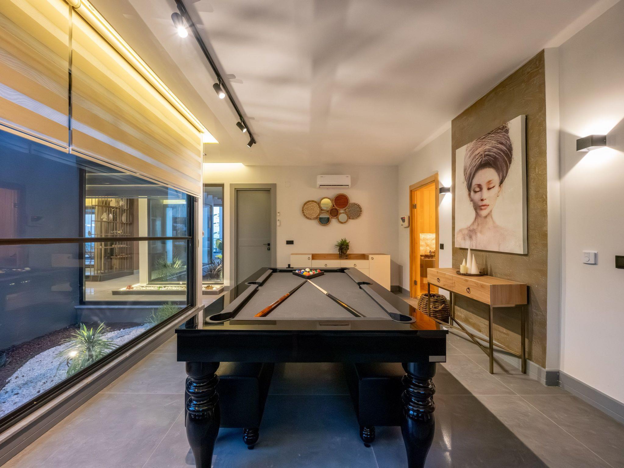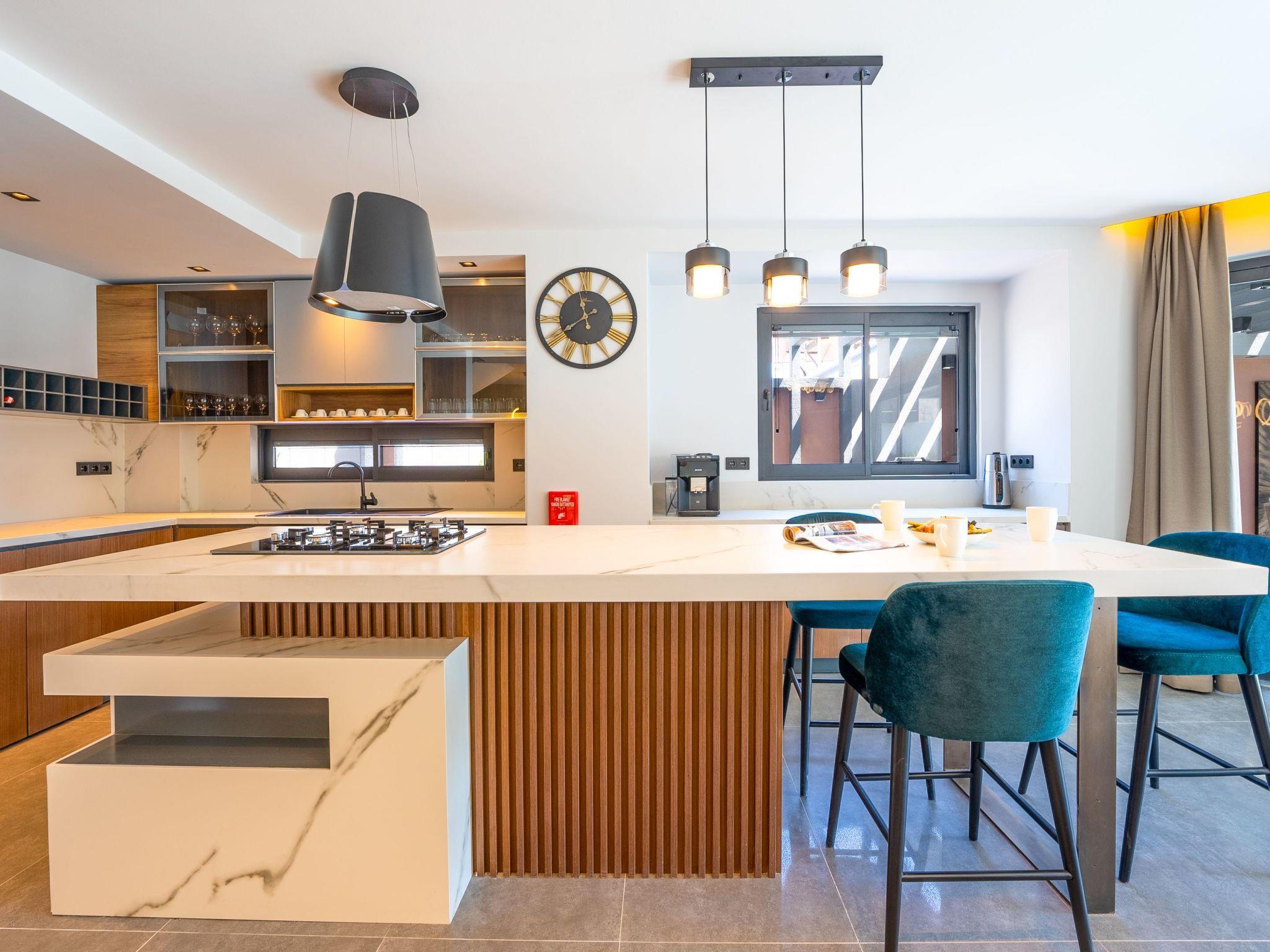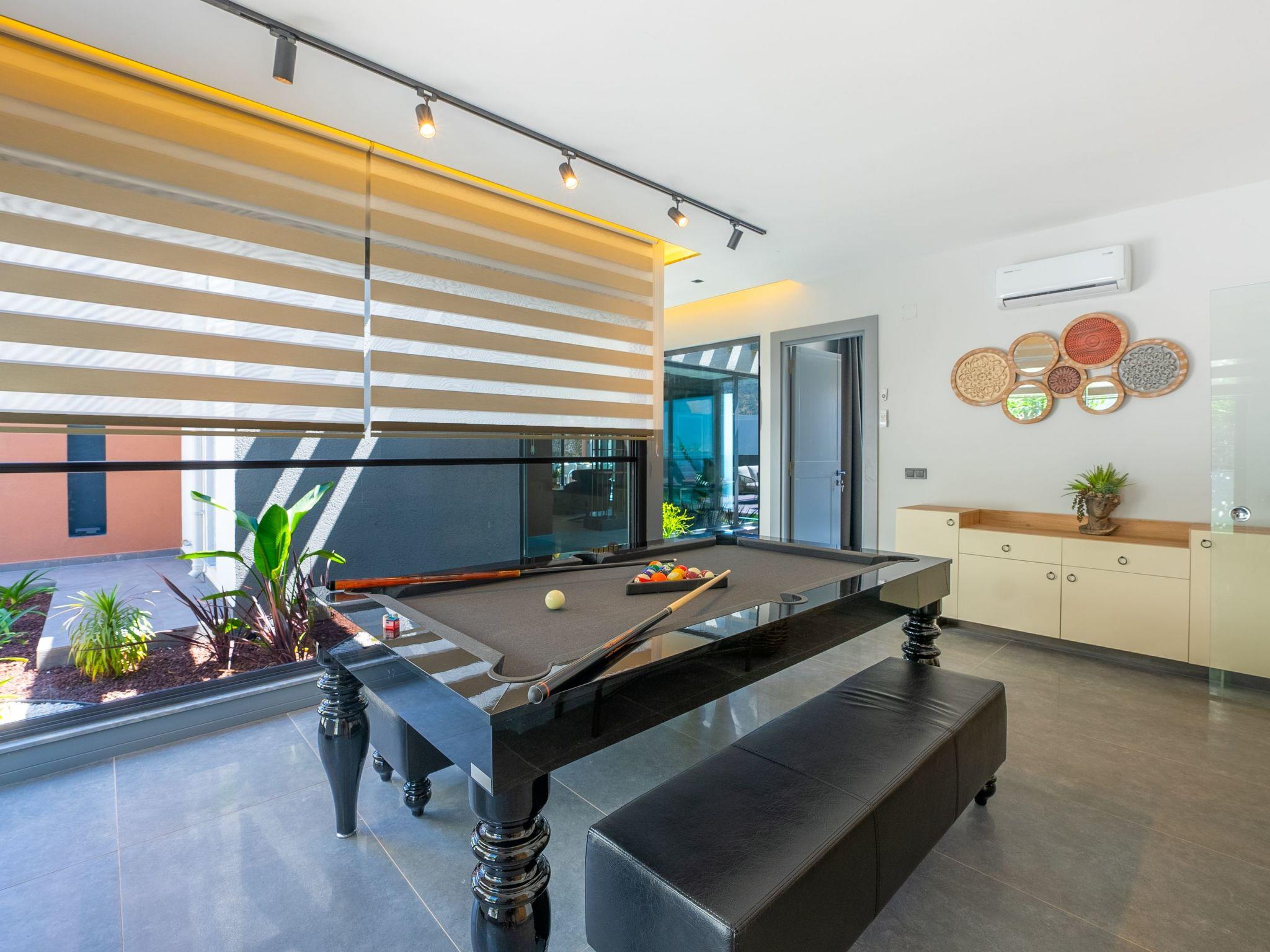 The centrepiece of this enchanting villa is its carefully designed interior. Here you will find everything you need for a carefree stay. The four cosy bedrooms offer peace and privacy and can be completely darkened - ideal for a restful night's sleep. Each of the four bathrooms is equipped with a modern shower. The villa also has a fully equipped kitchen with gas hob and dishwasher, complemented by a washing machine for your convenience. The offer is rounded off by an air-conditioned environment throughout the house and entertainment options such as a pool table.