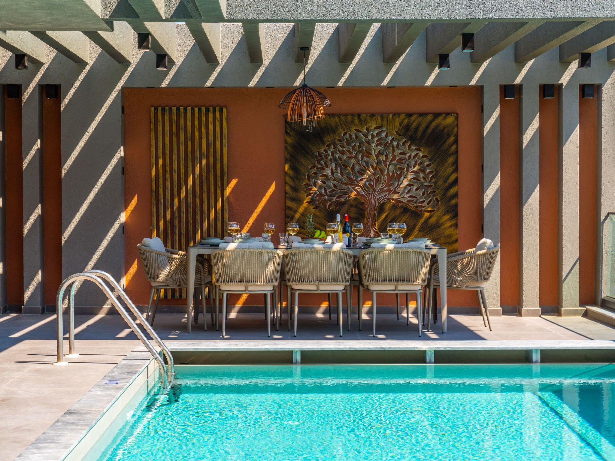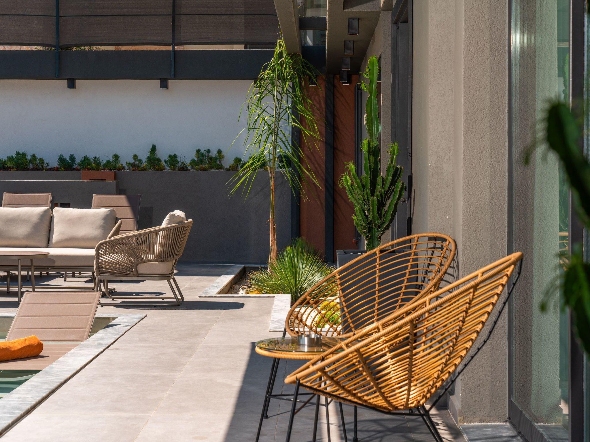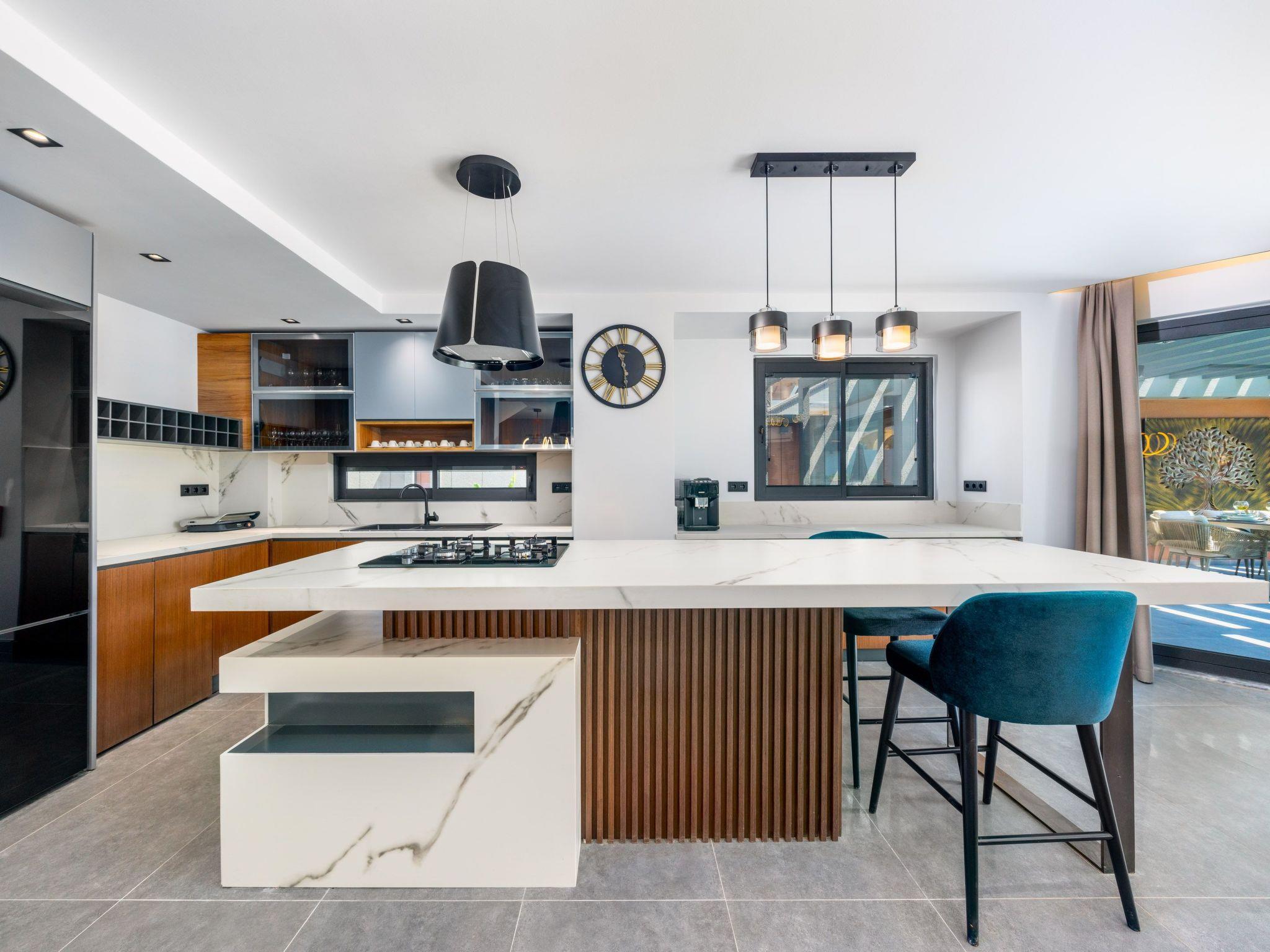 The centrepiece of this enchanting villa is its carefully designed interior. Here you will find everything you need for a carefree stay. The four cosy bedrooms offer peace and privacy and can be completely darkened - ideal for a restful night's sleep. Each of the four bathrooms is equipped with a modern shower. The villa also has a fully equipped kitchen with gas hob and dishwasher, complemented by a washing machine for your convenience. The offer is rounded off by an air-conditioned environment throughout the house and entertainment options such as a pool table.