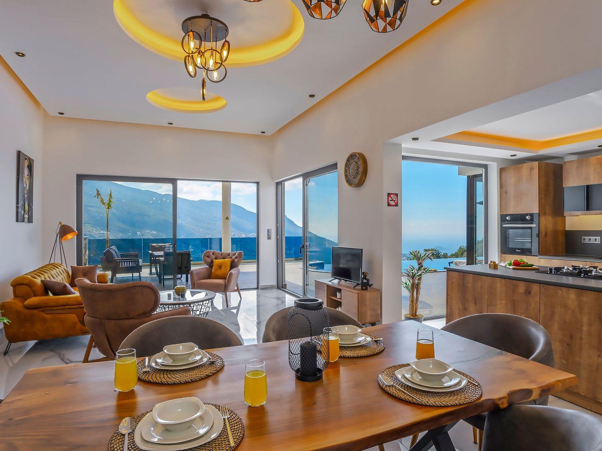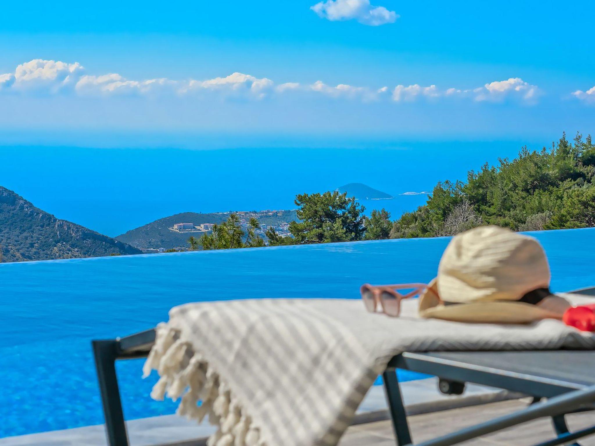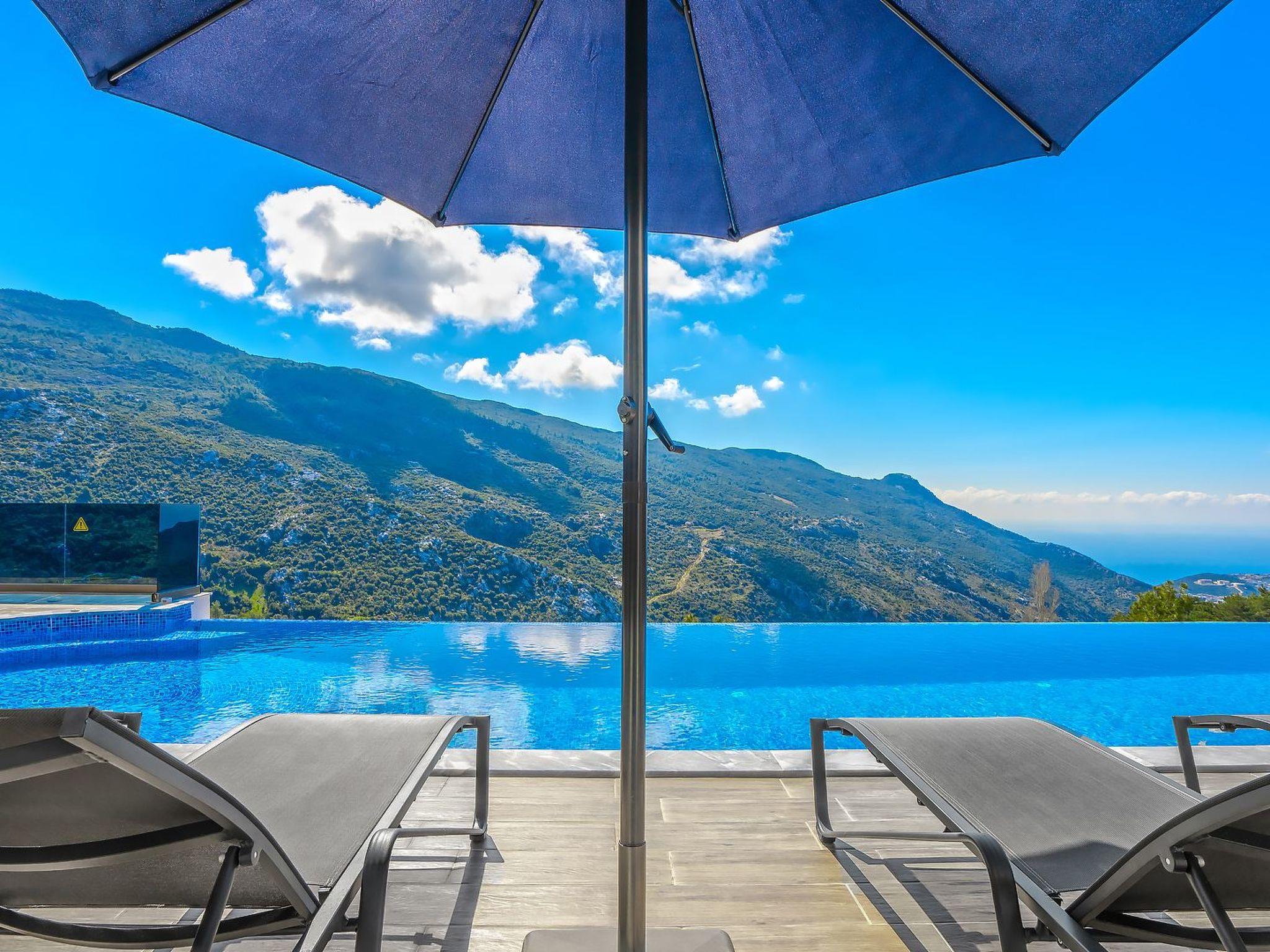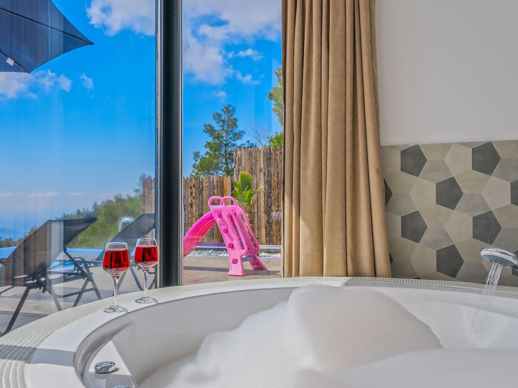 With 2 bedrooms and 2 bathrooms, this villa can accommodate up to 4 people who want to enjoy a relaxing and luxurious holiday amidst the breathtaking scenery of Kalkan.the villa is equipped with modern amenities and offers beautiful views of the sea, nature and the valley. From the terrace you can enjoy the view of the island while relaxing in the jacuzzi and enjoying the tranquillity of the surroundings.