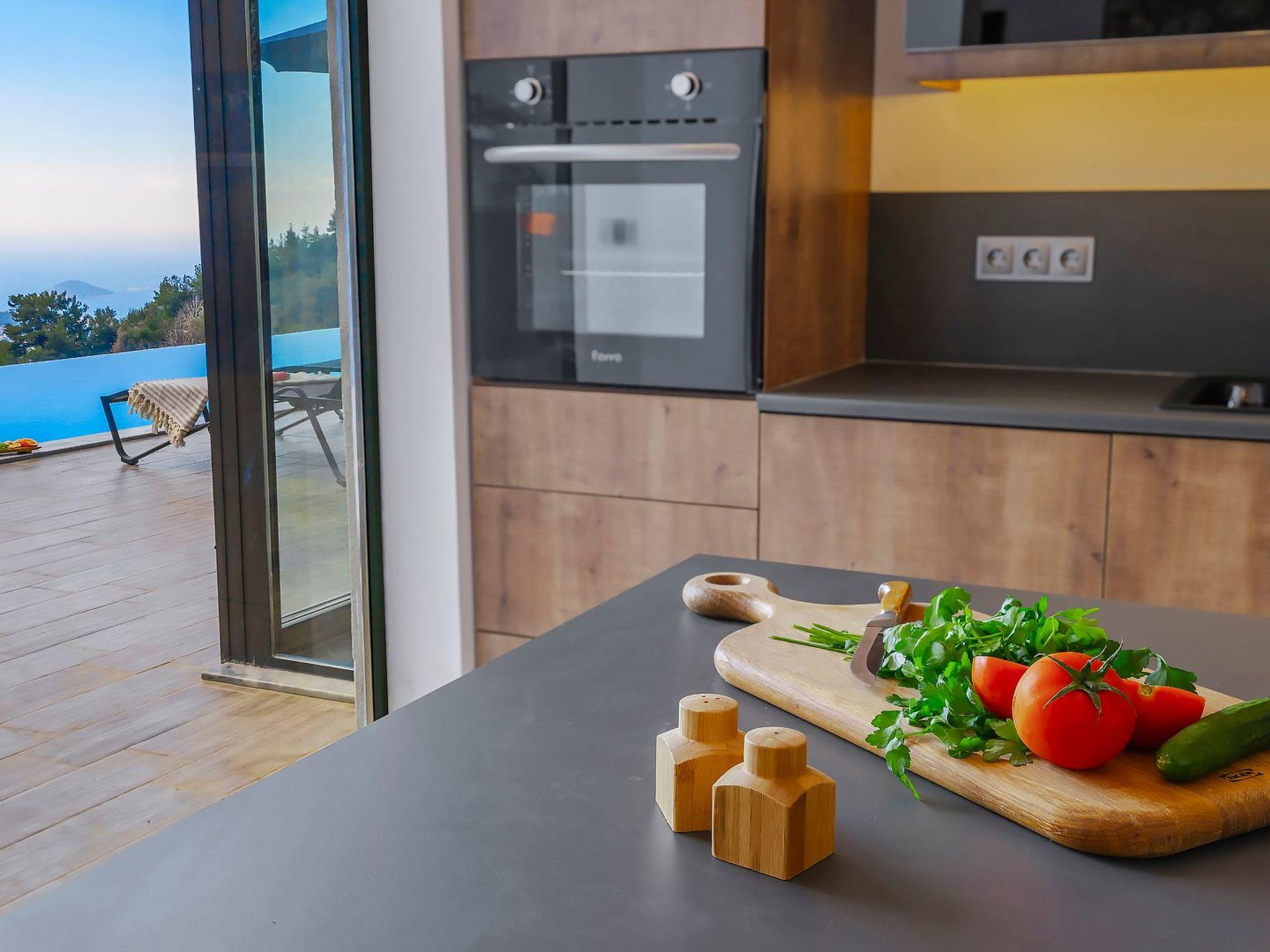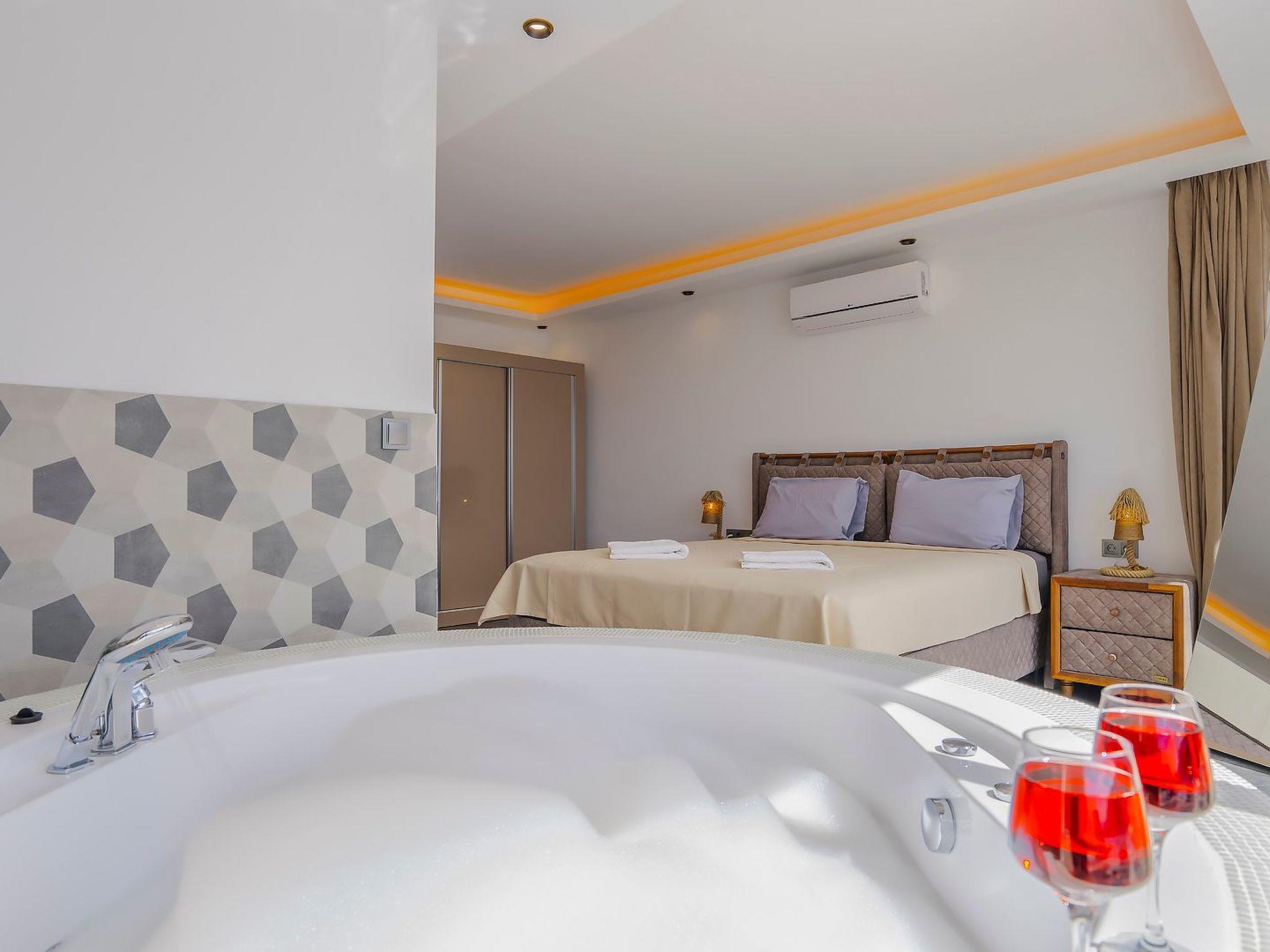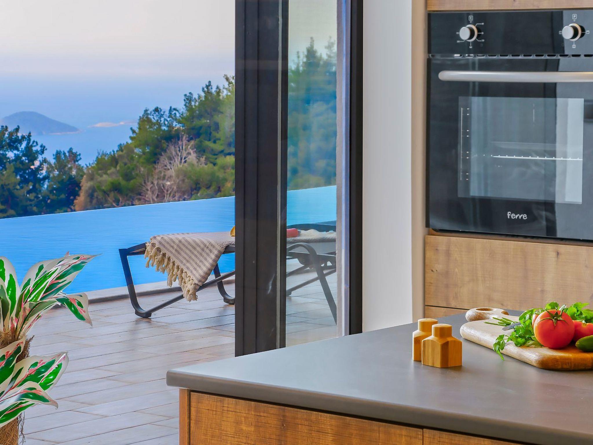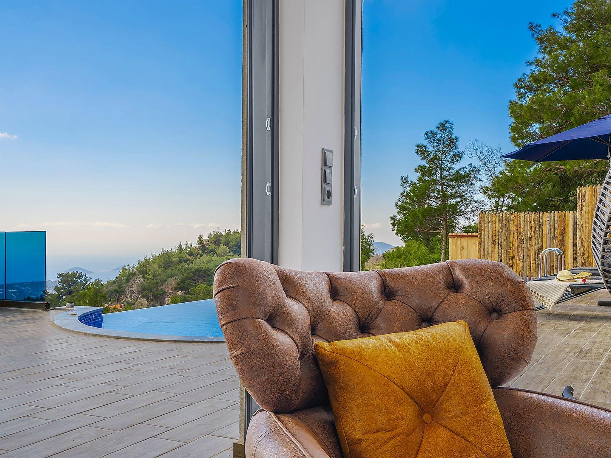 With 2 bedrooms and 2 bathrooms, this villa can accommodate up to 4 people who want to enjoy a relaxing and luxurious holiday amidst the breathtaking scenery of Kalkan.the villa is equipped with modern amenities and offers beautiful views of the sea, nature and the valley. From the terrace you can enjoy the view of the island while relaxing in the jacuzzi and enjoying the tranquillity of the surroundings.