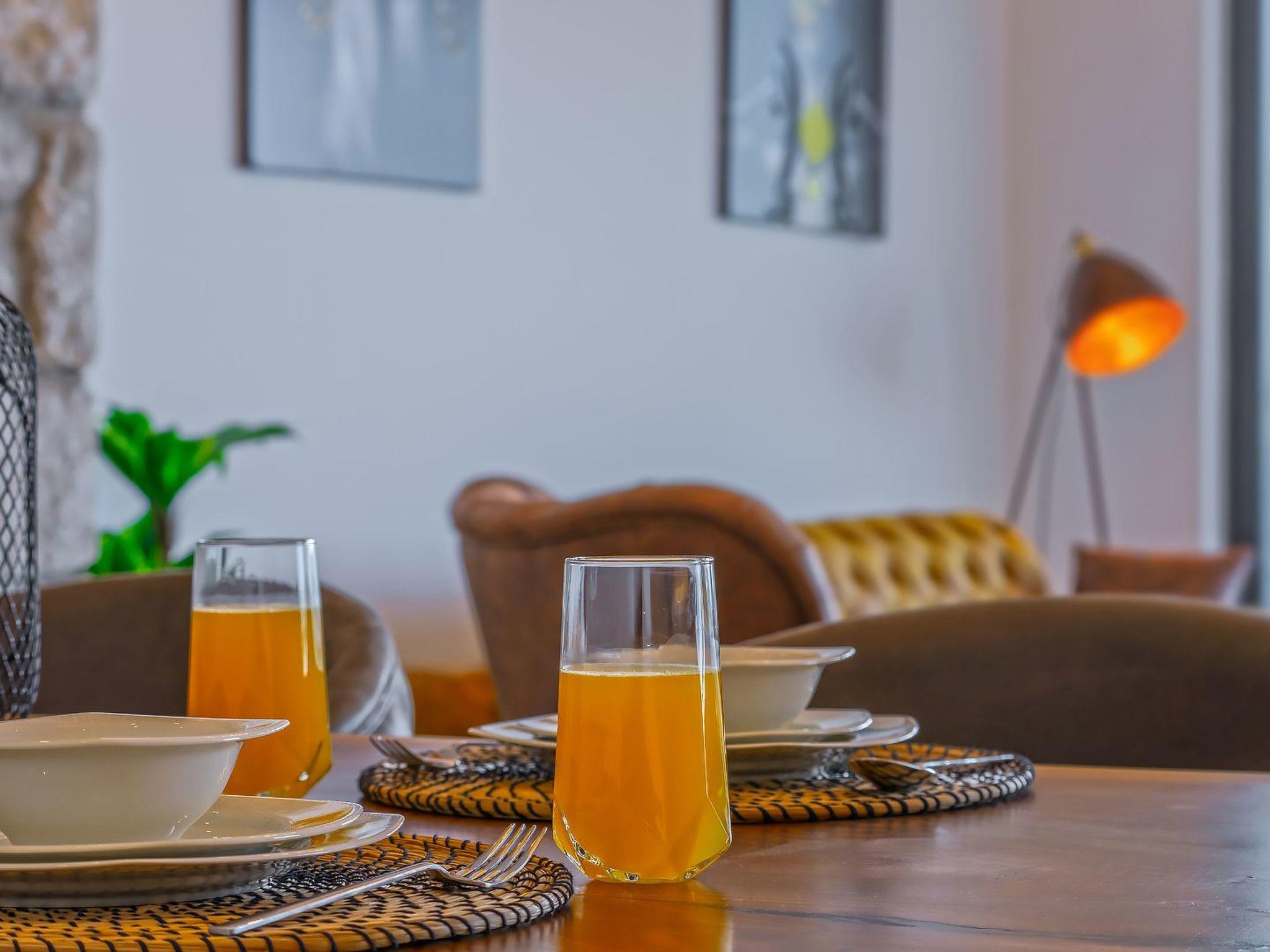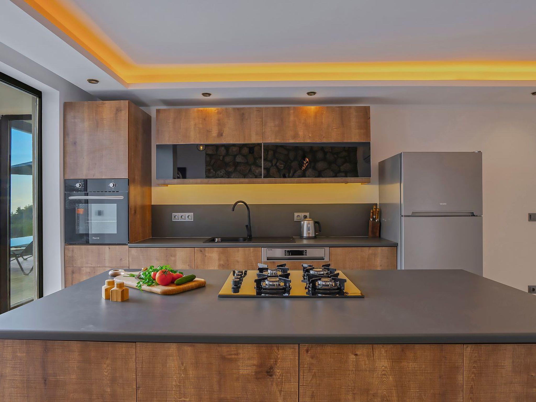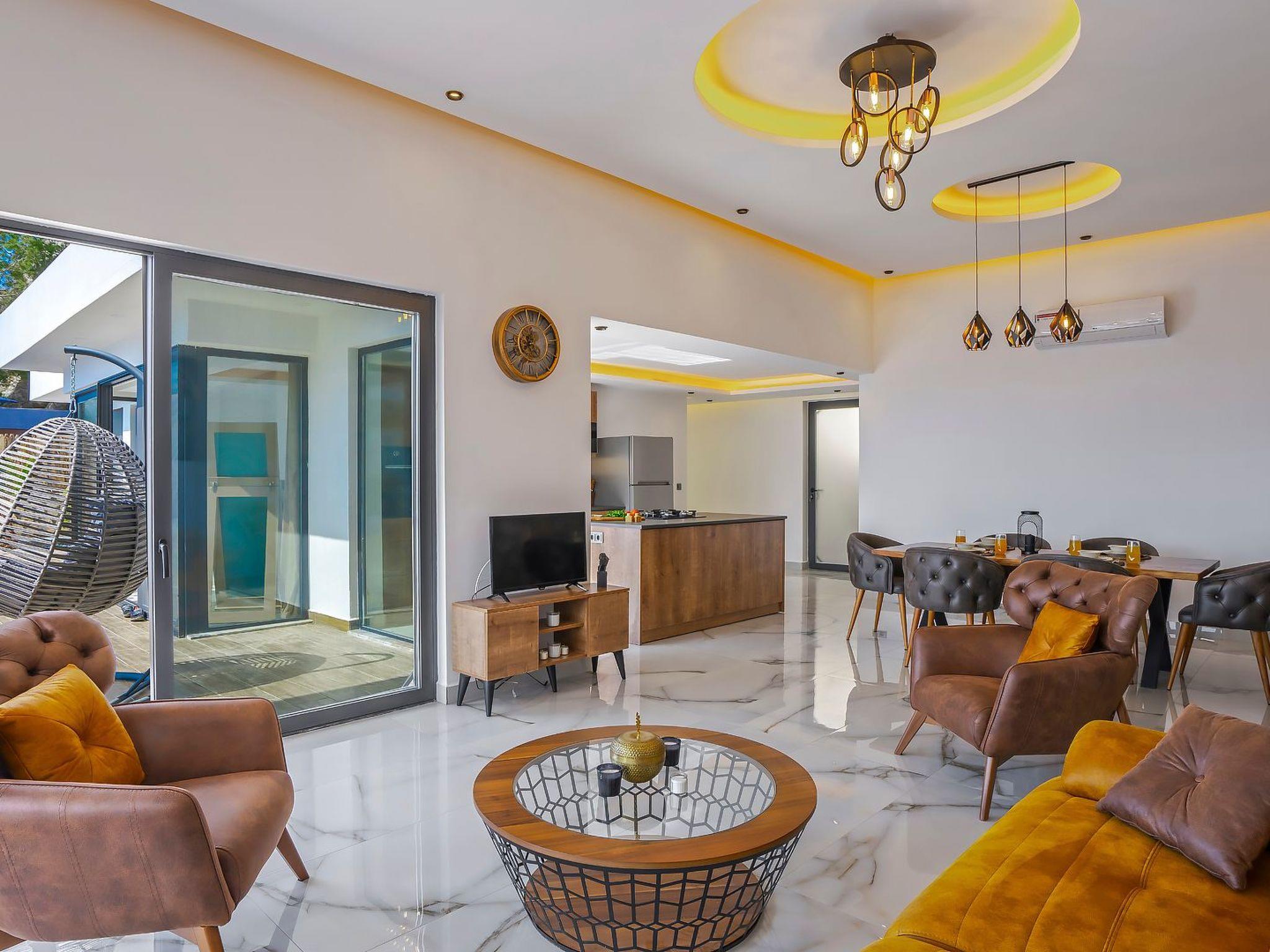 The interior of the villa is modern and stylishly designed and offers an open and airy atmosphere. The kitchen is fully equipped and offers everything you need to cook and enjoy delicious meals. The living room is comfortably furnished and offers a cosy atmosphere where you can relax and enjoy your favourite movies on the flat screen TV.