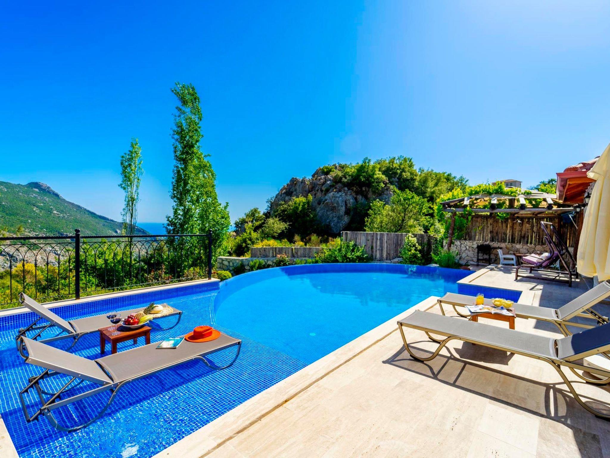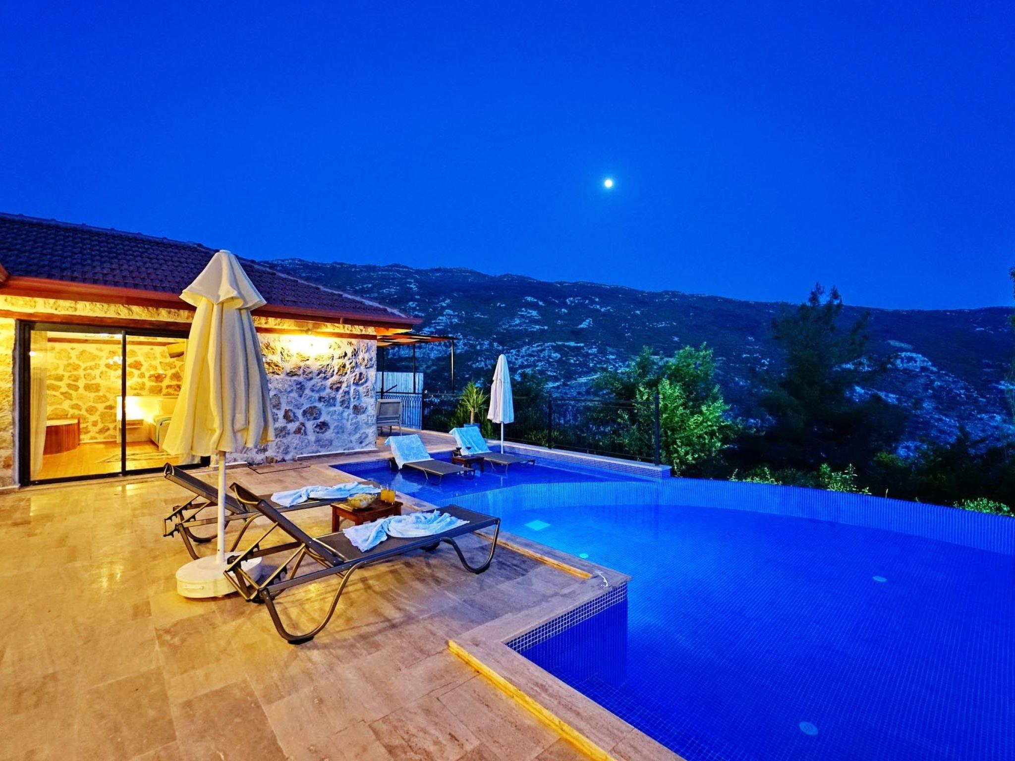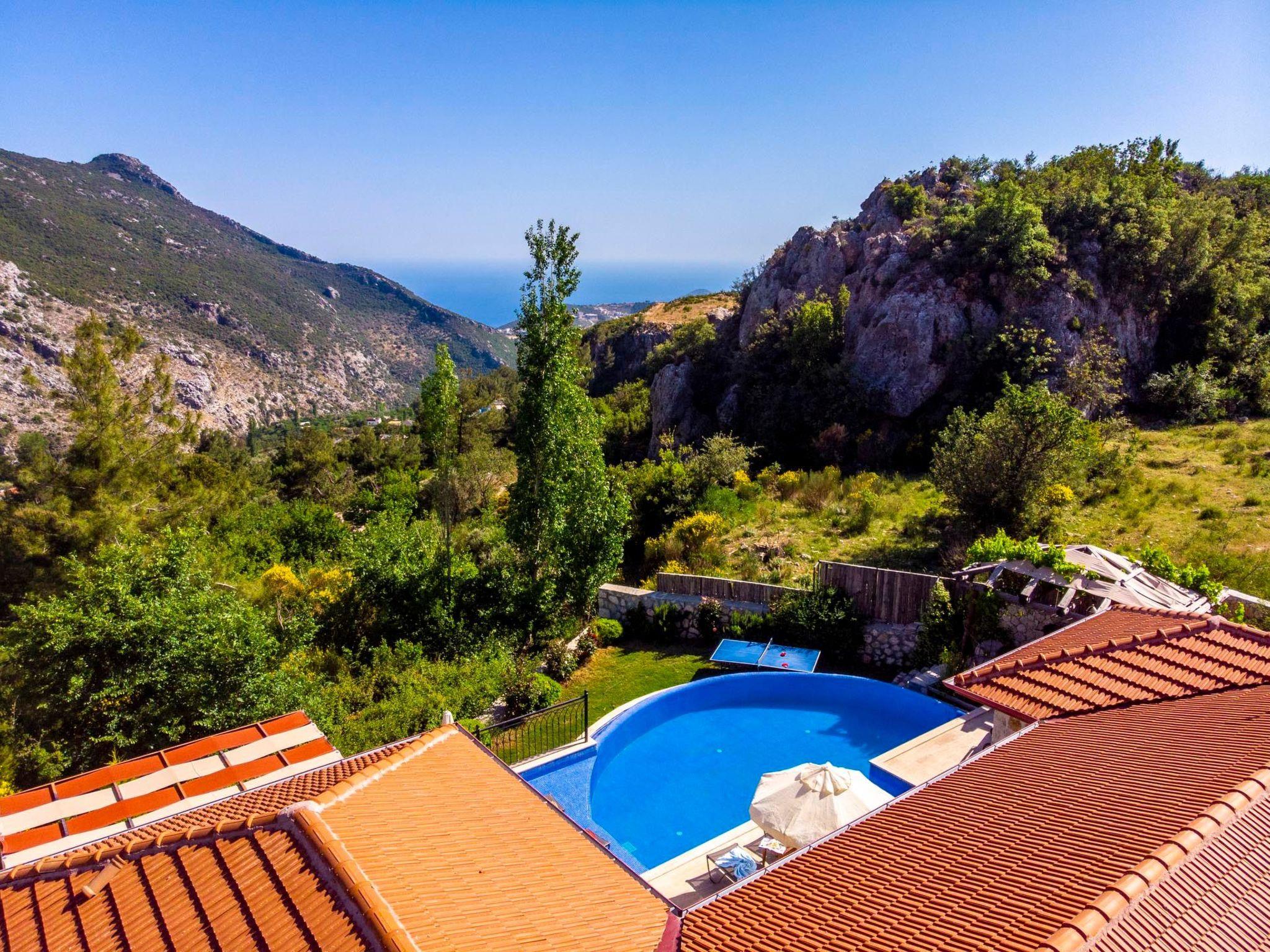 The villa is located off the beaten track in the picturesque village of Islamlar, just a short drive from Kalkan. The elevated position offers spectacular views of the surrounding mountains and the unspoilt nature of the region.
