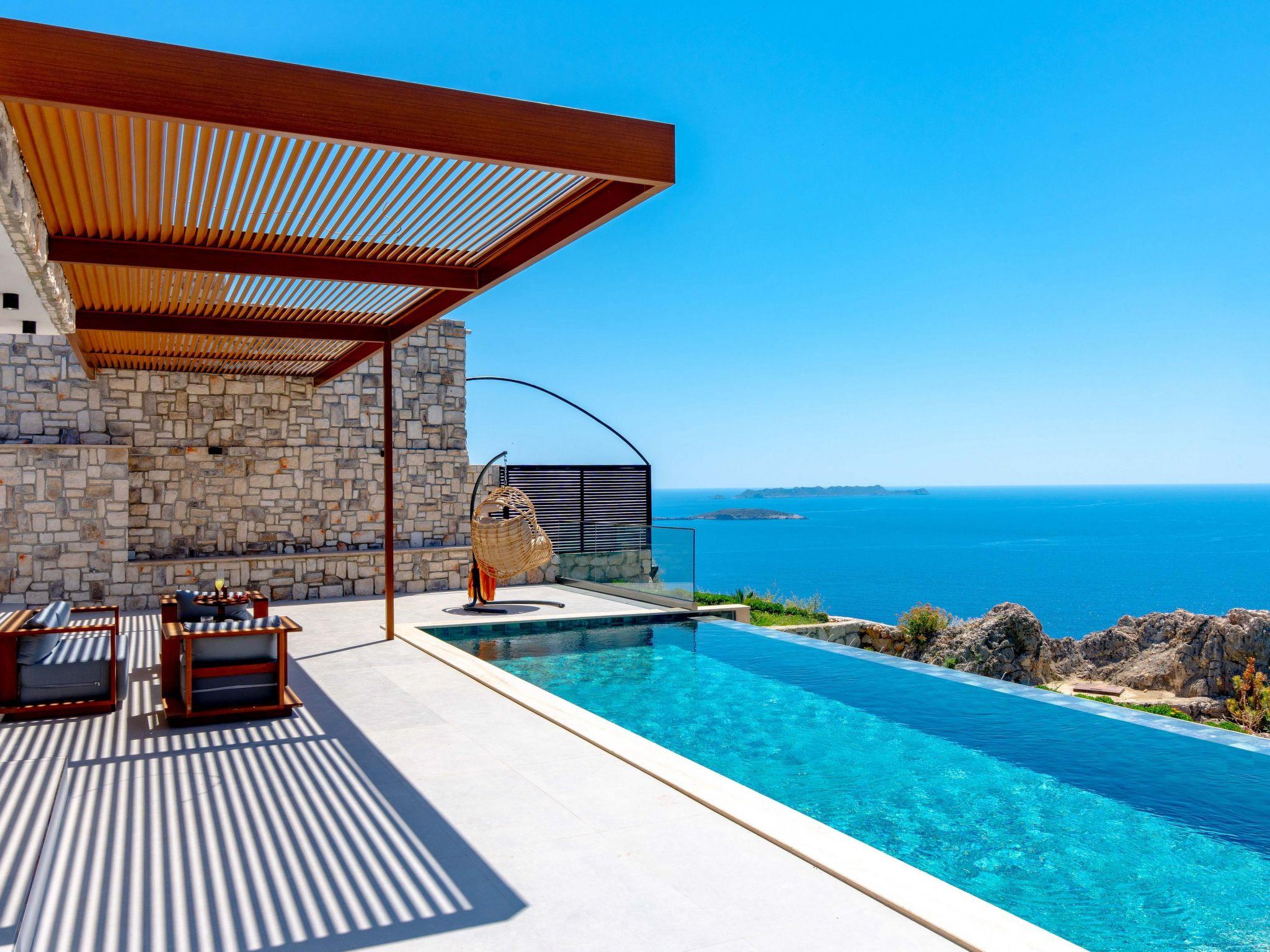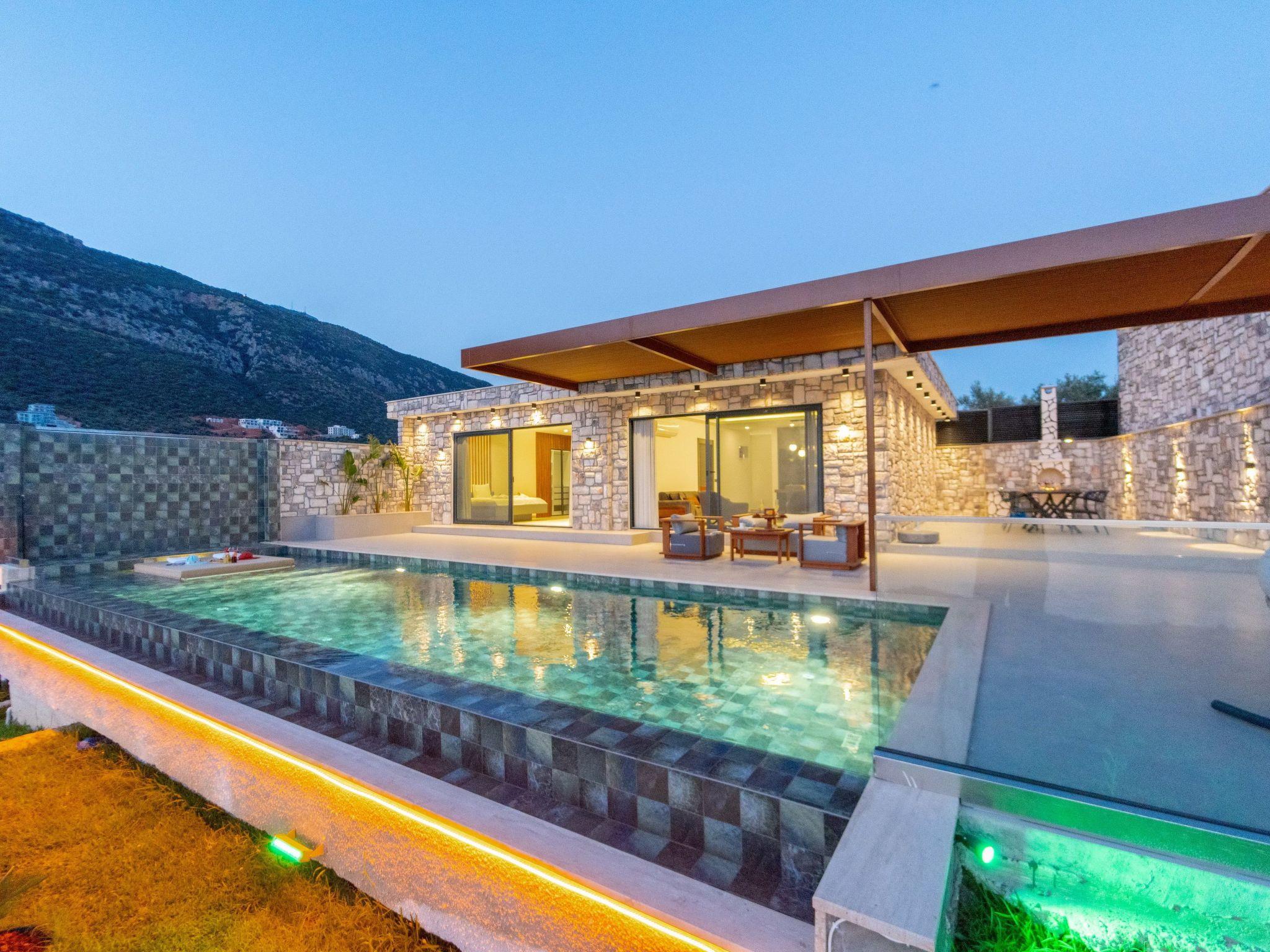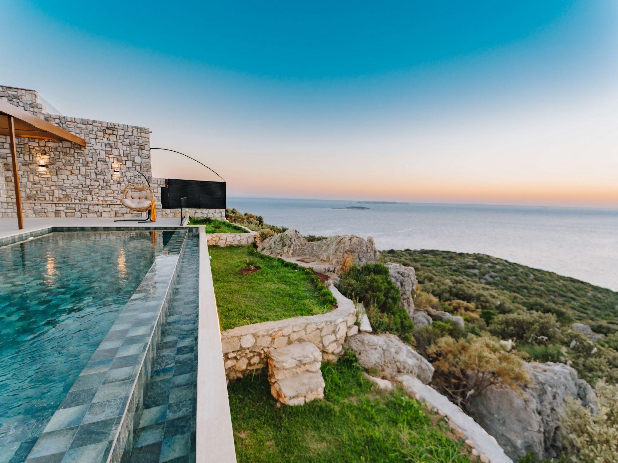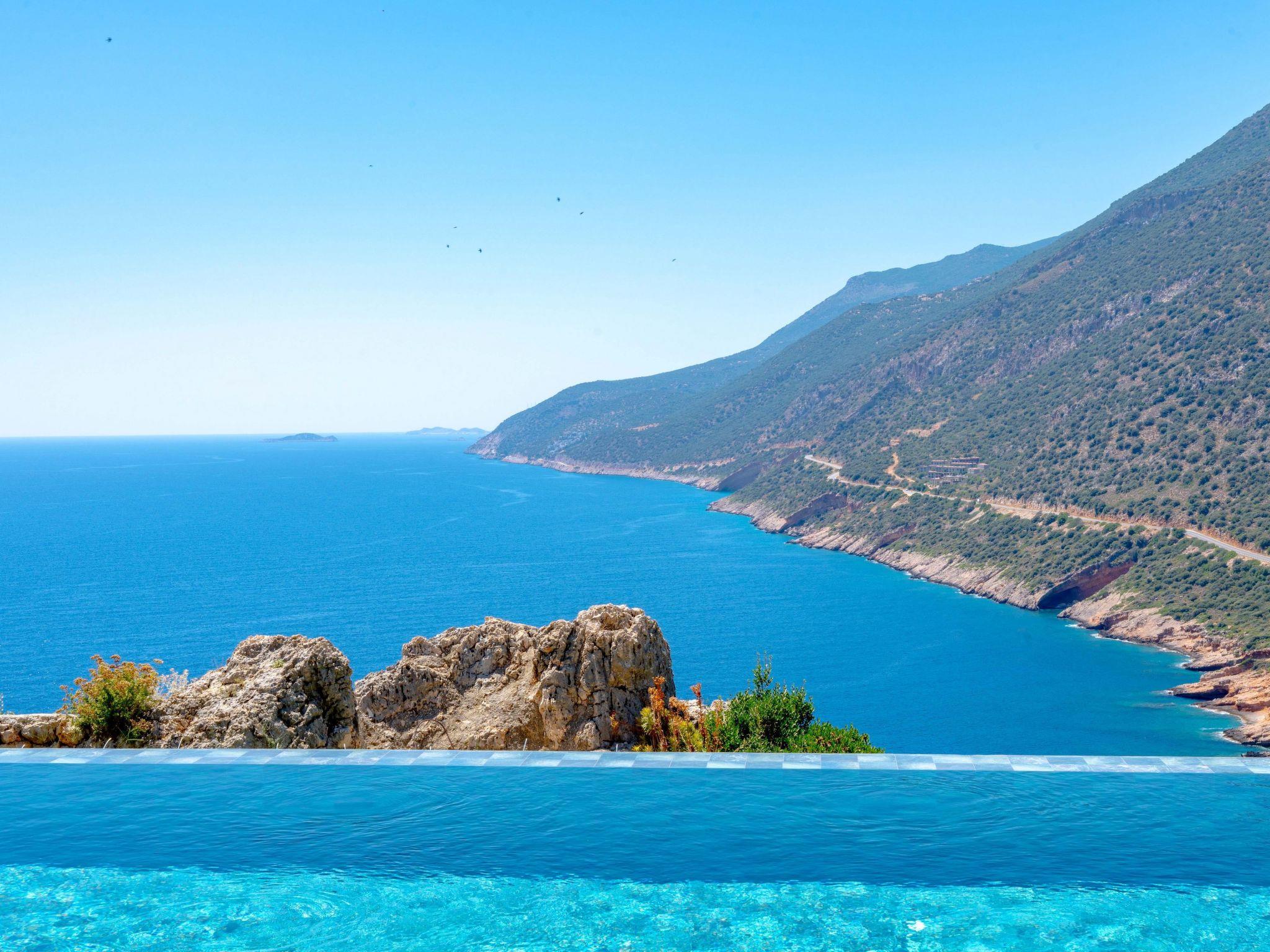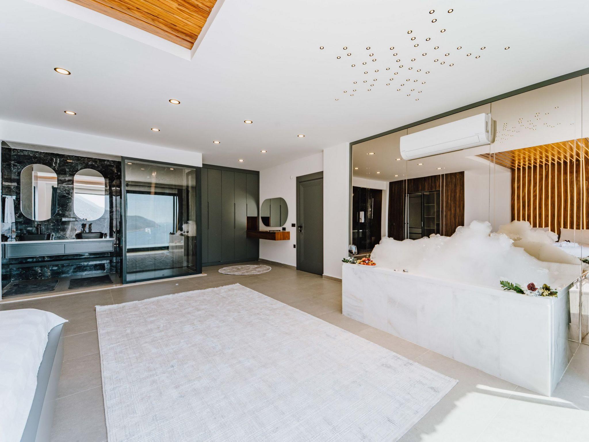 The villa is located in the quiet neighbourhood of Gökseki in Kas and belongs to the luxury class with 2 bedrooms with en-suite bathrooms and a capacity for 4 people. Thanks to its impressive sea view backdrop and extensive facilities, it is one of the most popular accommodations for guests who want to completely switch off on holiday.