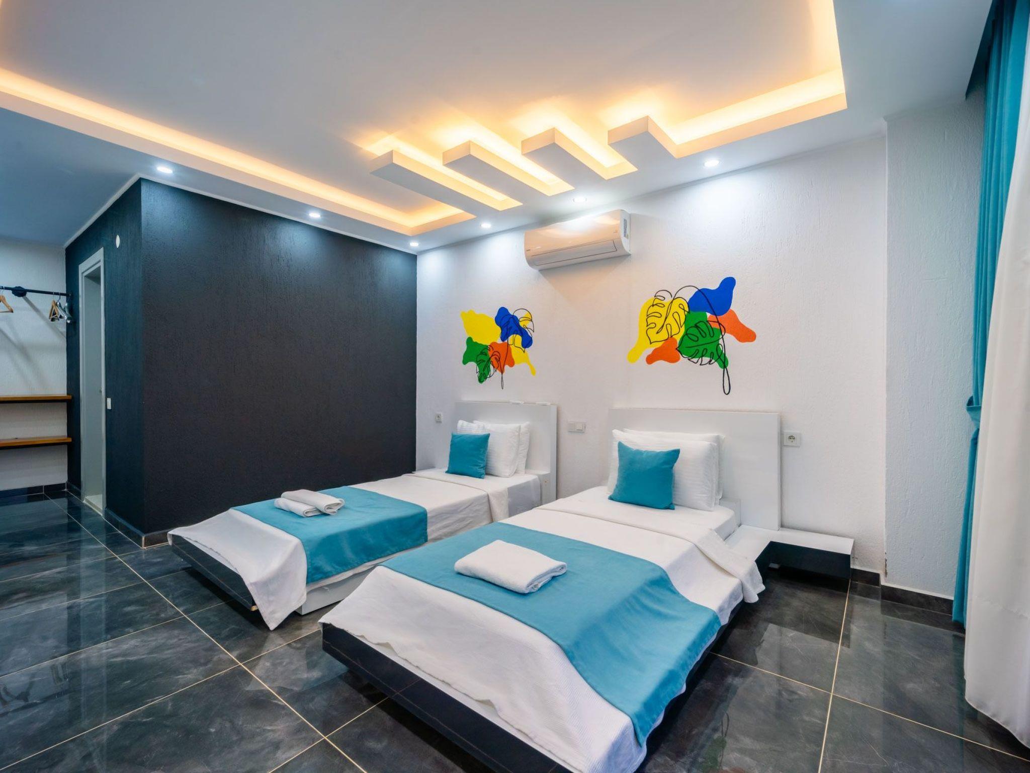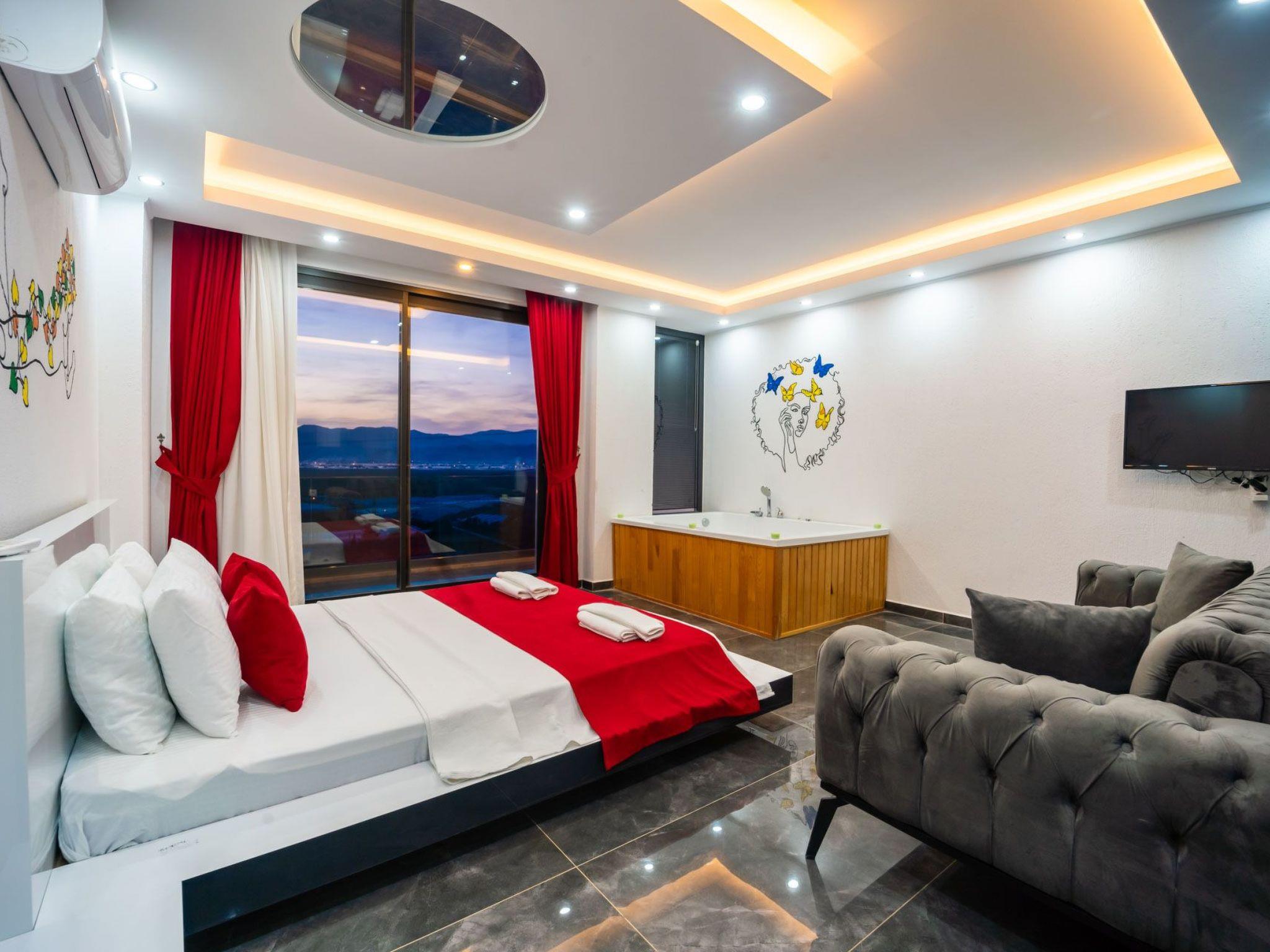 Discover the idyllic holiday home in Üzümlü, Anatolia, nestled in the picturesque landscape of Kalkan Yesilköy. This charming domicile is the perfect choice for families or couples looking for an unforgettable holiday surrounded by nature. The holiday home offers complete privacy thanks to its privacy screen and an exclusive pool for sole use. With two bedrooms and two bathrooms, it is ideally suited to the needs of up to four people.