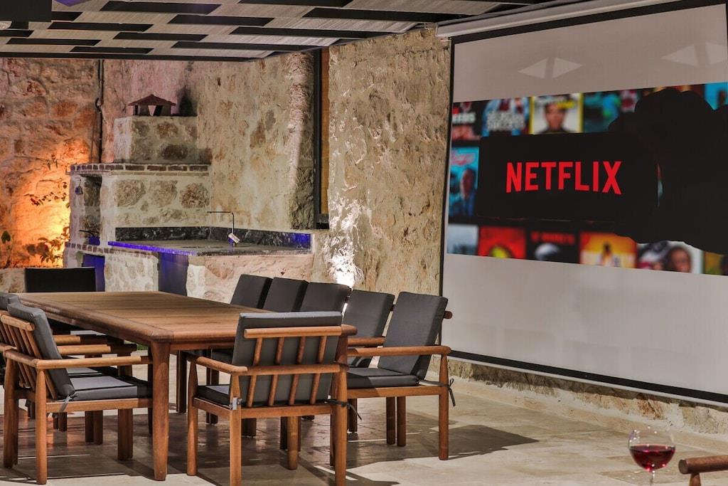 , , soveværelse(, , dobbeltseng, klimaanlæg), soveværelse(, , dobbeltseng, klimaanlæg), soveværelse(, , dobbeltseng, klimaanlæg), soveværelse(, , dobbeltseng, klimaanlæg), soveværelse(, , enkeltseng, enkeltseng, klimaanlæg), soveværelse(, , enkeltseng, enkeltseng, klimaanlæg), Internetadgang, Internetadgang, vaskemaskine, terrasse(, havemøbler, solstole), parkering, strygebræt, strygejern, tørreskab, Alarm