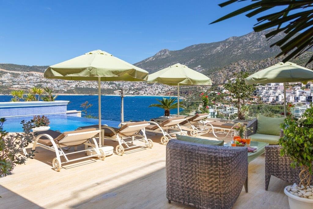 Villa Bluewhite er en smuk villa med betagende udsigt, beliggende i Kalkan-Kisla. Vores udlejningsvilla Bluewhite ligger i gåafstand fra havet og tilbyder en storslået udsigt over byen og bugten. Villaen har i alt 5 soveværelser og kan rumme 10 personer.