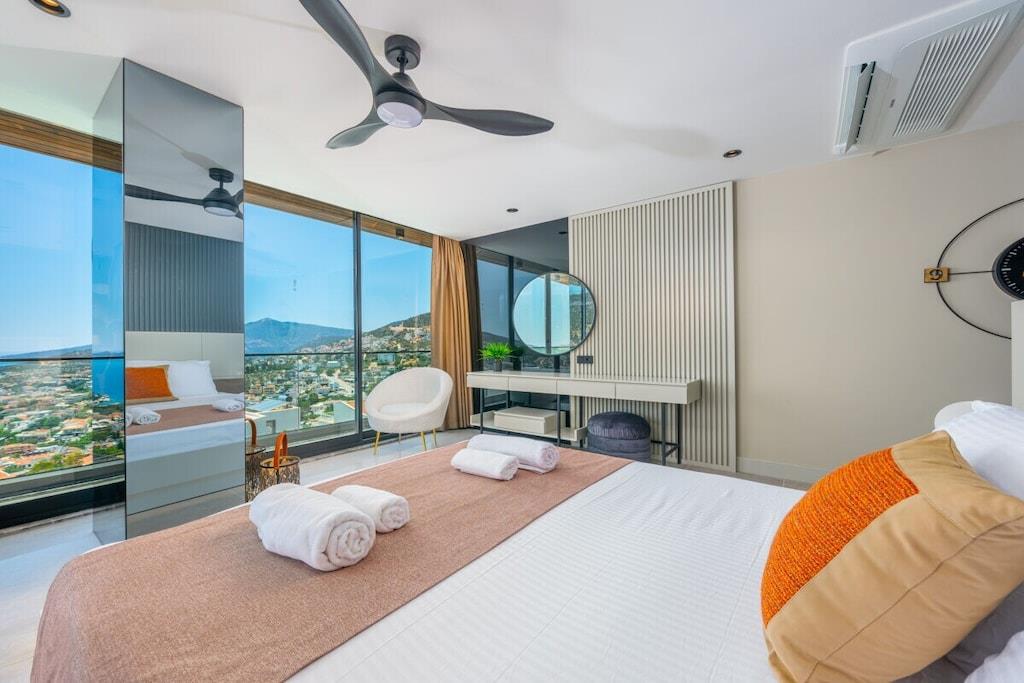 Villa Sup er en luksuriøs villa i Kalkan Kiziltas, der kan rumme op til 10 personer. Villaen tilbyder en fantastisk havudsigt og er omgivet af smuk natur. Villaen har 5 rummelige soveværelser, alle med komfortable senge og sengetøj. Stuen er moderne og luftig og tilbyder masser af plads til alle gæster. Herfra har du adgang til en stor terrasse med havudsigt, perfekt til at dele måltider eller slappe af med et glas vin. Villaen har et fuldt udstyret køkken med alt hvad du behøver til selvforplejning. Der er også et spisebord, hvor I kan nyde måltiderne sammen. Villa Sup tilbyder ultra-luksuriøse faciliteter såsom hammam, sauna og indendørs pool. Du vil nyde villaens luksus og den smukke havudsigt.