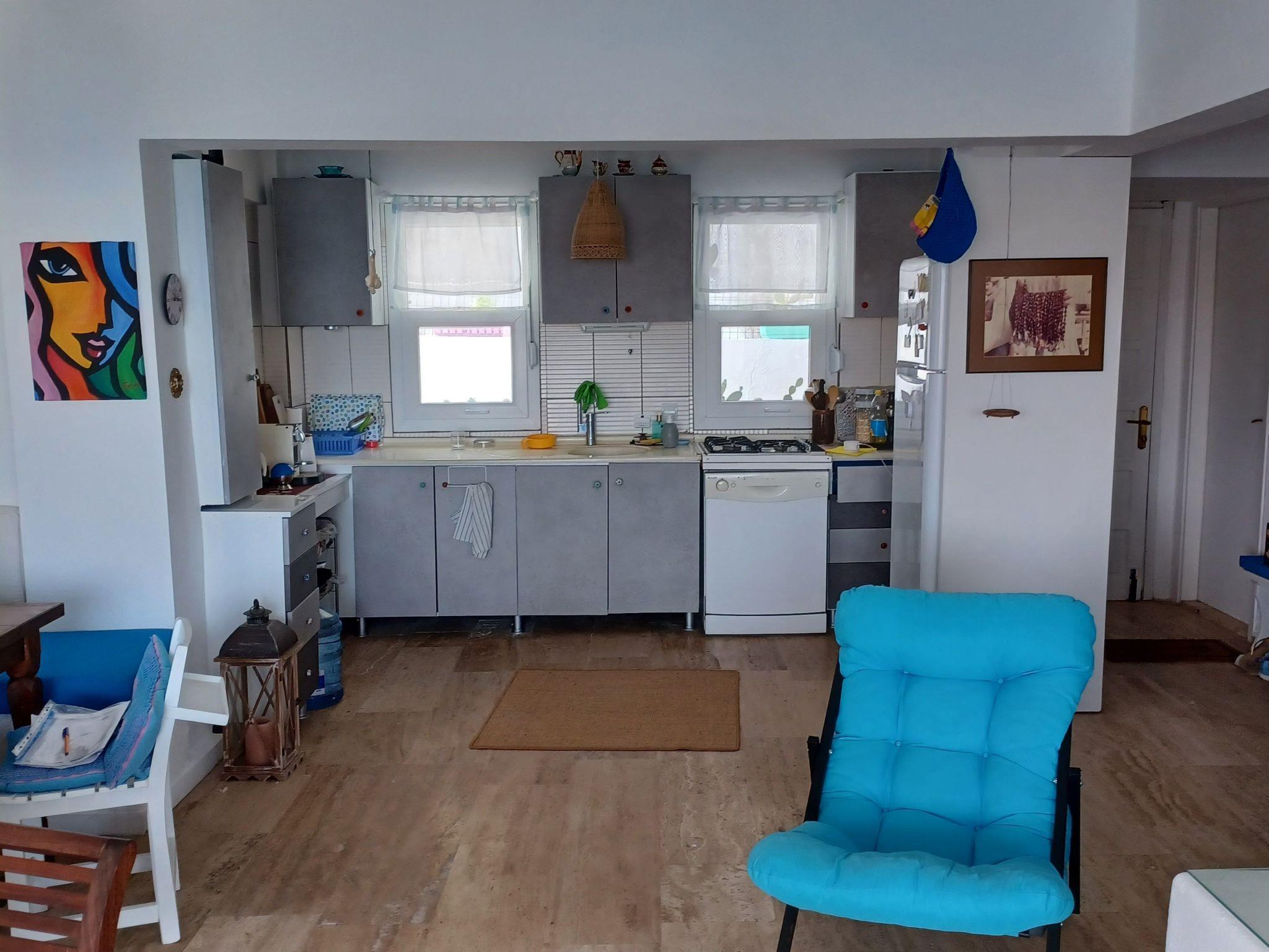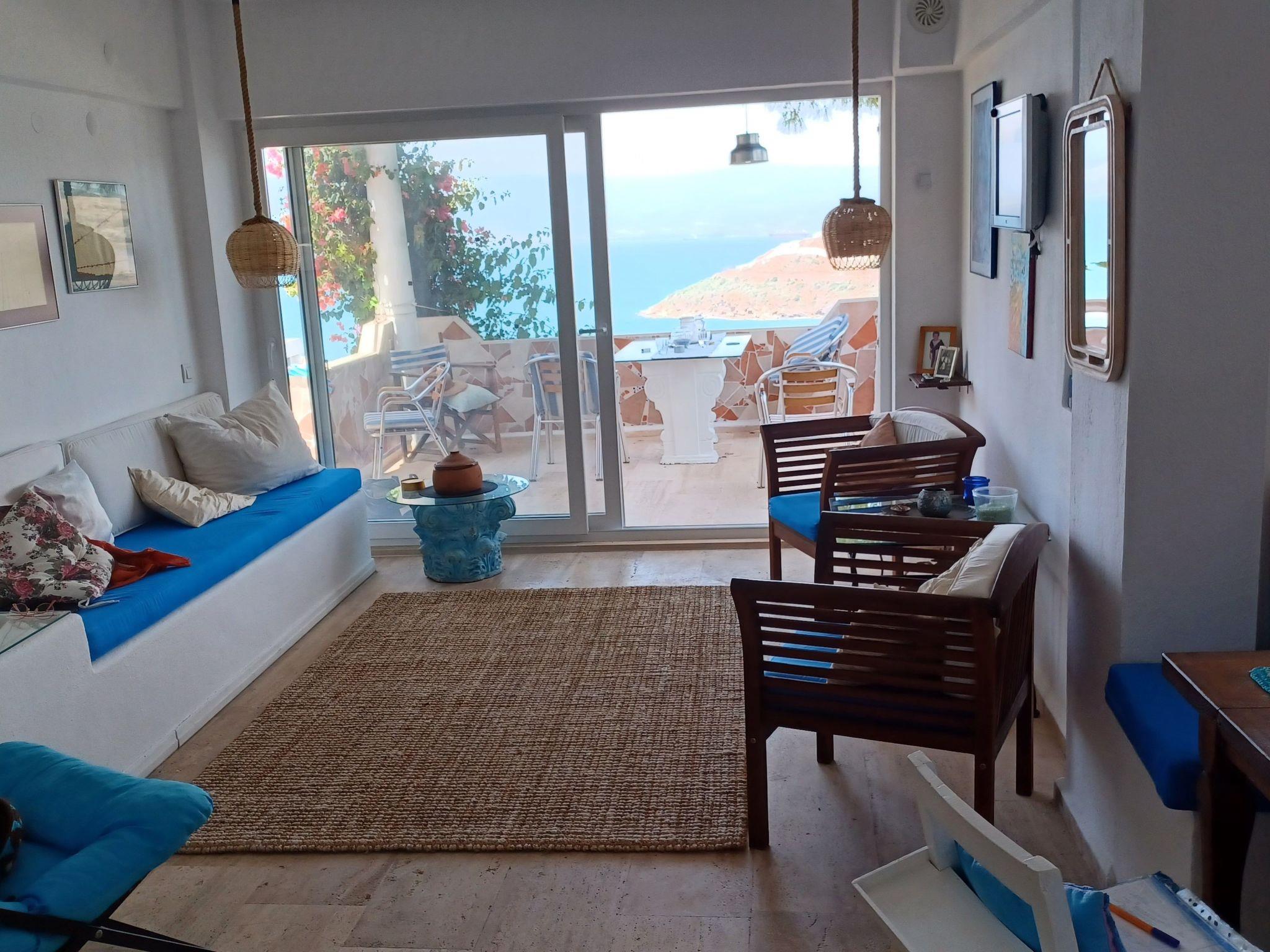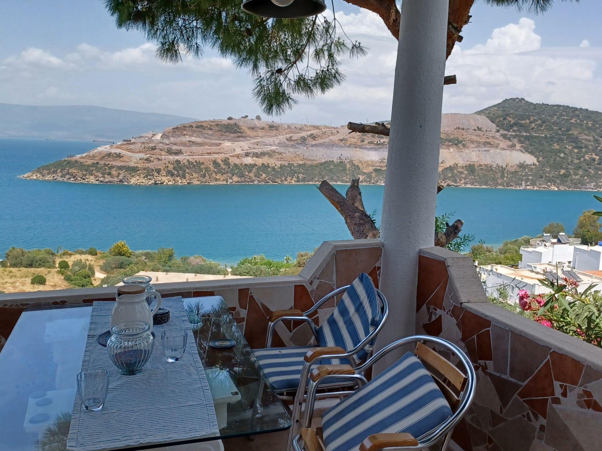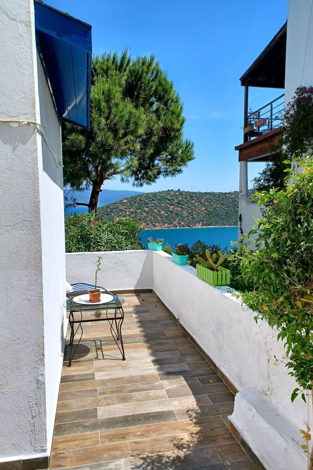 The holiday home is located directly by the sea (5 minutes to the beach). The house is on the edge of the small and quiet fishing village of Tuzla. The village offers three beaches, nice restaurants, two small grocery shops, a large supermarket, a fish shop and a weekly market on Sundays. The water quality in this region is excellent. It is quiet here and ideal for families. A bus takes you to the harbour town of Bodrum, 25 km away, or to the typical old Turkish town of Milas. The golf course is approx. 5km away. The airport is about 15km away. The house is equipped with a kitchen (gas cooker, dishwasher, espresso and coffee machine, fridge-freezer), music system, internet, washing machine; simply everything you need to feel at home. On the ground floor is the large living/kitchen area with open fireplace, seating area, dining table, from where you can access the 18 square metre terrace. From here you have a marvellous view of the sea. On the terrace there is a dining table with chairs, a BBQ grill and a hammock for relaxing. On the upper floor there are 2 bedrooms and a bathroom. The master bedroom has a double bed, air conditioning and a small balcony with sea views from where you can enjoy the beautiful sunrise. The guest bedroom has 2 single beds and a built-in wardrobe. In front of the house there is a small, enclosed garden with a breakfast table. There is an English-speaking contact person on site who will be happy to advise you in all areas and give you tips. Not included in the rental price: Airport transfer, child care, car hire, you can also indulge yourself with the best Turkish cuisine on the terraceShort description 1Number of kitchens : 1Other rooms : Storage roomSurroundingsSports facilities in the area : Fishing, football pitch, golf course, rowing, sailing, surfing, diving, tennis, water skiingSurroundings 1Excursion possibilities : Bodrum, Effesus, Kusadasi, Milli Park (National Park) Milas,Location description : Tuzla is an old very nice fishing village. The people there are very friendly and open-minded and there are several restaurants in the village which are famous for their fish specialities. There is a small fish shop where you can buy very cheap and freshly caught fish, two grocery shops and on Sunday the weekly market. Fresh eggs, vegetables, fruit, cheese cloths, fabrics a small Turkish bazaar where it is a pleasure to drink tea and buy and browse.Since this year we have also got a large supermarket.other sports and leisure facilities : The only golf course of Bodrum is about 4 km away.garden and outdoor facilitiesGarden equipment : Garden furniture available, barbecueServicesServices (possibly chargeable) : Bread roll service