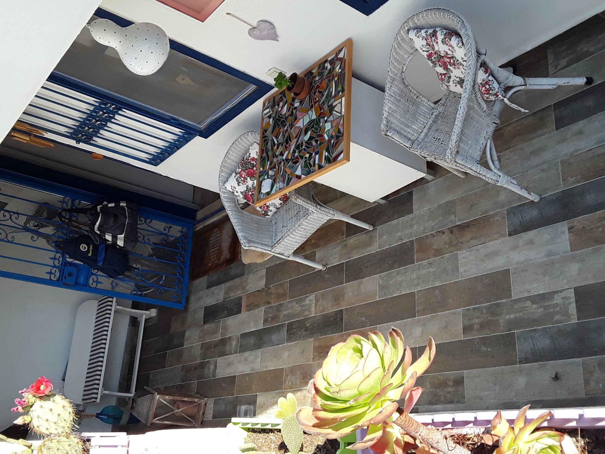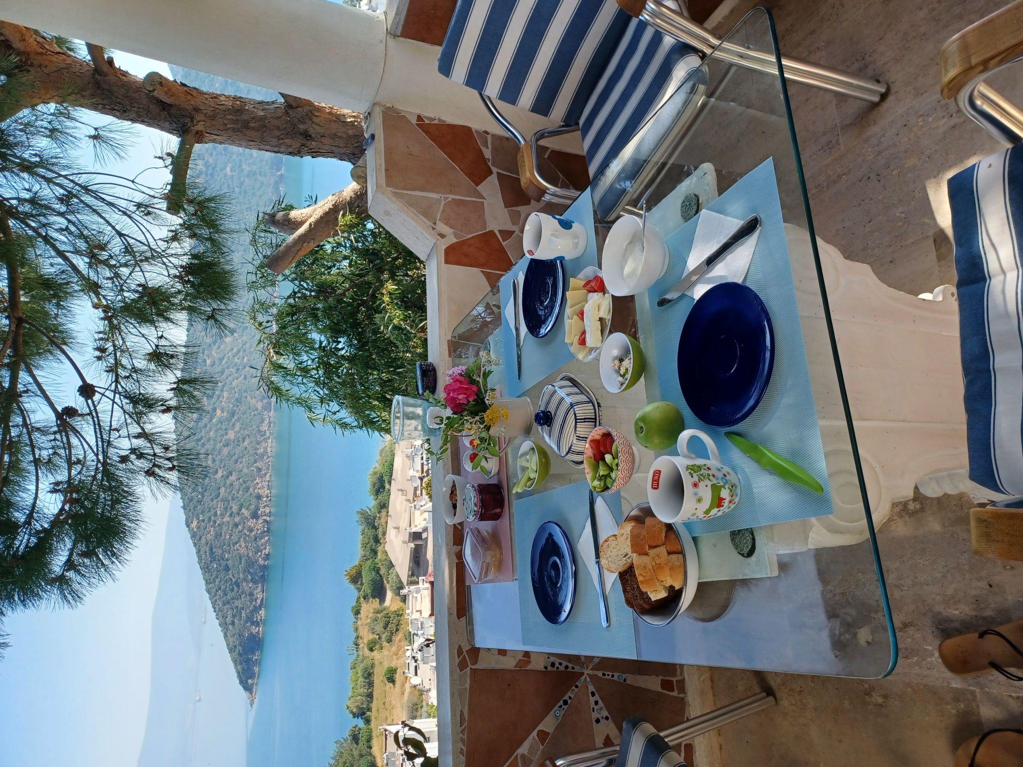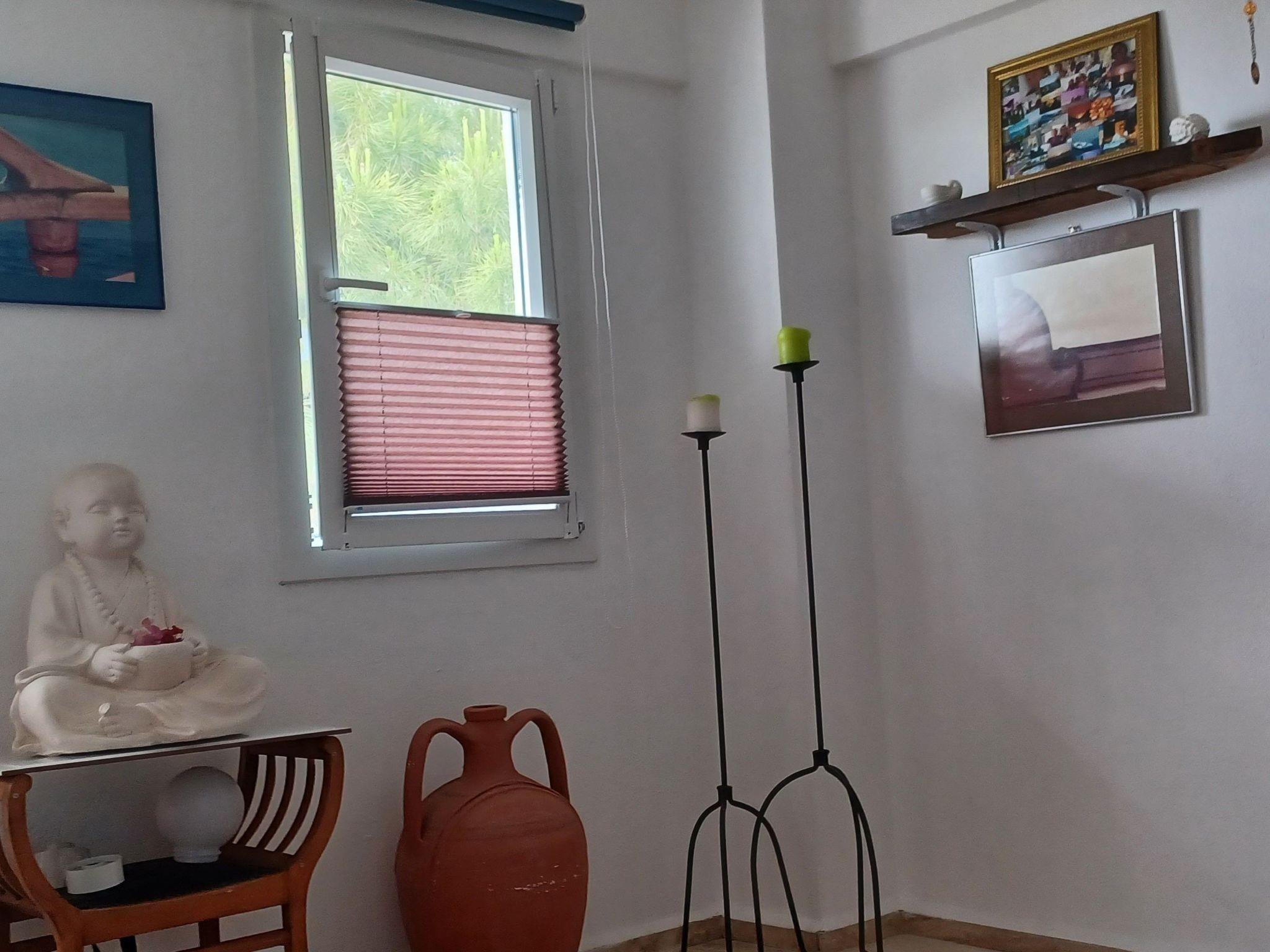 A place to feel good I would say. You sit on the terrace, the sea in front of you. No big street, no noise. Just holidayLiving room and kitchen are together and from there you go to the terrace.also in the living room you can stay well, a dining table in the living room for 5 people and comfortable large chairs to read a book.on the first floor there are 2 bedrooms.one with double bed and small balcony with sea view, the second with two beds. Plus shower and WC