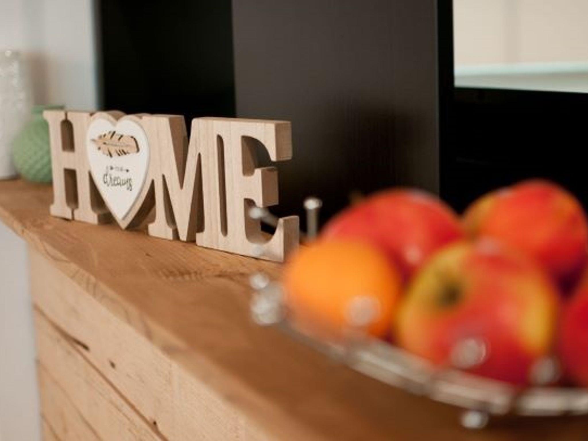 Sie verfügt über eine eigene „Almhütte als Kinderschlafzimmer mit zwei Einzelbetten. Das Elternschlafzimmer ist mit einem gemütlichen Boxspringbett und einem Einzelbett ausgestattet. Der geräumige Wohn-/ Essbereich hat eine voll ausgestattete Einbauküche mit Spülmaschine, Mikrowelle, Kaffeemaschine usw.