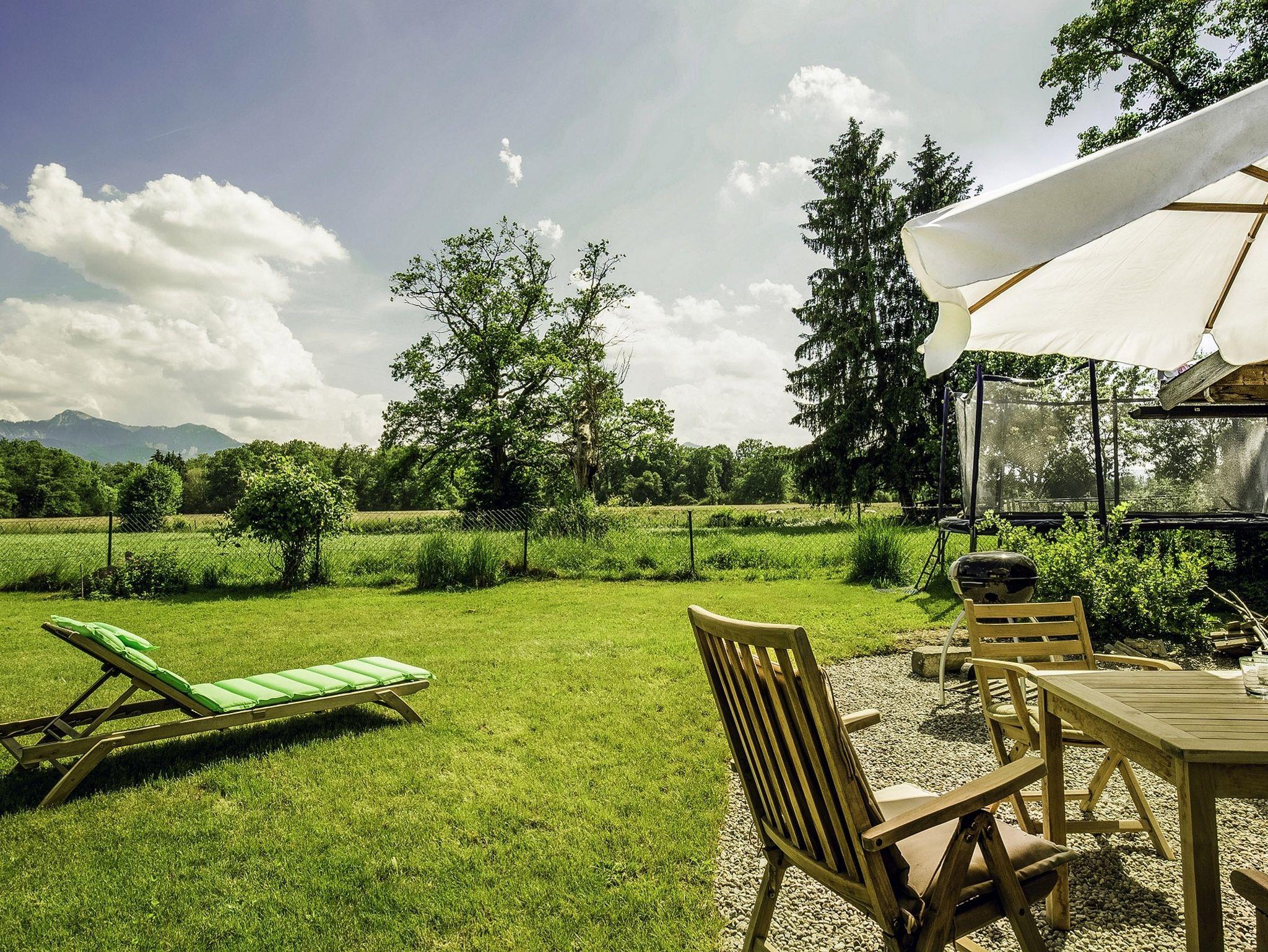 Erholen Sie sich in unserer 5 Sterne FeWo Chiemsee Sonne mit 180 Grad Bergblick, Garten und Sauna in einer Top Lage: Nur 2 Kilometer vom Chiemsee. Die FeWo verzaubert mit südlichem Ambiente und ist mit viel Liebe zum Detail eingerichtet, so dass Sie sich gleich vom ersten Tag an wohlfühlen. Mit wunderschönem Blick über das Naturschutzgebiet in die Berge. Zur FeWo gehört eine Sauna, ein großer Garten mit Grill, Sonnenliegen und einem Trampolin. Vor Ort werden Sie von unserer Verwalterin persönlich begrüßt.