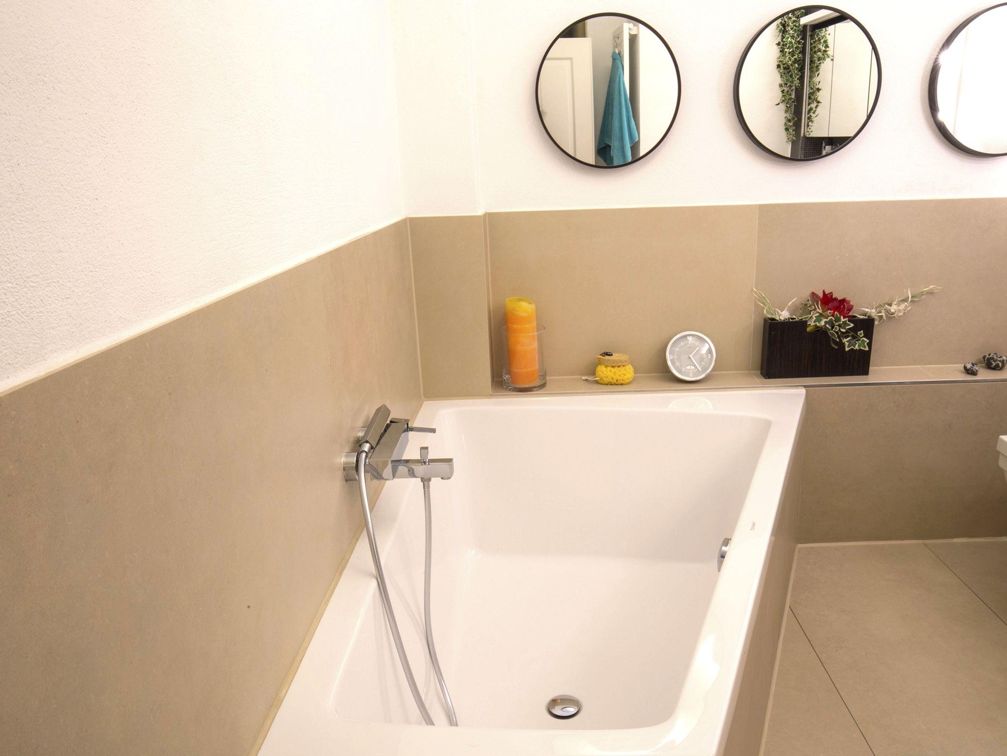 In der umfangreich ausgestatteten Küche mit Westbalkon macht das Kochen Spaß! Das moderne Bad mit seiner Regendusche und Doppelbadewanne lädt zum Entspannen ein. Im Schlafzimmer finden Sie ein großes, gemütliches 180-Doppelbett und viel Stauraum in den Schränken. Direkt nebenan befindet sich das Kinderzimmer mit Stockbett (90x200) und Kinderspielsachen. Privater Parkplatz direkt vor der Tür.
