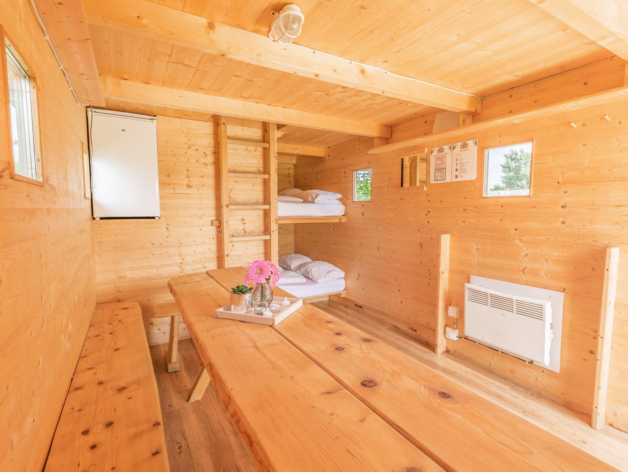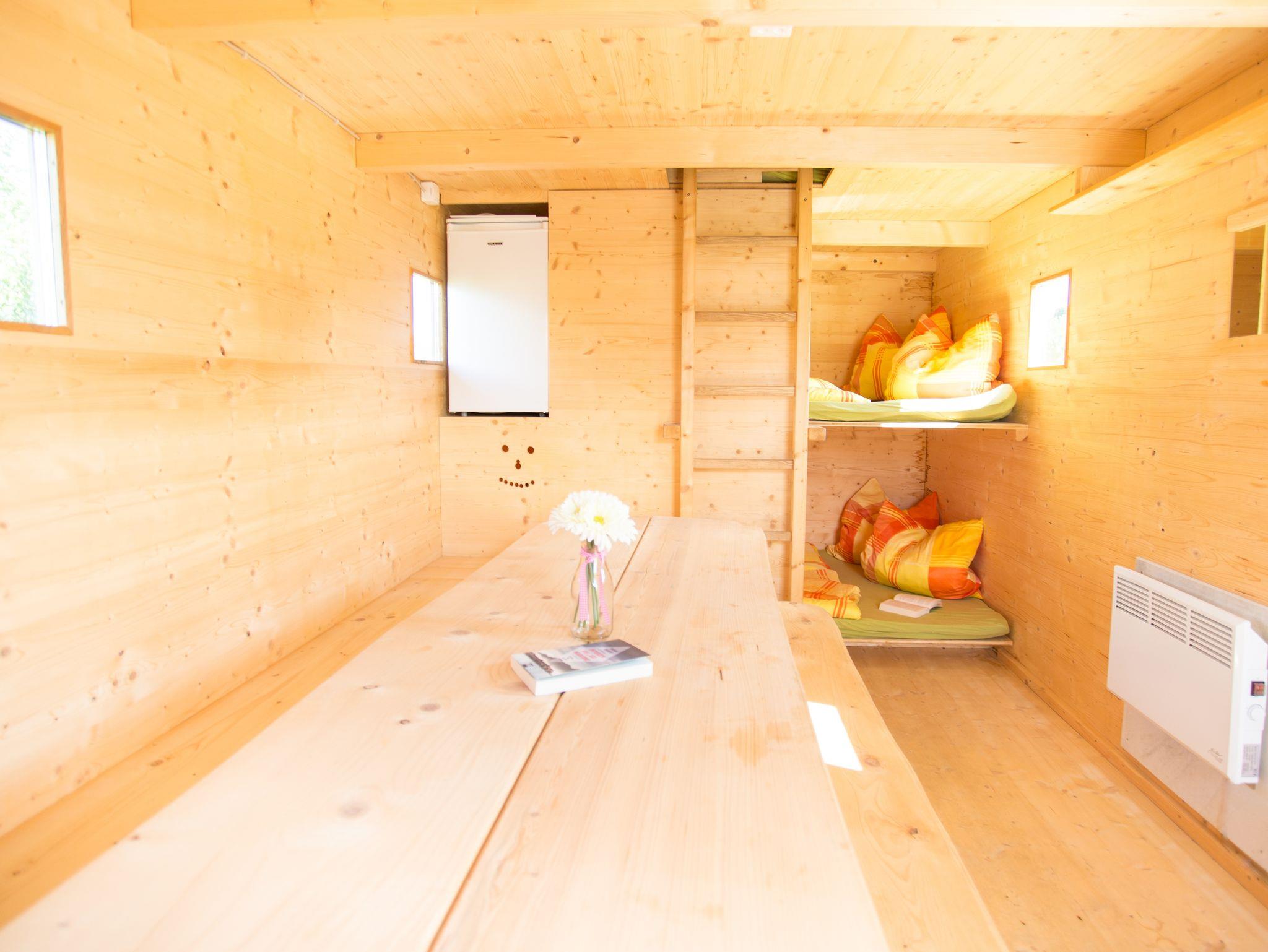 Die Holzhütten gibt es in drei verschiedenen Größen und sie sind alle mit Bettwäsche, Heizung und Kühlschrank ausgestattet. Jeder Wohnbereich ist mit einer kleinen gemütlichen, heimisch hergestellten Sitzecke eingerichtet. Frühstück kann auf Wunsch bestellt werden.