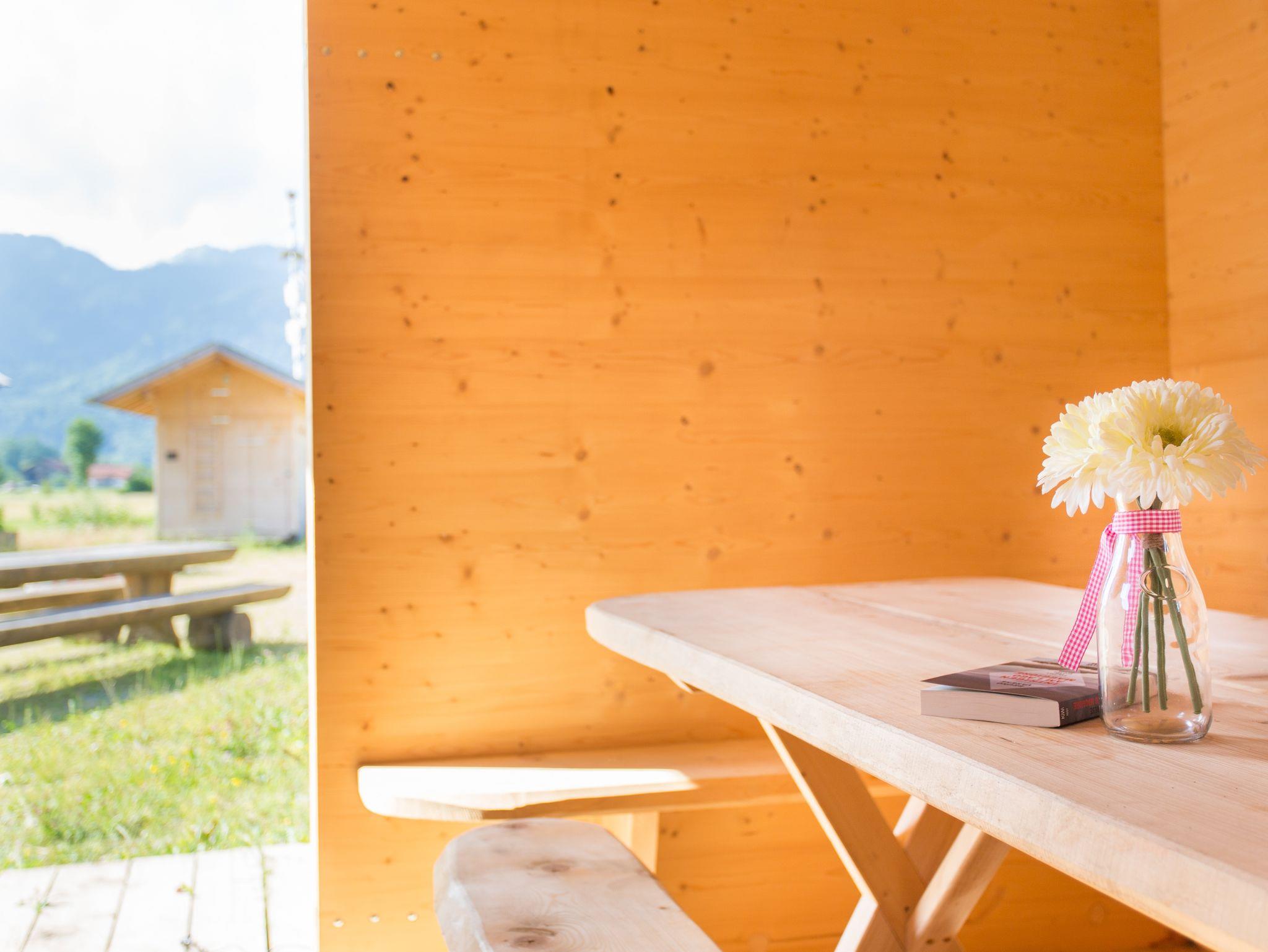 Vor dem Almhüttendorf gibt es schöne Grünflächen, die als Liegewiese dienen und große Massivholz-Sitzgruppen, die zum Picknick einladen. Am Abend können wir auf Wunsch Feuerholz zur Verfügung stellen, damit Sie grillen oder Ihren Tag am romantischen Lagerfeuer ausklingen lassen können.