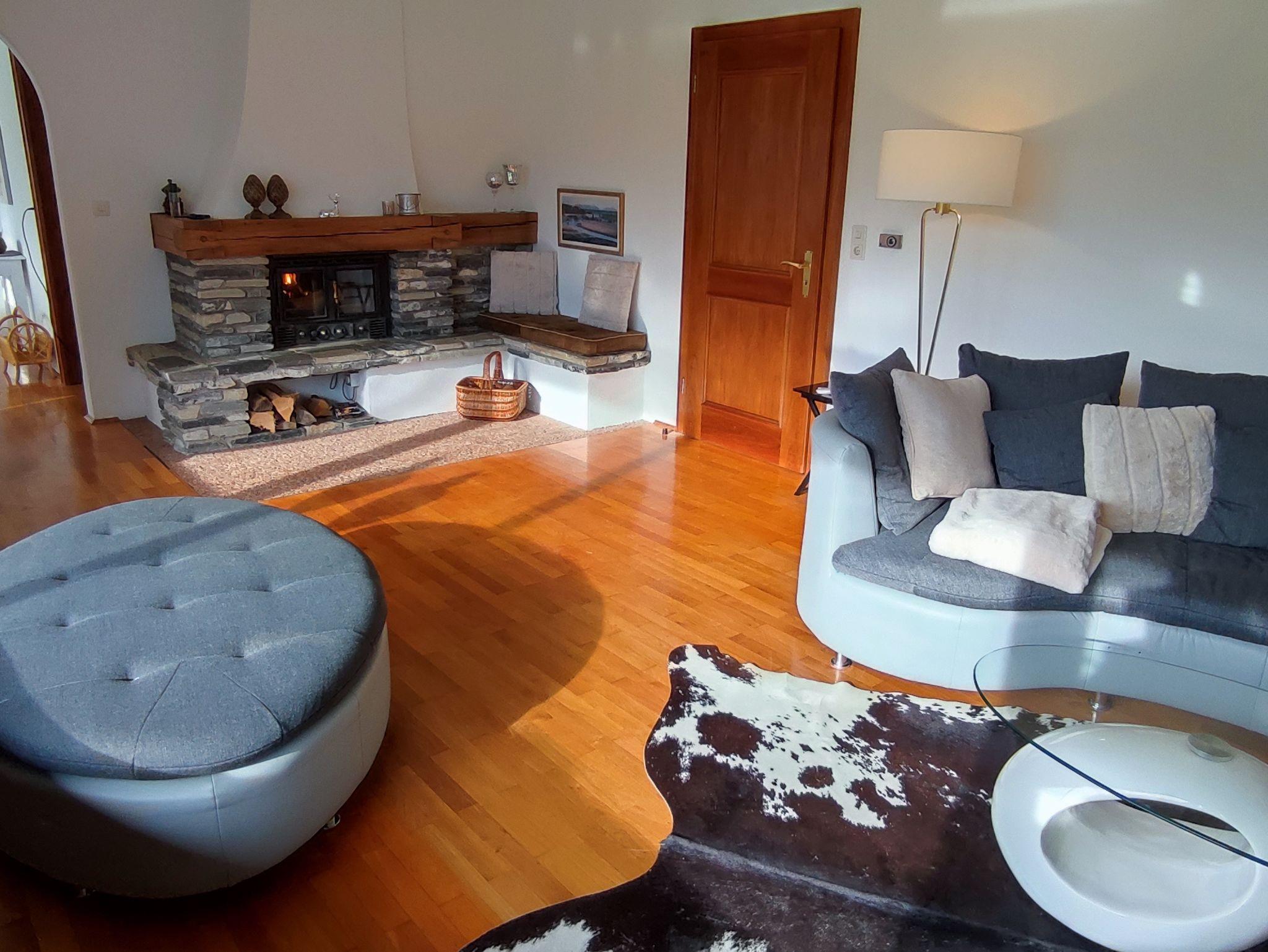 In dieser geräumigen Unterkunft erwartet Sie auf 45 m² 1 Wohnzimmer mit Kamin, sep. Esszimmer in Südausrichtung, 1 Schlafzimmer 18 m² mit franz. Doppelbett 180 x 200 cm mit Berg- und Gartenansicht, 1 Schlafzimmer 12m² mit Doppelbett 160 x 200 cm mit Morgnsonne, 1 Schlafzimmer 10 m² mit Doppelbett 160 x 200 cm mit Abendsonne. Dazu 1 Badezimmer mit einer ebenerdigen Dusche, WC, modernes Waschbecken und 1 sep. Gäste WC. Die komplett ausgestatteten Küche verfügt über ein Kochfeld, Backherd, ein Kühlschrank, ein Geschirrspüler, Kaffeemaschine, Toaster und genügende Ausstattung für 6 Personen! Grillmöglichkeiten stehen ebenfalls zur Verfügung. Freuen Sie sich auch auf eine ganztätig sonnenbeschienene, großzügige Terrasse mit Panorama Berg- und -Gartenblick. Bis zu 6 Personen können auf einem bequemen Rundsofa gemütliche Abende vor dem Flachbild-TV mit Streaming-Diensten verbringen. oder an kühleren Abenden vor dem knisternden Kamin den Urlaubsstag beenden. Kaminholz und Wlan ist kostenlos! Auf Anfrage kann jedem Schlafzimmer ein zusätzlicher Flachbild TV mit Streaming Diensten gegen Gebühr zugestellt werden.