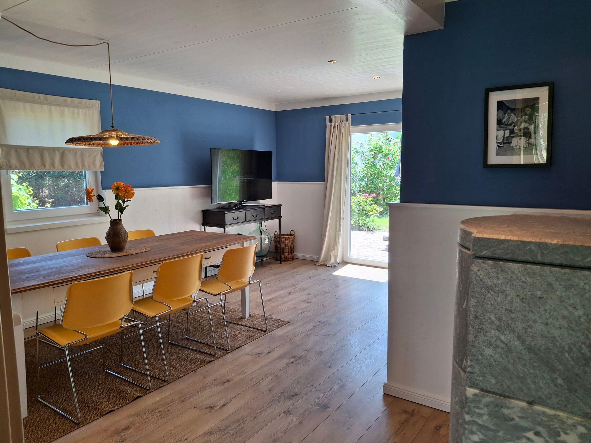 Dieses charmante Ferienhaus mit 125m2 Wohnfläche inkl. Terrassen vereint großzügigen Komfort mit alpiner und mediterraner Gemütlichkeit. Eine separate, voll ausgestattete Küche lädt zum gemeinsamen Kochen ein, während der lichtdurchflutete Wohn- und Essbereich mit stillvollem Ambiente zum Entspannen und Genießen einlädt. Drei liebevoll gestaltete Schlafzimmer bieten Platz für bis zu 5 Personen Platz. Einen wunderschönen Blick in die Natur und die Berge bieten 2 sonnige Terrassen. Ein großer, voll eingezäunter Garten machen Deine Ferien perfekt!