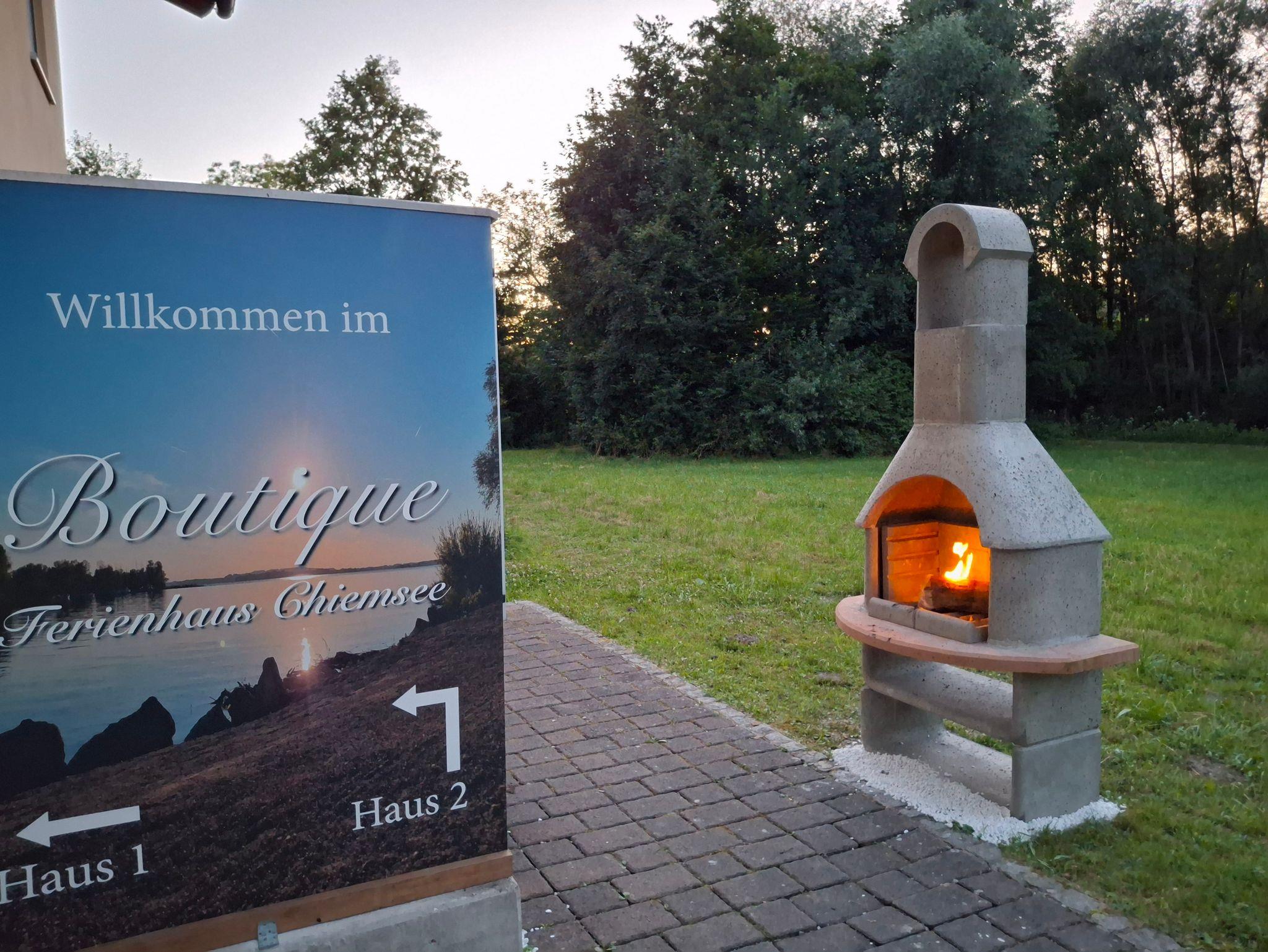 Das komplett eingezäunte Gartengrundstück liegt am Überseer Bach, der durch die blühenden Sträucher immer wieder durchschimmert. Mit dem SUP oder Kajak kannst Du vom Bacheinstieg aus Deine Tour auf dem wunderschönen Chiemsee beginnen.