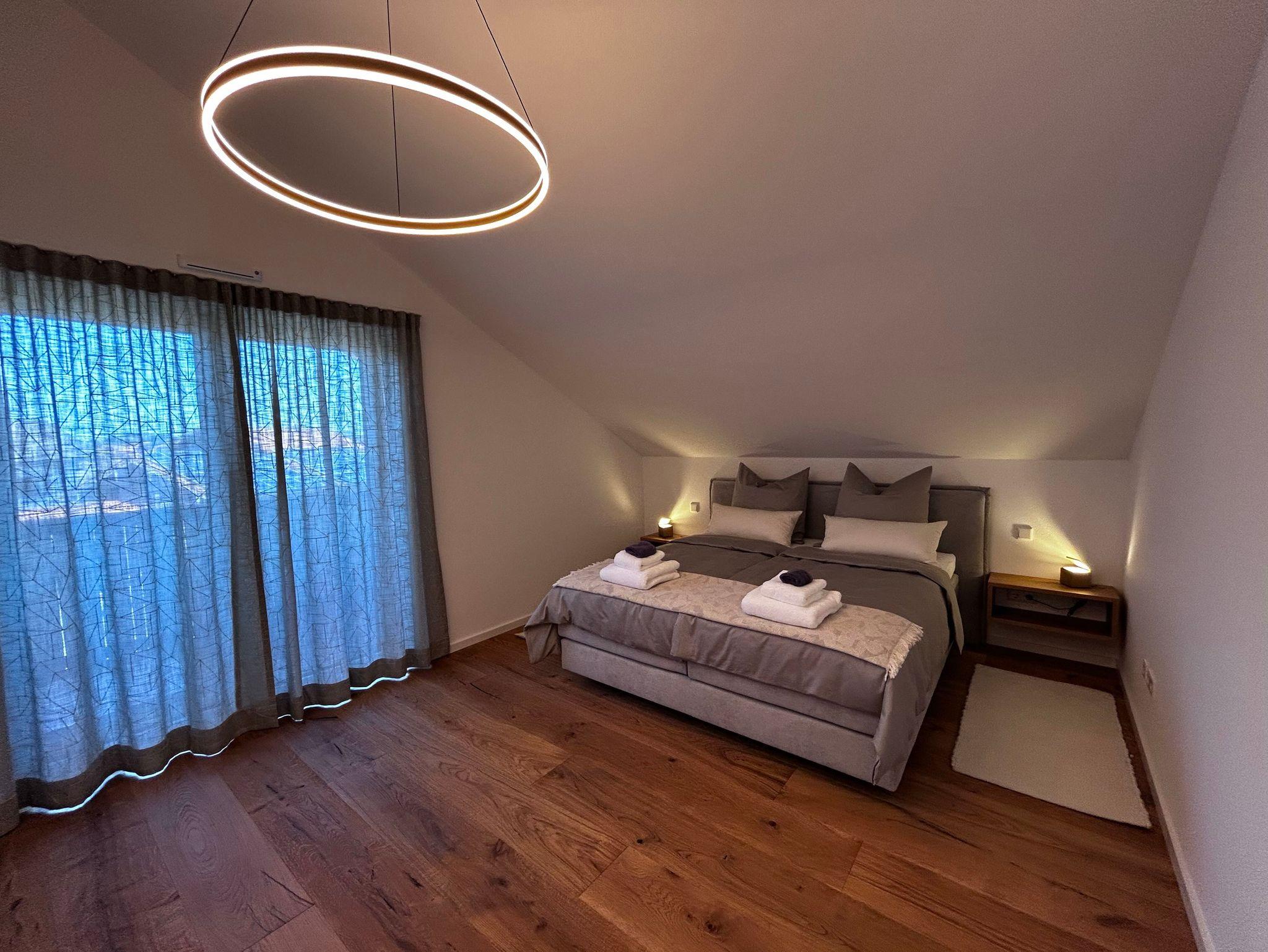Im Schlafzimmer erwartet dich ein großzügiges Boxspringbett mit hochwertigen Bettwaren. Die indirekte Beleuchtung, flauschige Handtücher und das cleane Interior-Design sorgen für echte Boutique-Hotel-Vibes – nur dass du morgens keinen Checkout-Stress hast.