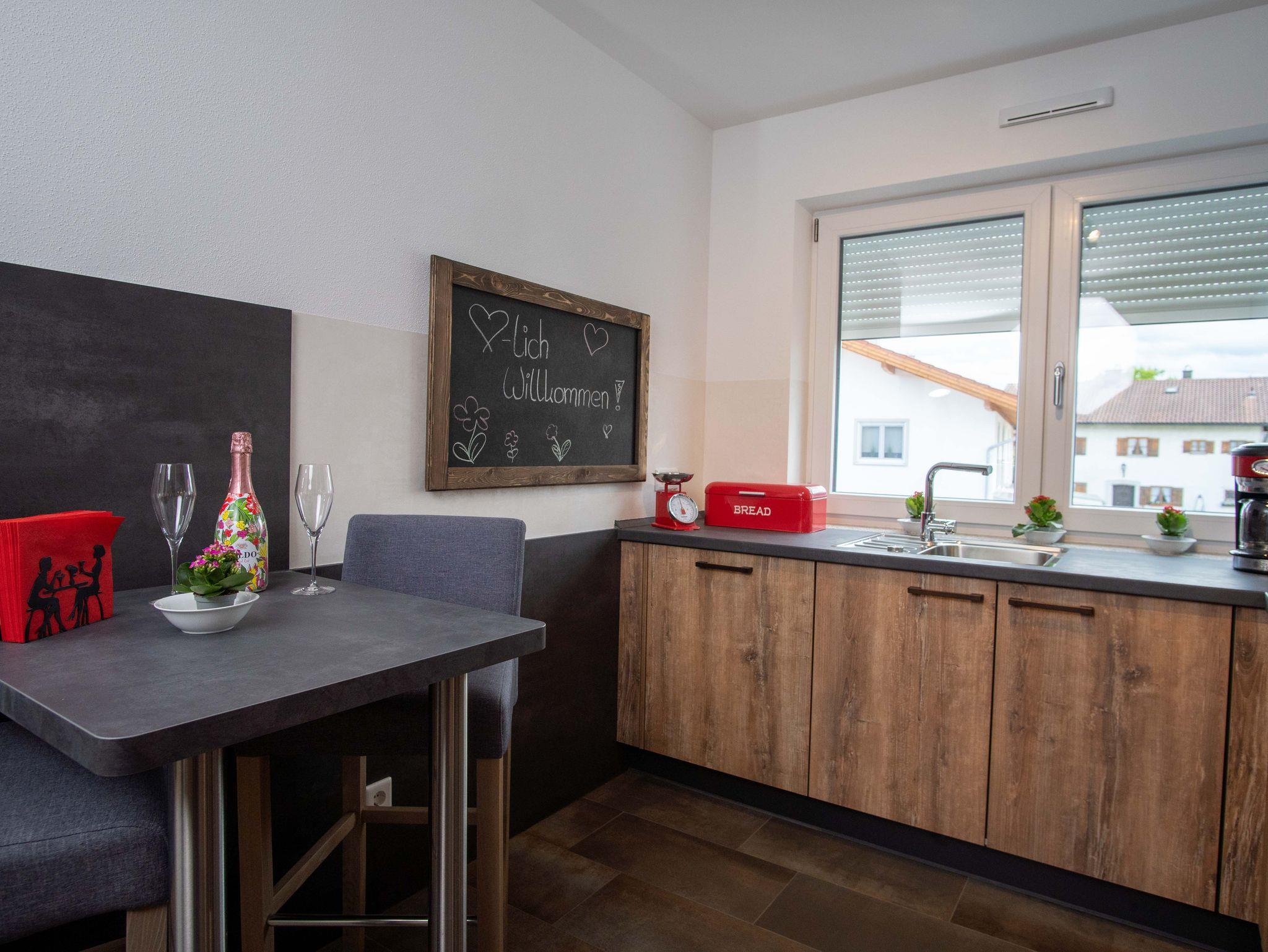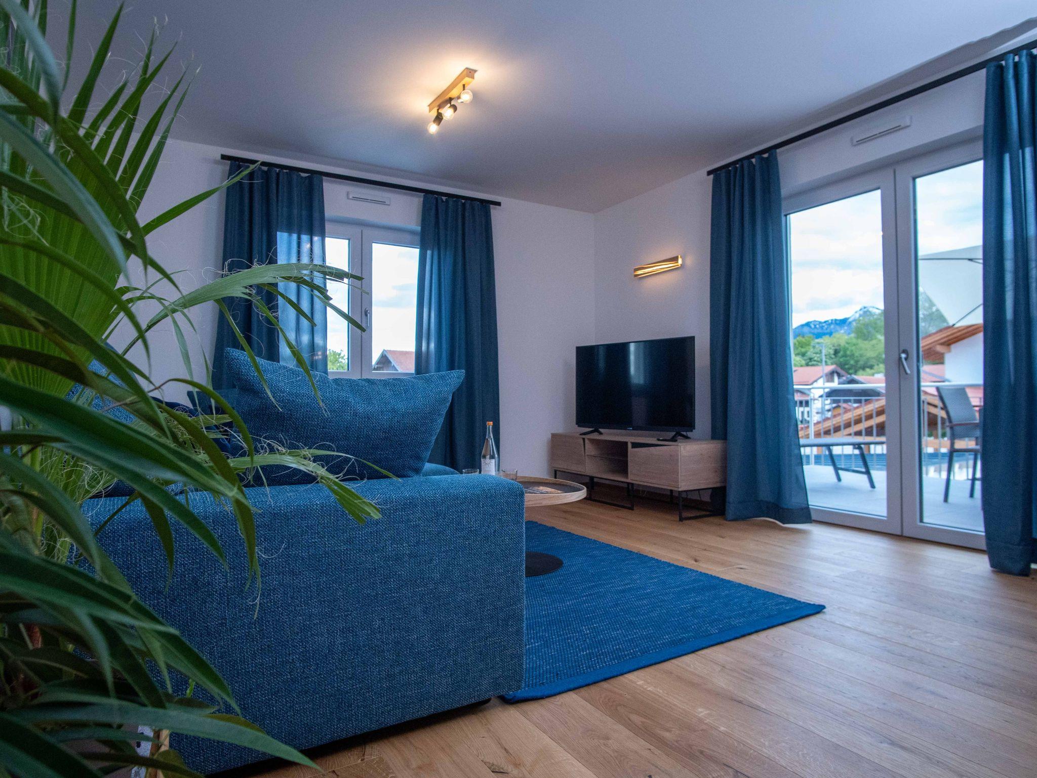 Unsere voll ausgestattete Küche lässt keine Wünsche offen und unser großzügiges Wohnzimmer lädt zum entspannten Verweilen ein. In unseren Schlafzimmern finden Sie Rückzugsoasen für Ihre Seele. Auf unserem großen Südbalkon genießen Sie ein Sonnenbad und den Ausblick in die bayerischen Berge. Unser neues Bad ist ausgestattet mit Dusche und Badewanne, zusätzlich gibt es ein separates WC. Handtücher, Bettwäsche und Endreinigung sind inklusive.