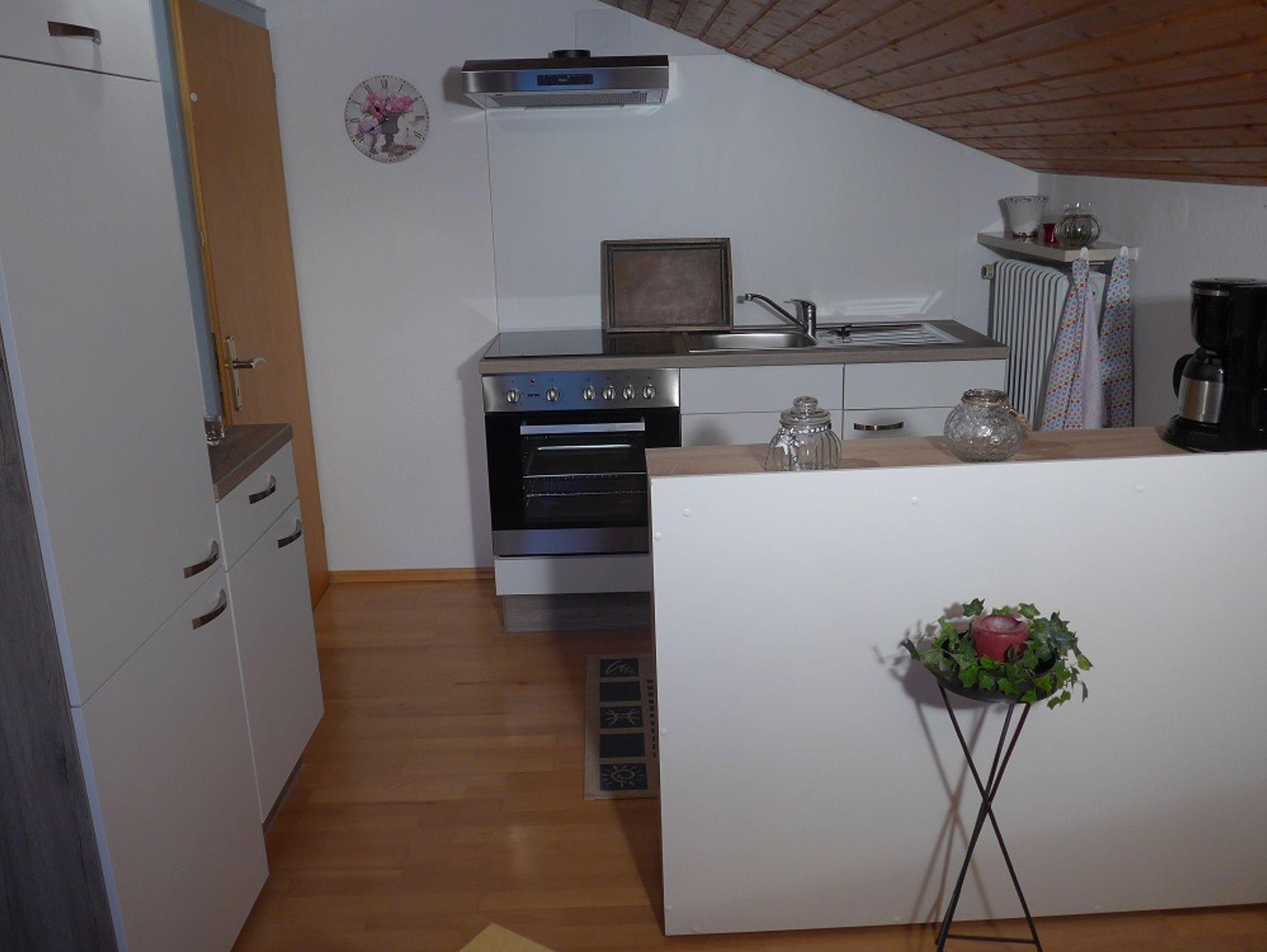 Unserer Ferienwohnung befindet sich im 1. Stock mit Ostbalkon. Für 3 Personen bietet die Wohnung Platz. Die Küche mit Sitzgruppe lädt zum gemütlichen Verweilen ein. Im Wohn-Bereich befindet sich eine Couch, sowie eine zusätzliche Essecke. Das Schlafzimmer besteht aus einem Doppelbett und einem Einzelbett, von dort aus erreichen Sie den Balkon. Im hellen und freundlichen Bad finden Sie eine Badewanne, wie auch eine Dusche vor. Die Toilette befindet sich einem seperaten Raum. Im Garten haben Sie die Möglichkeit, den überdachten Freisitz mit Liegewiese zu nutzen. Wir bieten Ihnen, Kabel-TV, DVD-Player, Radio, Kaffeemaschine, Wasserkocher, Eierkocher, Toaster, Bachkofen, Tiefkühlfach, Kühlschrank, Bettwäsche, Handtücher, Fön, Heizung, Nichtraucher, Liegewiese, Grillmöglichkeit. Für Fahrräder bieten wir Ihnen einen Unterstellplatz.