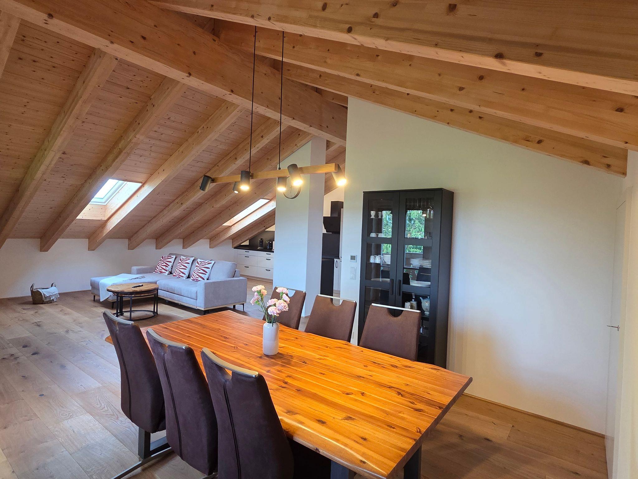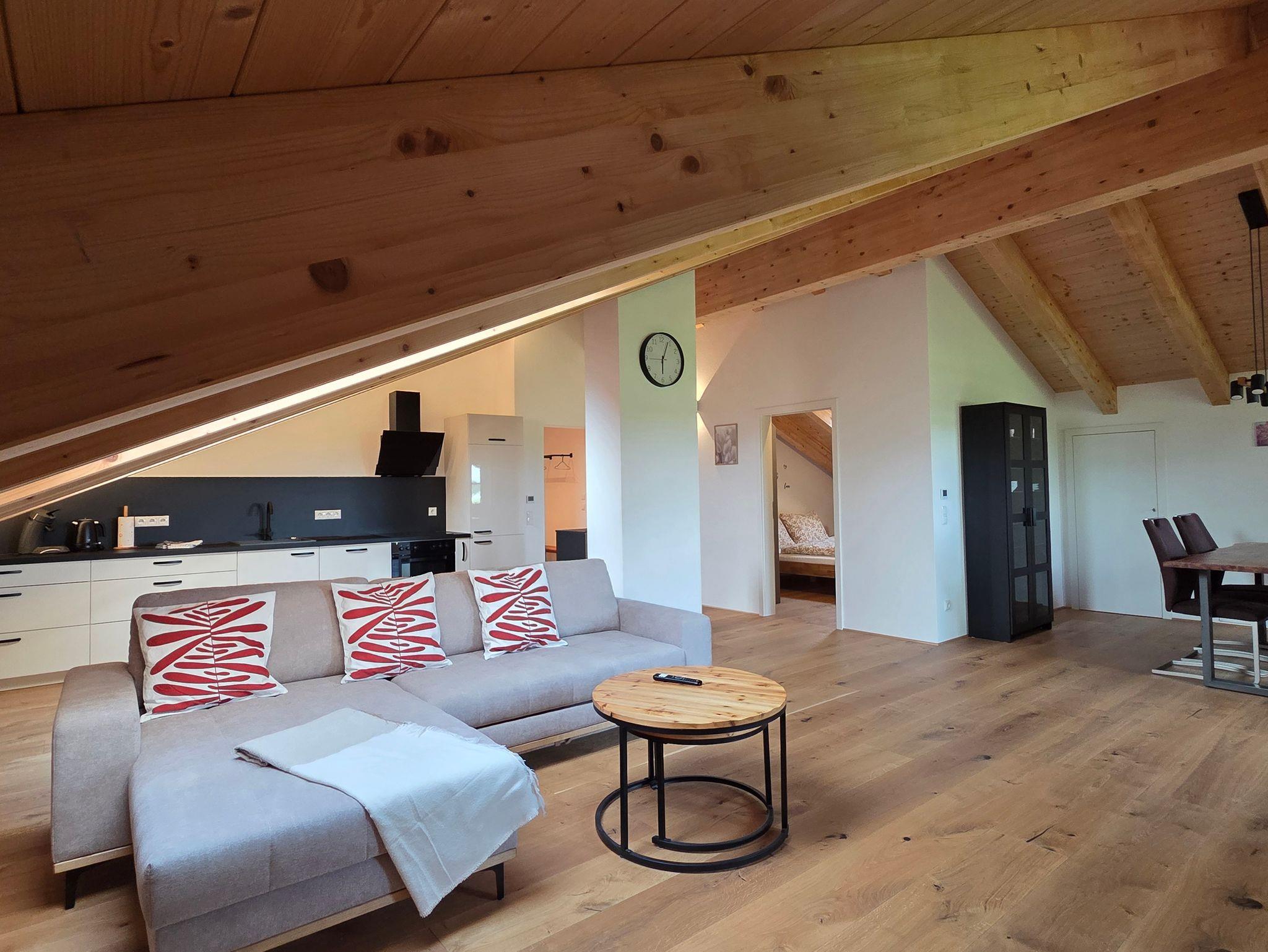 Die stilvoll eingerichtete Ferienwohnung Lederer liegt im Dachgeschoss eines neu erbauten Hauses (2022) und bietet auf 90?m² großzügigen Raum für bis zu 6 Personen.