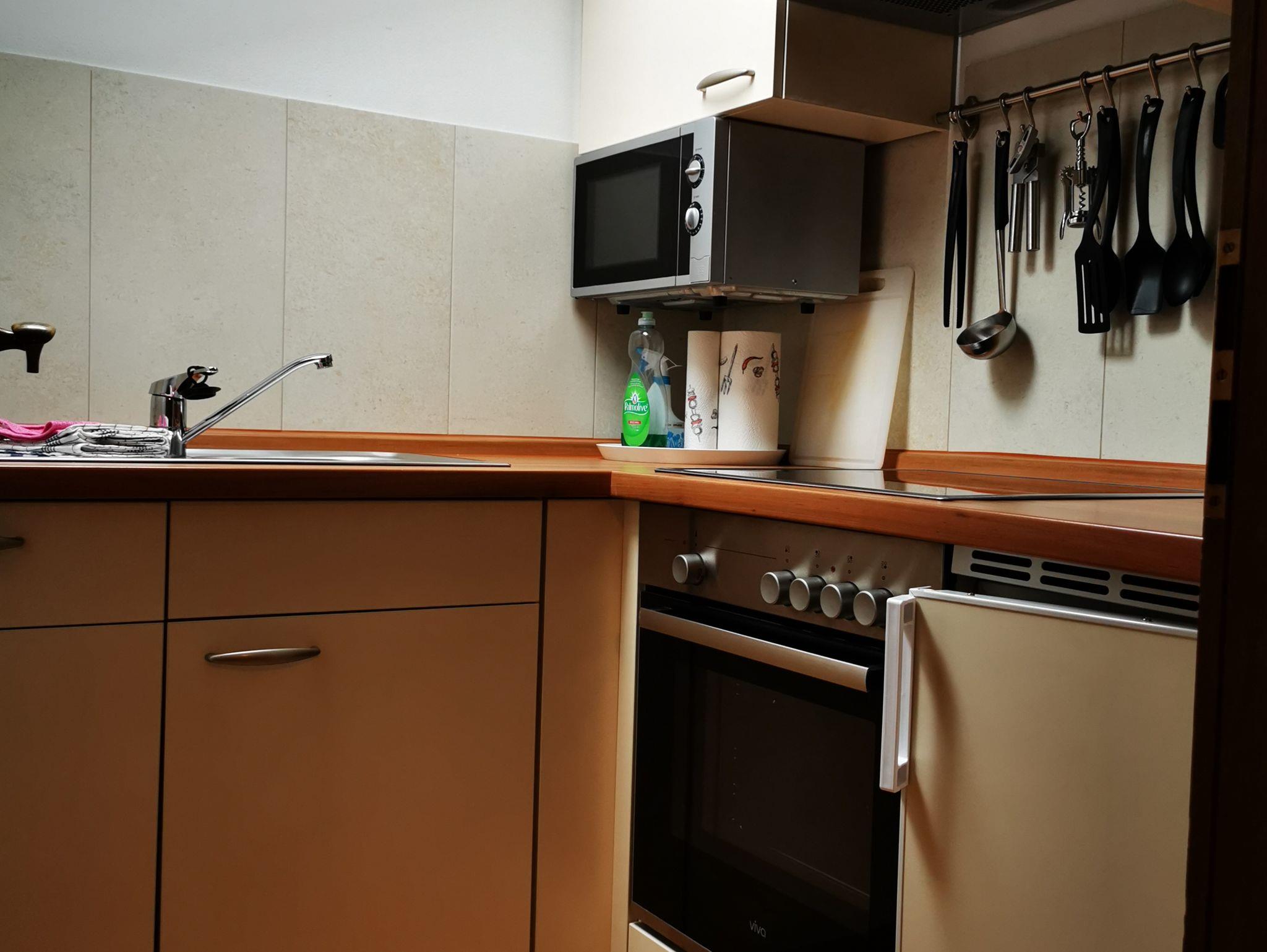 Die 46 qm große Ferienwohnung bietet Platz für bis zu 4 Personen. Die Küche ist komplett ausgestattet mit Kaffemaschine, Kühlschrank, Geschirrspülmaschine usw.