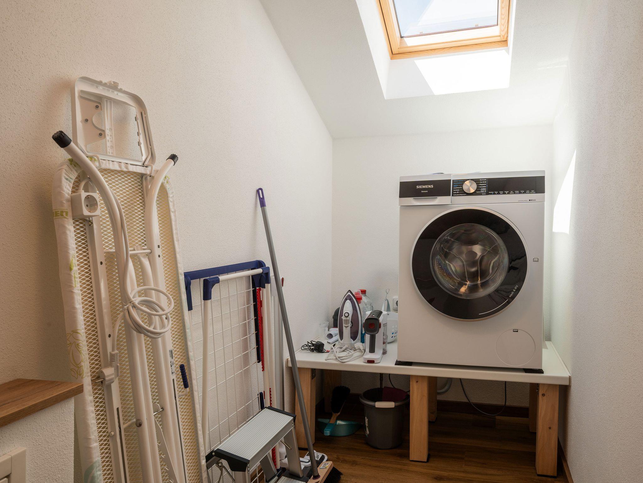 Abstellraum: Akkustaubsauger, Bügeleisen, Bügelbrett, Putzutensilien, Wäscheständer, Waschtrockner.