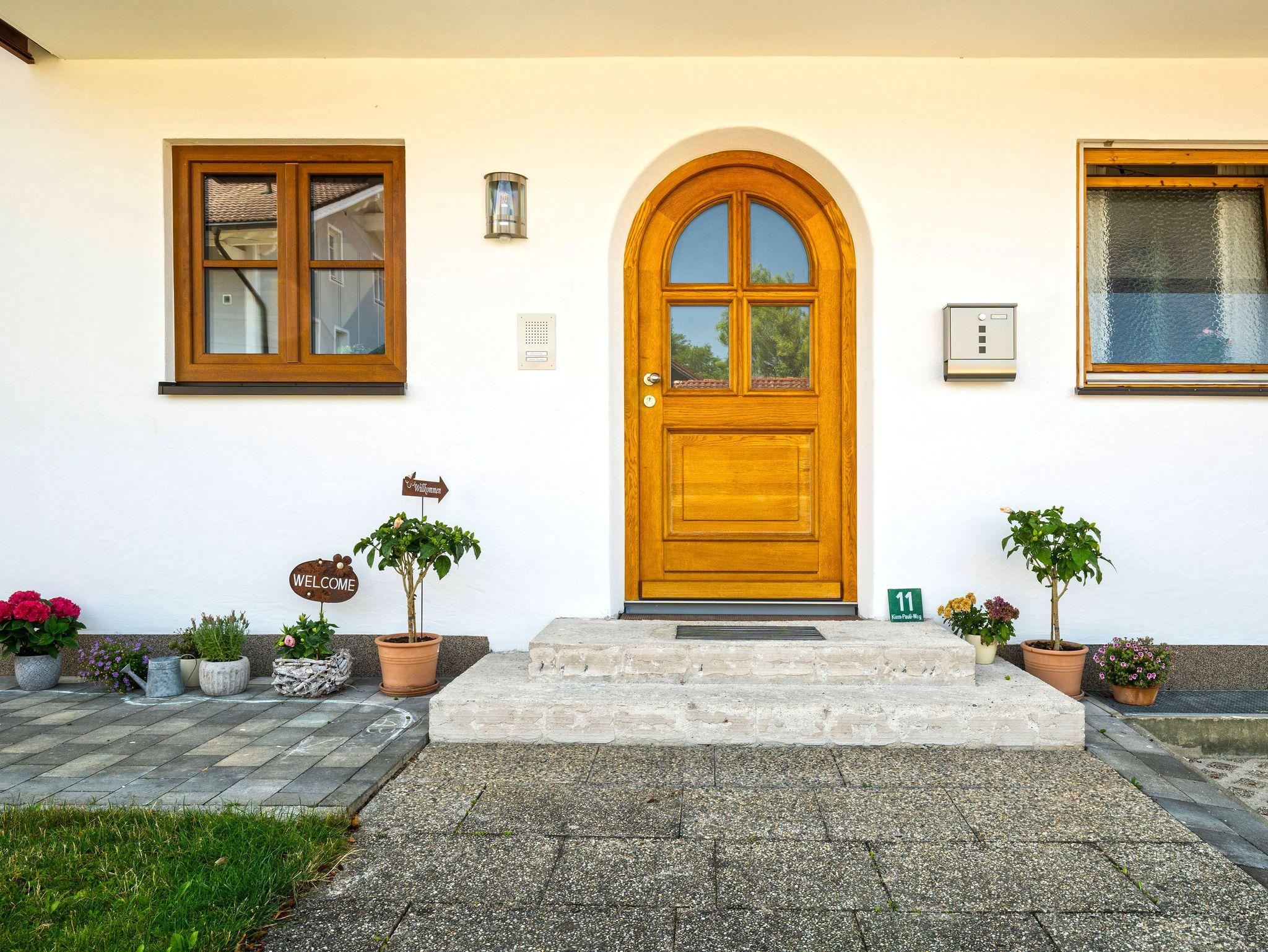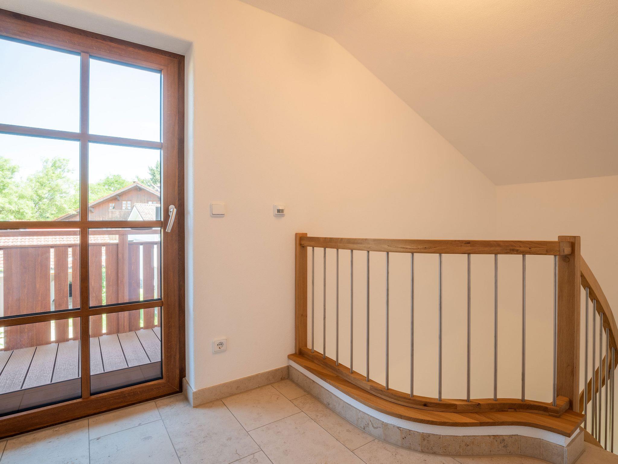 Liebe Gäste, unser Haus befindet sich in einer ruhigen Lage am Ende einer Sackgasse in Übersee am Chiemsee. Die komplett energetisch sanierte Ferienwohnung befindet sich bei uns im 1.OG. Mit einer komfortabel und hochwertigen Ausstattung verfügt sie auch über eine moderne Einrichtung in massiver Wildeiche und 2 großen Balkone auf der Ost- und Westseite. Bei einer Größe von 100 qm gibt es genügend Rückzugsplätze.
