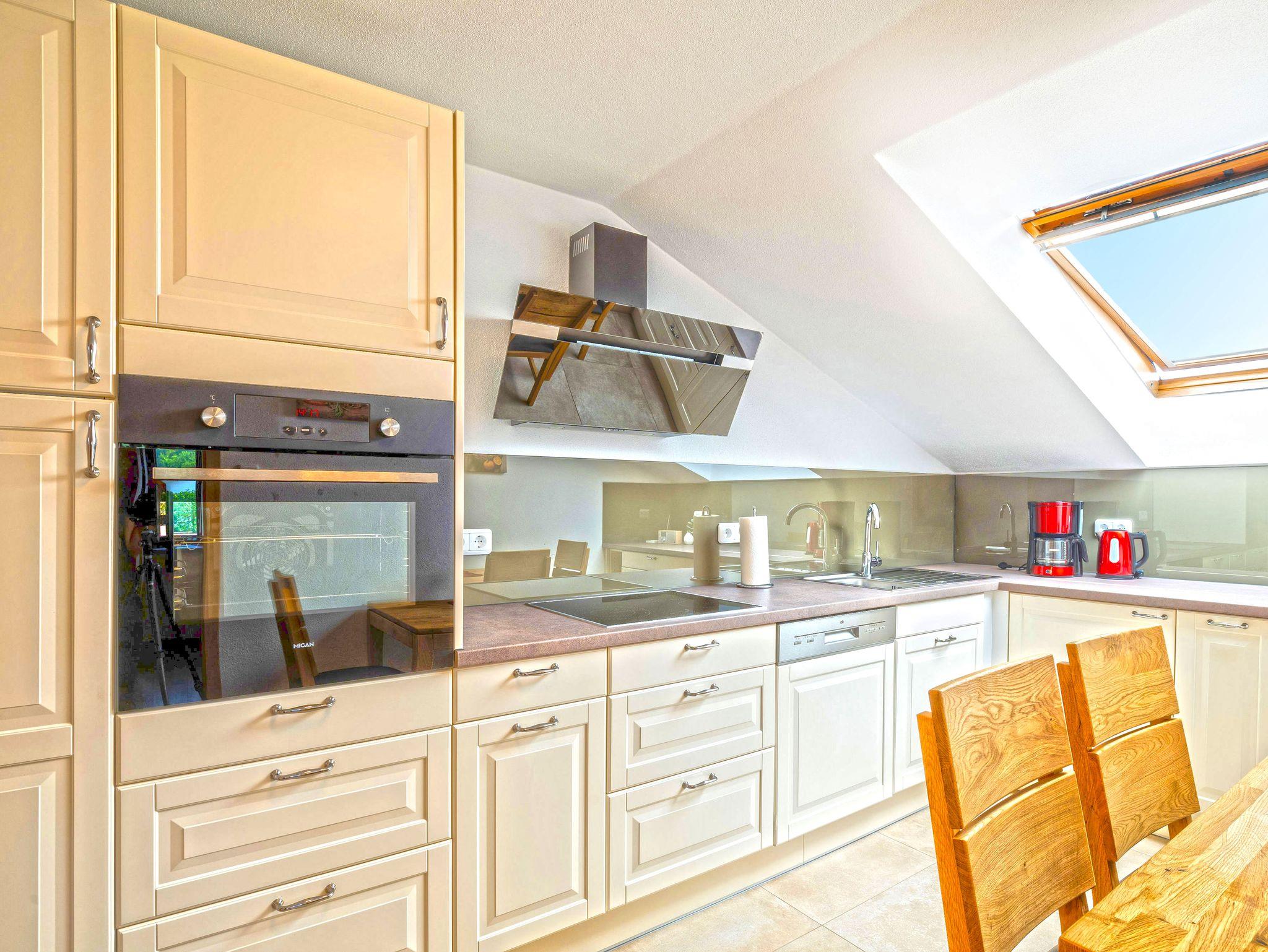 Küche: Backofen, Backpapier, DAB-Radio, Essbereich, Eierkocher, Gefrierfach, Geschirrspüler, Geschirr- und Handtuch, Gewürze, Gläser, 12-teiliges Geschirr u. Besteck, Hochstuhl (kostenlos), Kaffeemaschine, Kaffee- und Kaffeefilter, Kochtöpfe und Pfannen, Kühlschrank mit Gefrierfach, Küchenrolle, Spültuch, Spülmittel, Außenrollo solarbetrieben, Glasstrohhalme, Tee und Teekanne, Toaster, Wasserkocher.