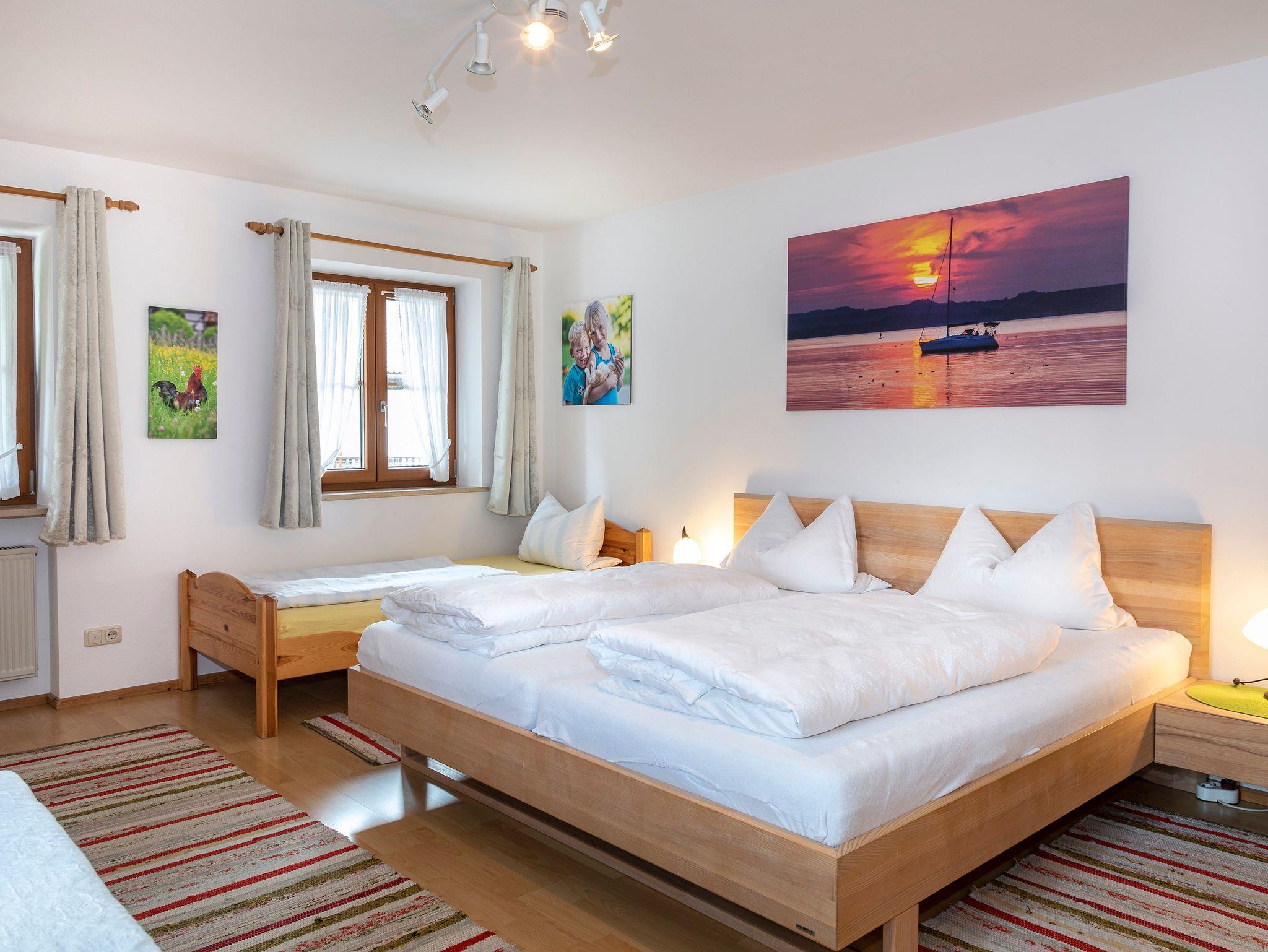 Zaißlhäusl Hof Ferienwohnung, Ferienwohnung Nr. 1 mit Bergblick, 57m², großem Dreibett-Schlafzimmer und neuem Bad