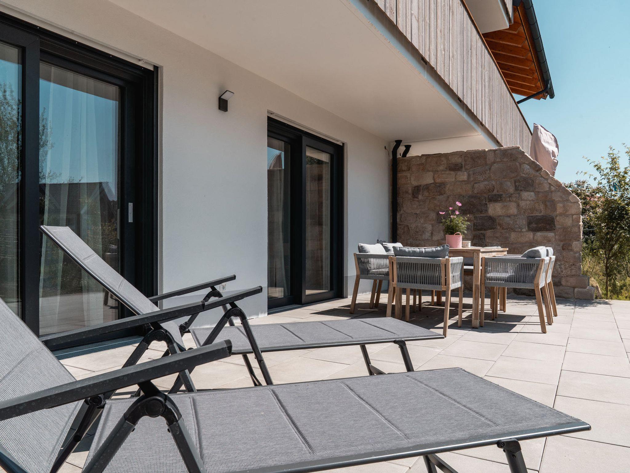 Die private Sonnenterrasse ist der perfekte Ort für Frühstück in der Morgensonne oder einen entspannten Abend mit Grill und Wein. Ob als Paar, mit Freunden oder Familie – im BAY47° fühlt sich jeder sofort zuhause.