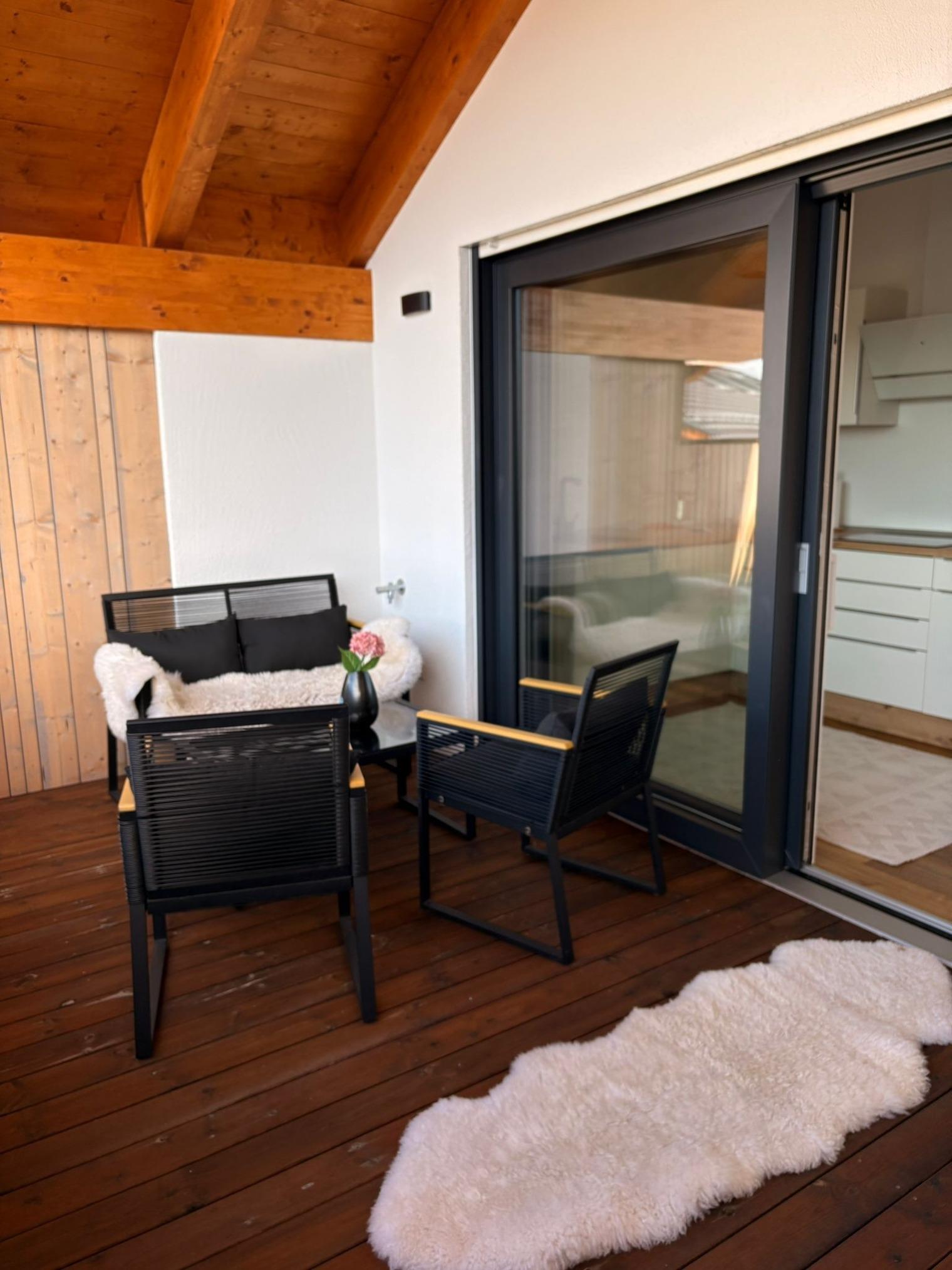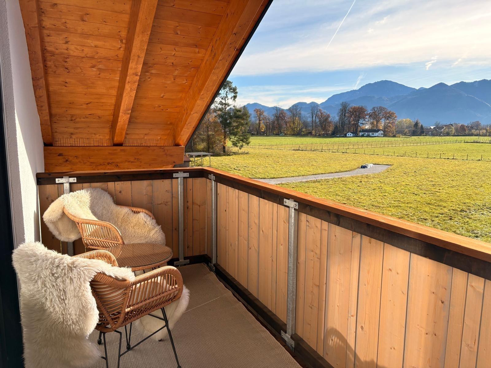 Auf 74 Quadratmetern bietet die Ferienwohnung ausreichend Platz für bis zu vier Personen. Die voll ausgestattete Küche mit Geschirrspüler, Backofen und Ceranfeld bietet pure Freude beim Zubereiten Ihrer Lieblingsgerichte. Das elegante Badezimmer verfügt über eine komfortable begehbare Dusche, während das Schlafzimmer mit dem großzügigen Boxspringbett (180x200 cm) direkten Zugang zum Südbalkon bietet. Von hier aus genießen Sie den freien Blick auf die naheliegenden Chiemgauer Alpen. Das Schlafzimmer bietet auch ausreichend Platz für ein Baby Reisebett (wird nicht angeboten). Im Wohnzimmer sorgt ein bequemes Schlafsofa (140x200 cm) für zusätzliche Übernachtungsmöglichkeiten. Auch verfügt die Wohnung über eine Waschmaschine in der Wohnung. Die Loggia mit Westausrichtung lädt zum gemütlichen Verweilen ein. Ein Stellplatz im Freien, ein Fahrradraum sowie ein Aufzug runden das Angebot ab. Auch Ihr vierbeiniger Freund ist bei uns herzlich willkommen (gegen Gebühr).