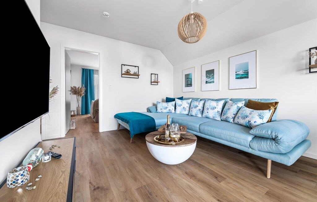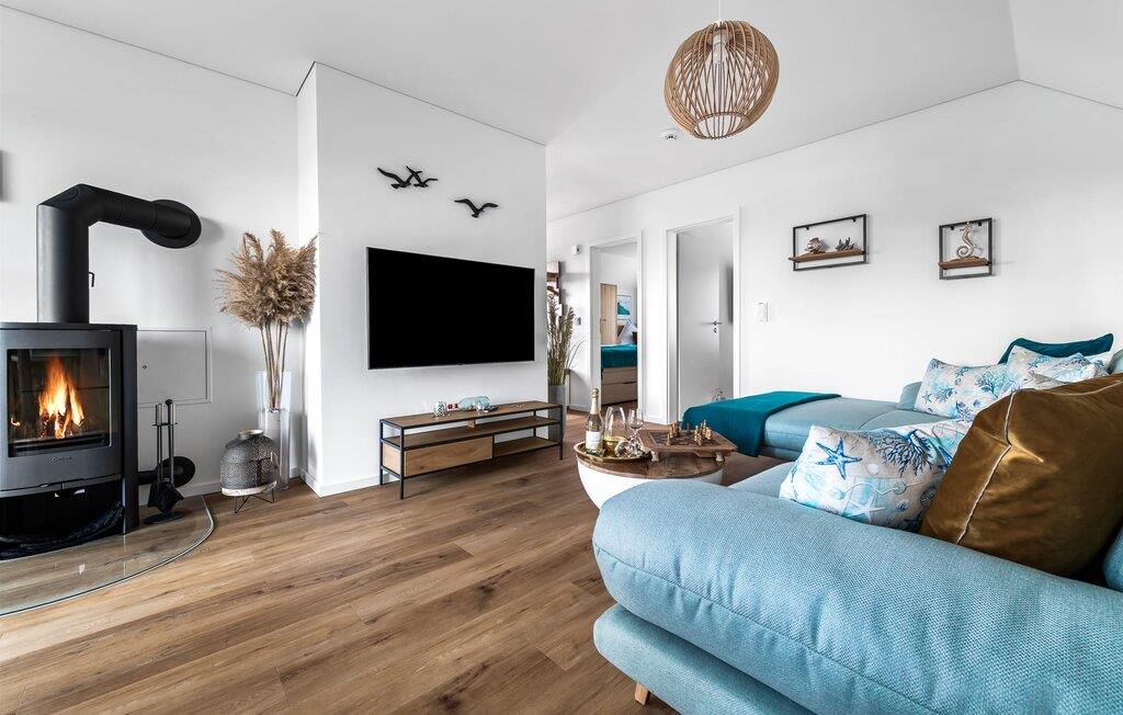 Velkommen til Überseegold! Møbler af høj kvalitet i maritim stil venter jer her. Den rummelige ferielejlighed på øverste etage scorer med en rummelig følelse, en terrasse til solbadning og plads til op til 5 personer. Her kan I nyde jeres ferie og glemme hverdagen. En anden lille terrasse ved indgangen giver en ekstra feriefølelse. Sandstranden Weidefelder med kiosk, restaurant og strandstole ligger i gåafstand og er et attraktivt rejsemål på alle tider af året. Minigolfbanen med maritimt tema ligger også i umiddelbar nærhed og glæder både store og små. Den livlige havnepromenade med indkøbsmuligheder og lystbådehavnen er også i nærheden. Med sine gulv-til-loft-vinduer og den store tilstødende terrasse er den åbne stue/spisestue hjertet af Überseegold. Den stilfulde indretning og den hyggelige opholdsstue skaber en afslappet atmosfære og inviterer jer til at slappe af. Ren afslapning! Skulle vejret nogensinde vise sin nordiske side, sørger pejsen og den infrarøde sauna (varmekabinen) for hyggelig varme og komfort. Når solen skinner, venter terrassen allerede på jer. Nyd dagen her i den friske Østersøluft eller ring ind til en grillaften sammen. Det åbne køkken er ideelt udstyret og vil få amatørkokkenes hjerter til at slå hurtigere. To soveværelser er tilgængelige til afslapning om natten. Det ene soveværelse er udstyret med en stor dobbelt boxmadras, mens det andet soveværelse har to store enkeltsenge (140x200). I opholdsstuen kan sofaen omdannes til endnu et soverum med få enkle trin. Efter en travl feriedag giver badeværelset med brusebad på gulvniveau og en infrarød sauna beroligende øjeblikke. En dag på Østersøen kunne ikke ende bedre. For at give en hel feriekomfort finder I jeres egen parkeringsplads og et aflåseligt cykelskur foran ferielejligheden. Vores favoritsted: At tilbringe en hyggelig grillaften på terrassen efter en dag på stranden... Bemærk venligst: OstseeResort Olpenitz er meget populært, og der bygges fortsat i parken. Ikke desto mindre kan I se frem til en 5-stjernet standard og et førsteklasses ophold. Byggeaktiviteterne kommer ikke til at forstyrre jer på ferien, og derfor gives der ikke yderligere afslag i prisen.