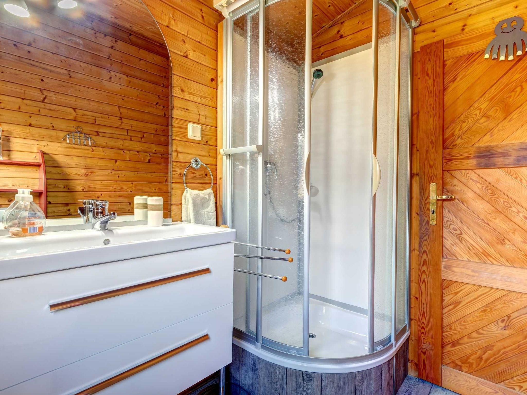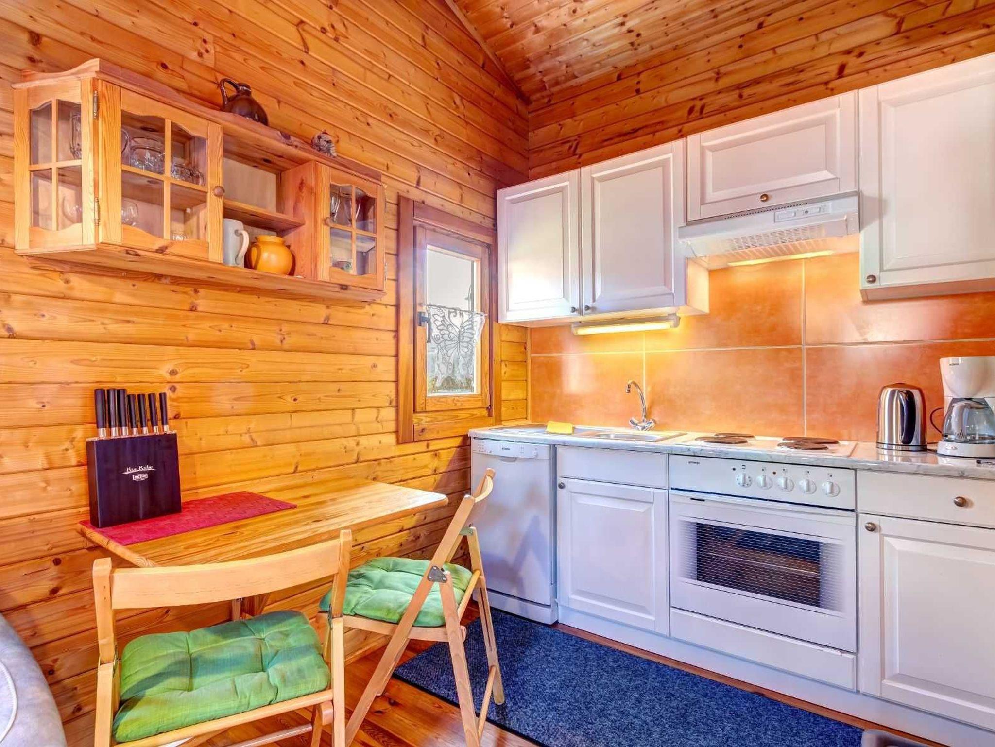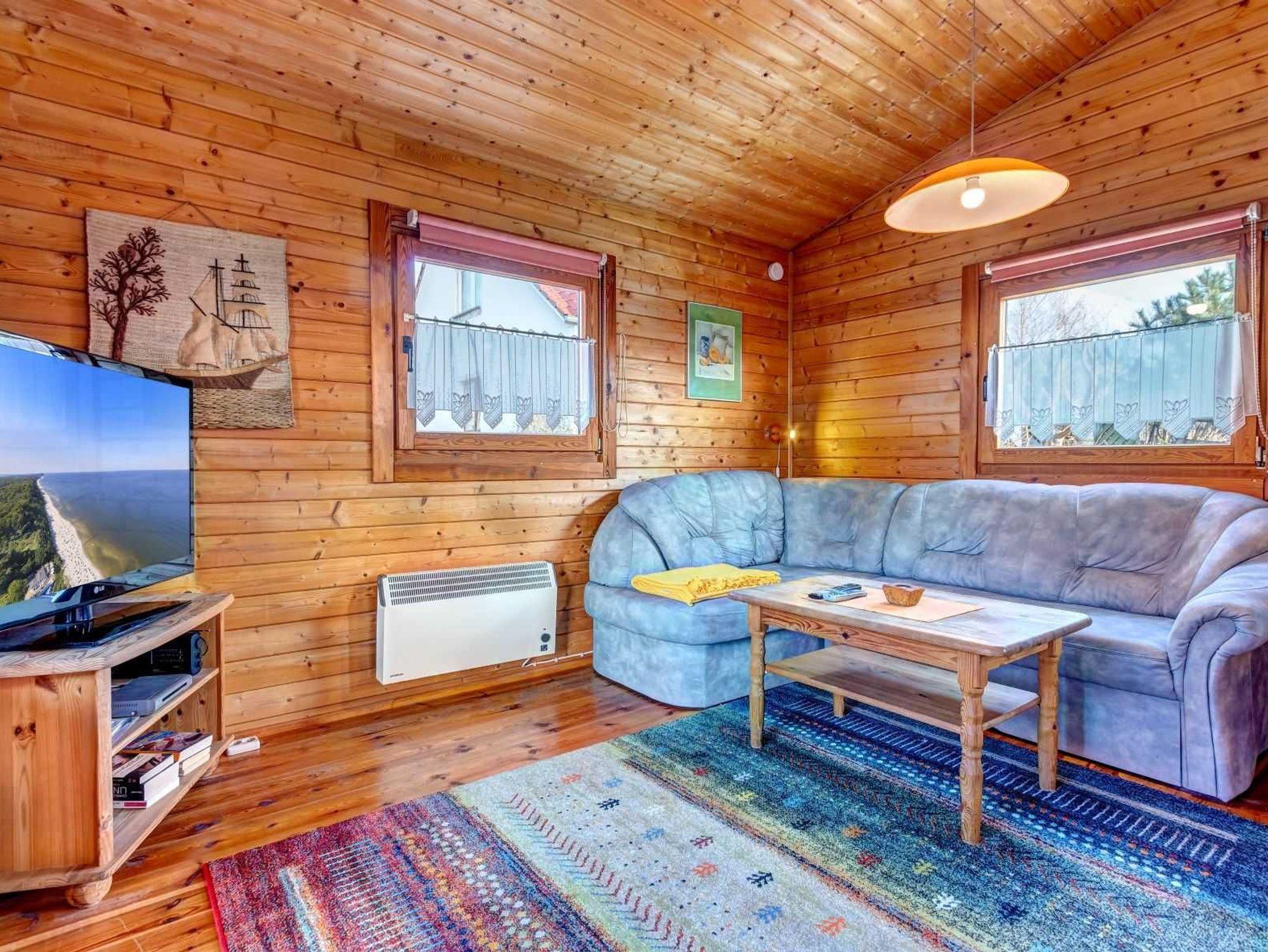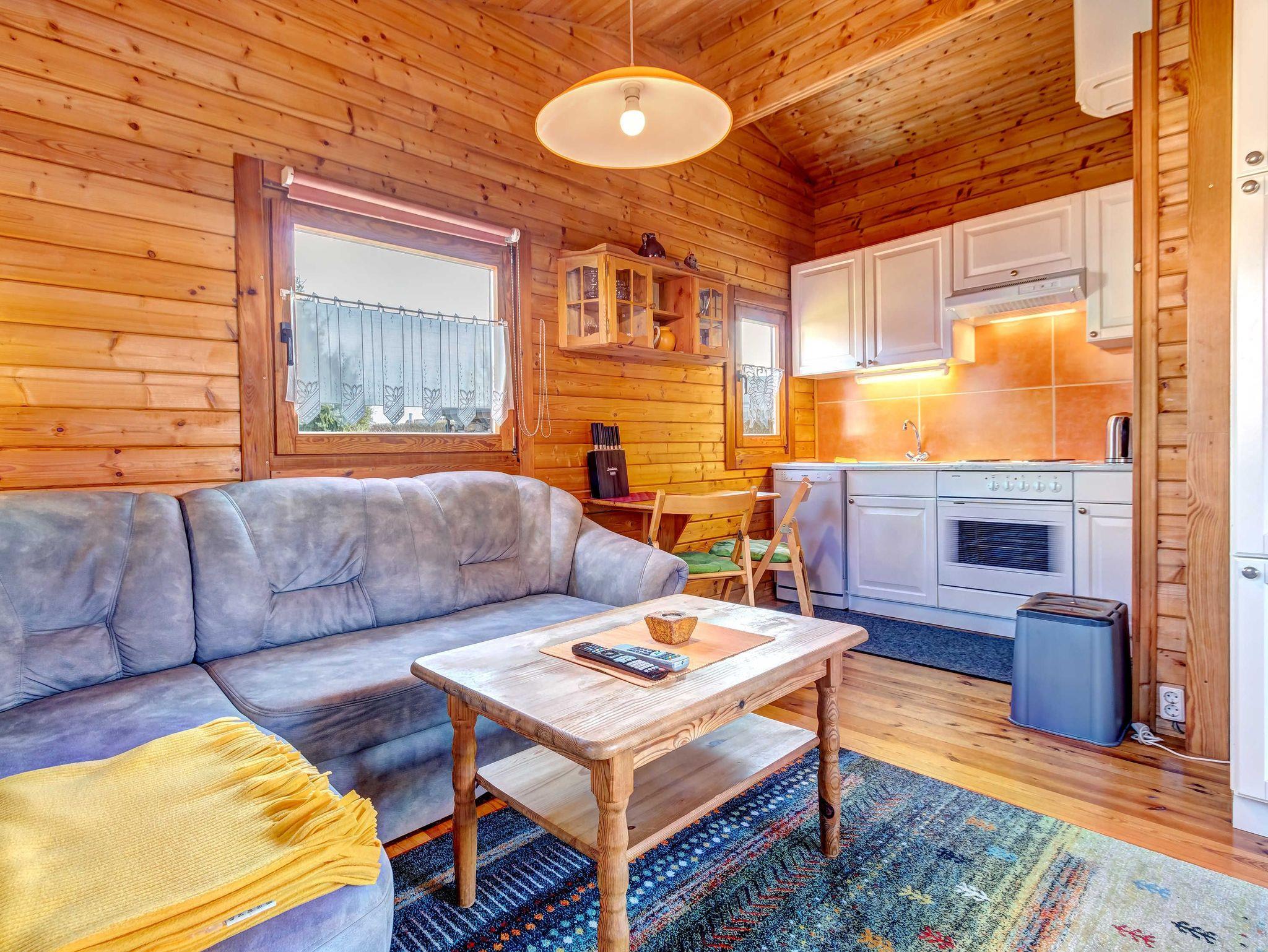 Holzblockhaus bestehend aus einem Wohnzimmer mit integrierter und komplett ausgestatteter Küchenzeile (inkl. Geschirrspüler), einem Schlafzimmer (Doppelbett 1,60 x 2,00 m) sowie Du/WC.