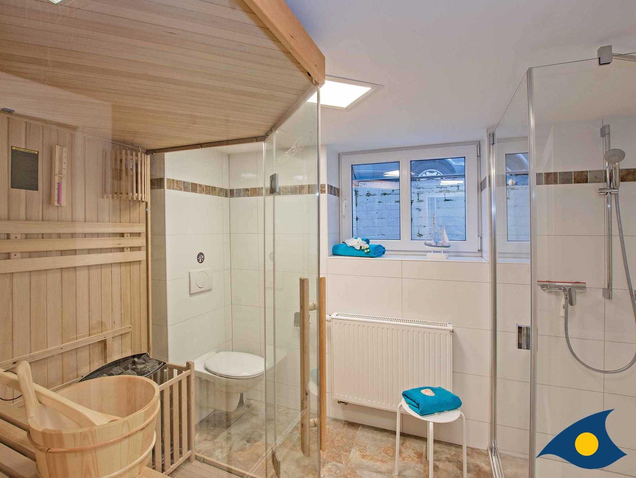 Neben einem Kamin und der Sauna erwarten Sie 3 Schlafzimmer mit einem Doppelbett und 2 Schlafzimmer mit einem Einzelbett.