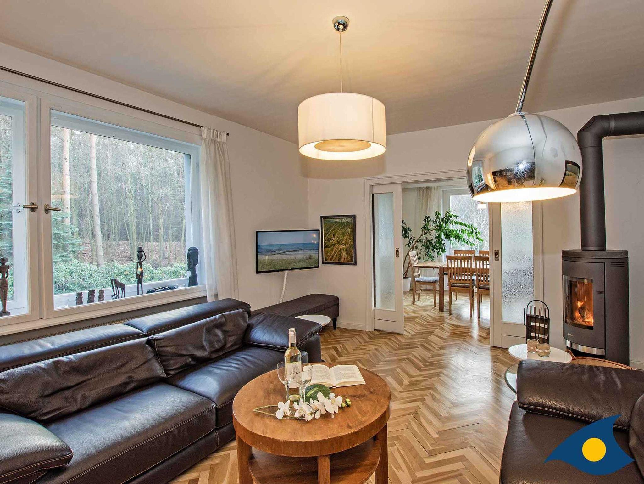 Die Villa Vogelbusch bietet Platz für bis zu acht Personen. Im Erdgeschoss befindet sich der großzügige Koch-, Ess- und Wohnbereich mit Kamin und Terrasse. Die Küche ist hochwertig ausgestattet. Der Parkettboden wurde aufgearbeitet und erstrahlt in neuem Glanz.