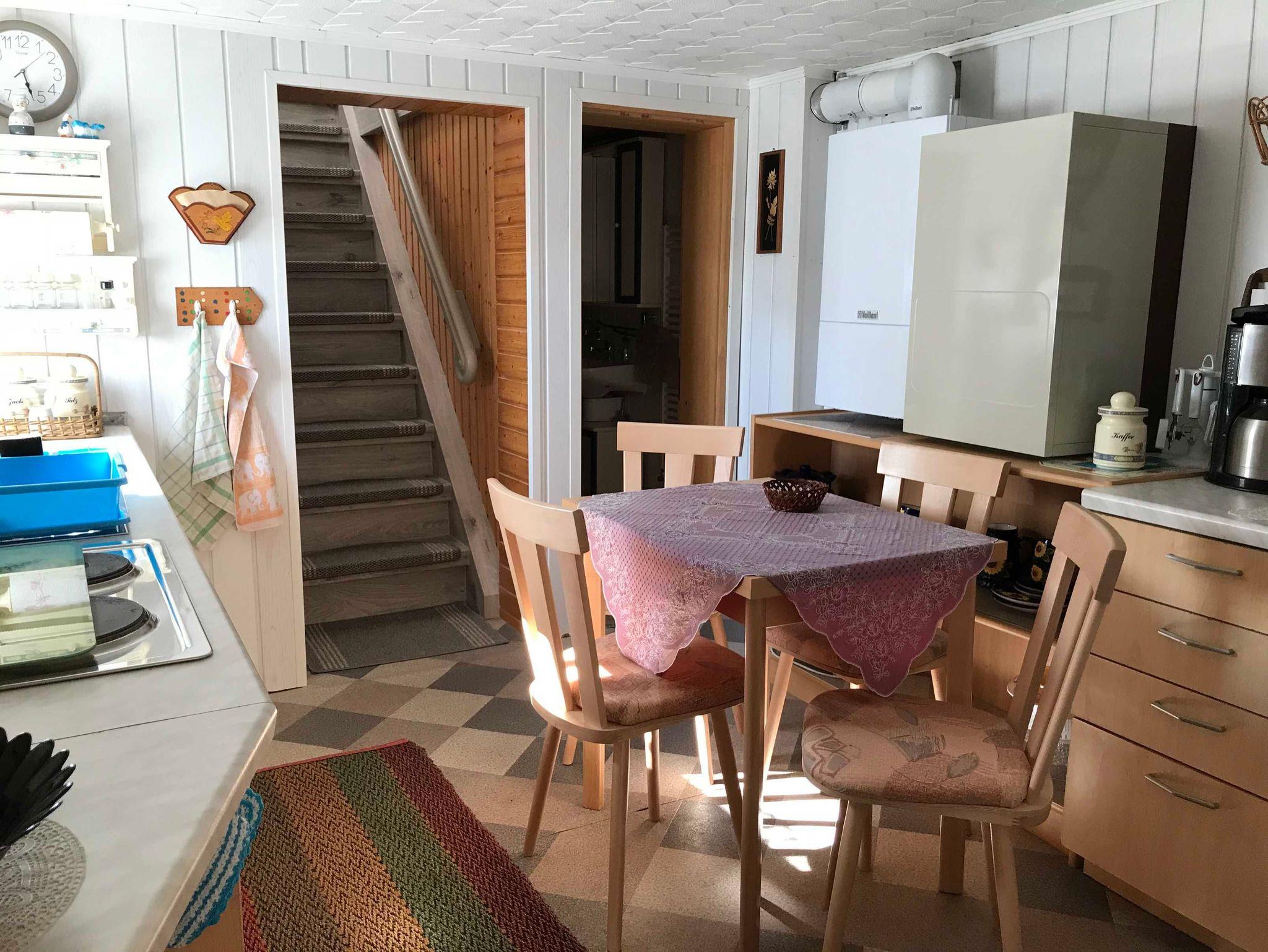 • Im Erdgeschoss: Küche (Küchenzeile mit Kühlschrank, Geschirrspüler, E-Herd, Mikrowelle, Kaffeemaschine, Toaster, Eierkocher, Wasserkocher, Hänge- und Beistellschrank komplett mit Geschirr und Essplatz)