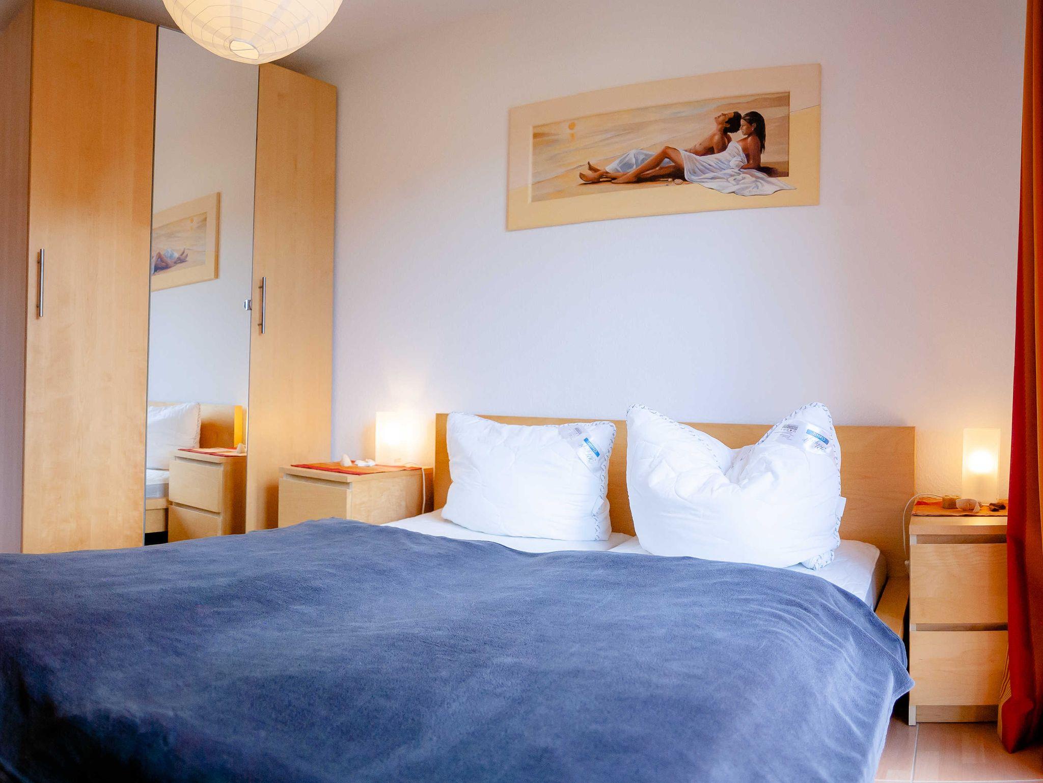 Die Ferienwohnung verfügt über ein Wohnzimmer mit offenem Küchen- und Essbereich, ein separates Schlafzimmer und ein Duschbad. Das Schlafzimmer ist mit einem Doppelbett und Kleiderschrank ausgestattet. Das Wohnzimmer mit ausziehbarer Couchgarnitur ist für die Übernachtung einer Person geeignet. Das Badezimmer mit einer ebenerdigen Dusche und einer Wandheizung zum Trocknen der Handtücher versehen.