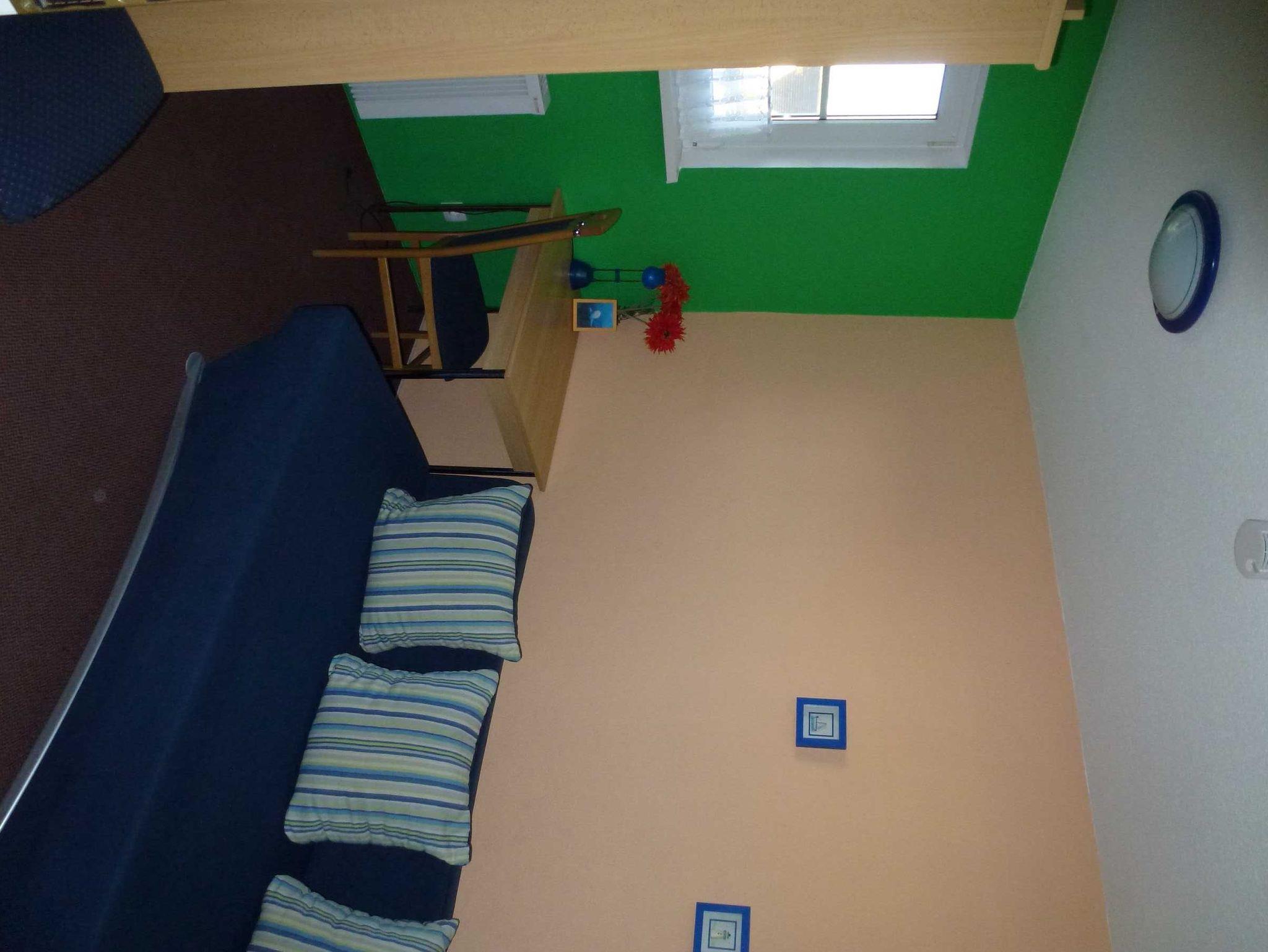 - 1 Schlafraum im OG, ausziehbare Doppelbettcouch (1600 cm x 2000 cm mit stabilen Federkern), Kleiderschrank