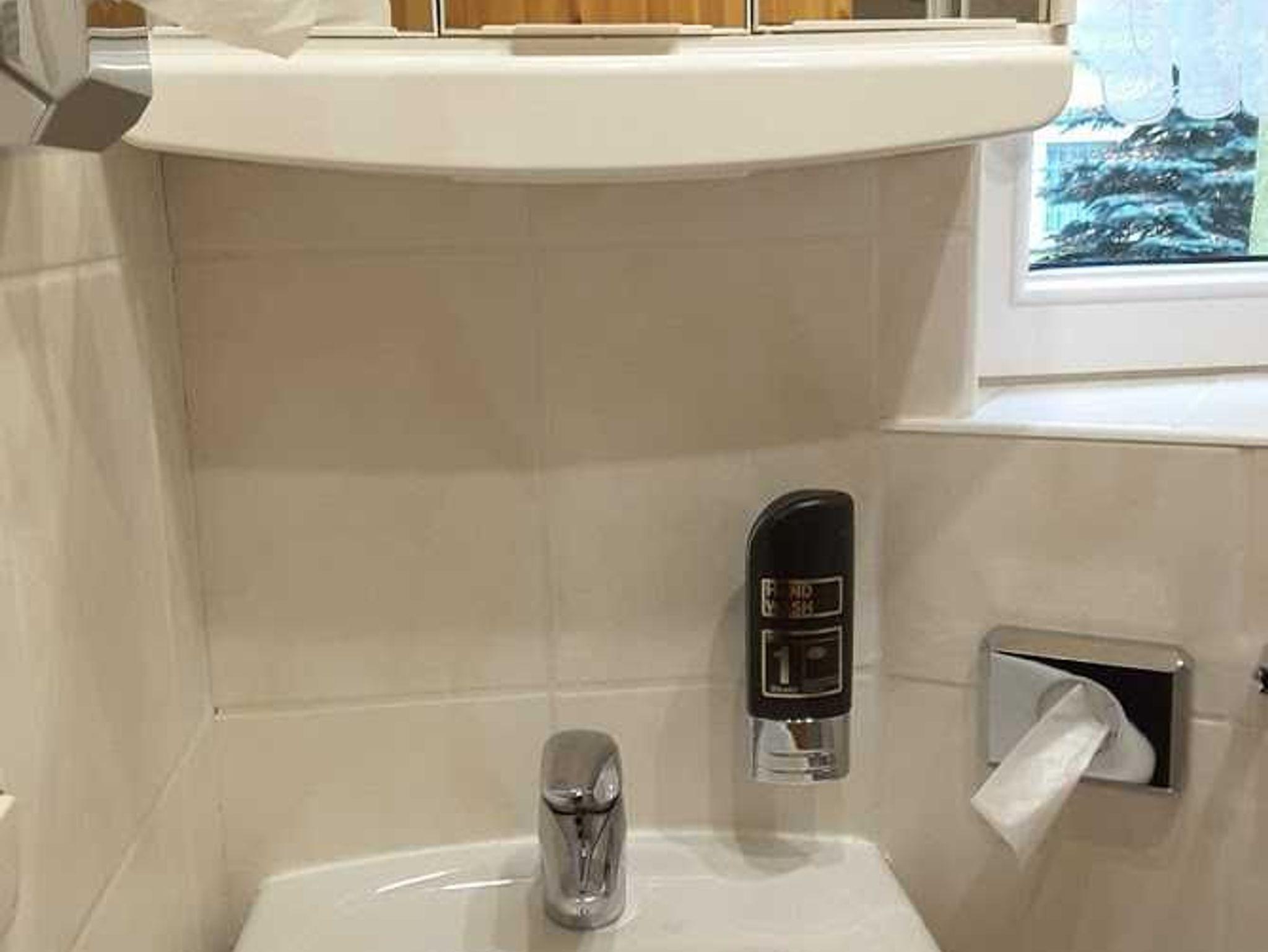 Die offene Pantry-Küche befindet sich auch im Wohnraum, ausgestattet mit Geschirrspüler, Kühlschrank mit Tiefkühlfach, Herd mit Backofen, Kaffeemaschine, sowie Geschirr, Besteck und Kochtöpfe. Für eine wohlige Wärme im Wohnraum sorgt eine