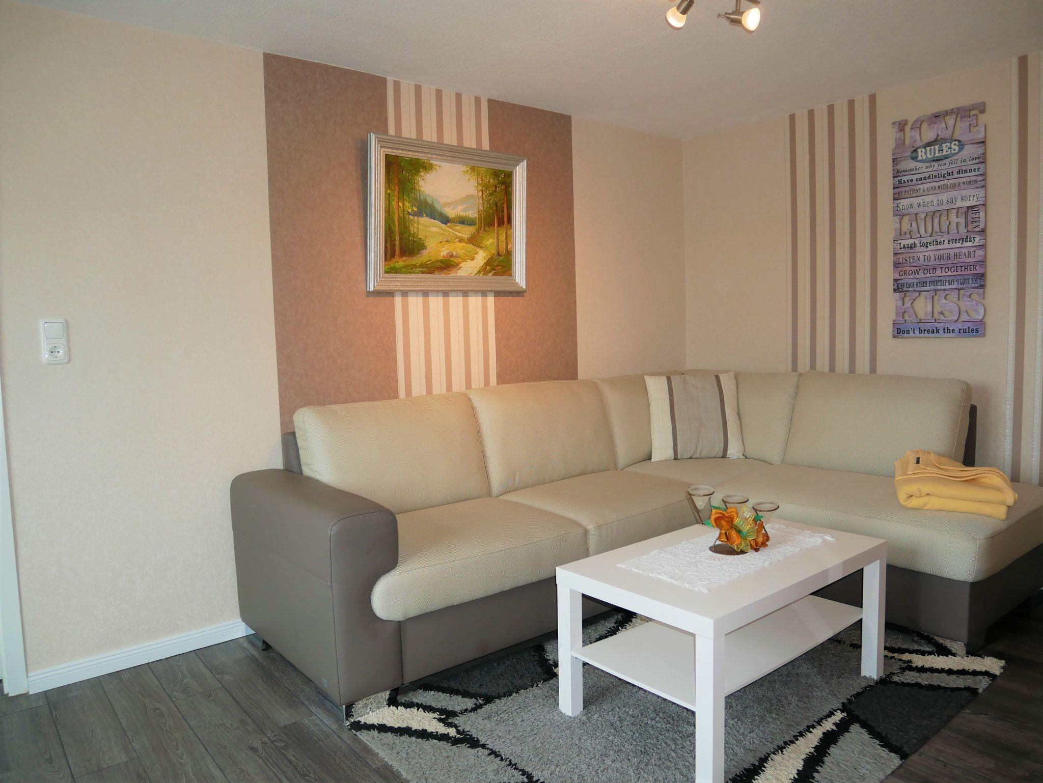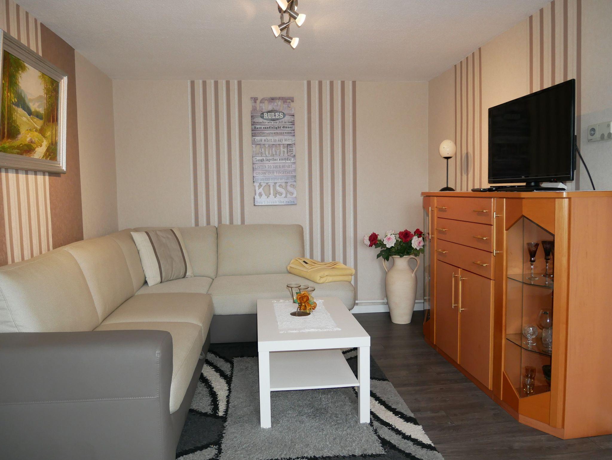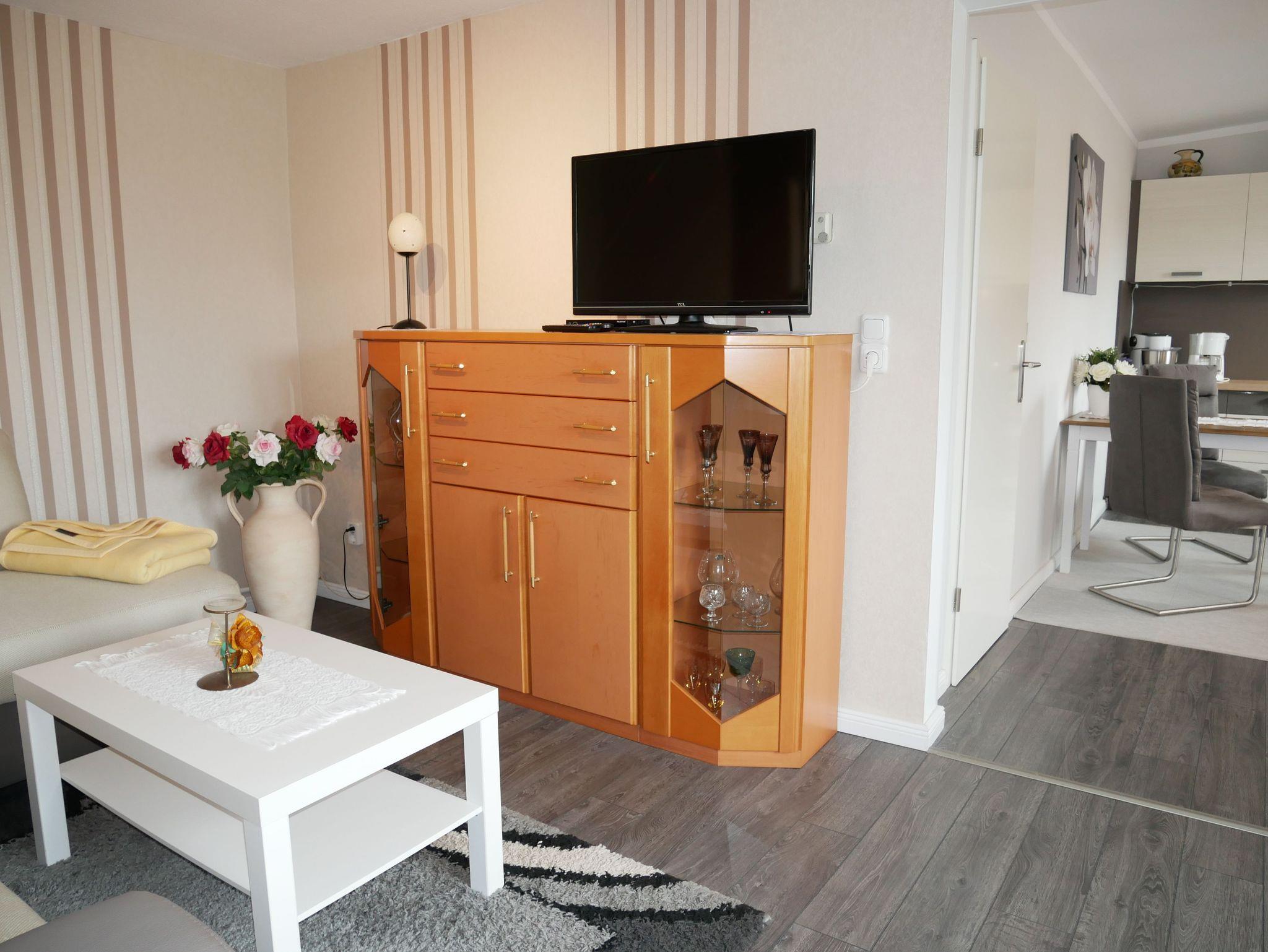 Die schöne 2-Raum-Ferienwohnung verfügt über ein Wohnzimmer, eine Küche und ein separates Schlafzimmer, sowie einem Badezimmer mit Dusche und WC.