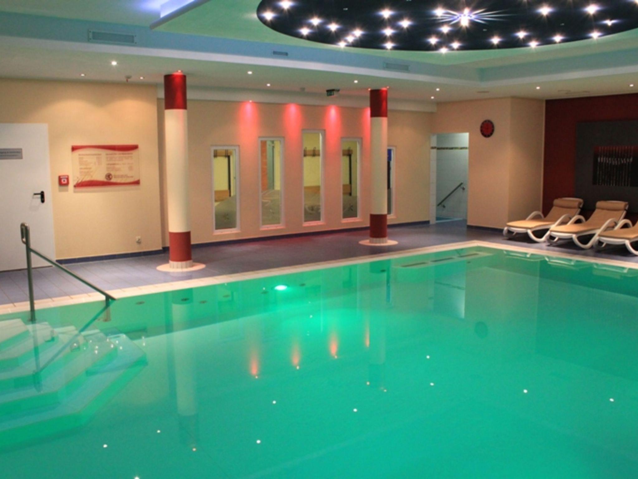 Für Entspannung sorgt unser Wellnessbereich mit großem Pool und Finnischer Sauna mit Außenliegebereich.