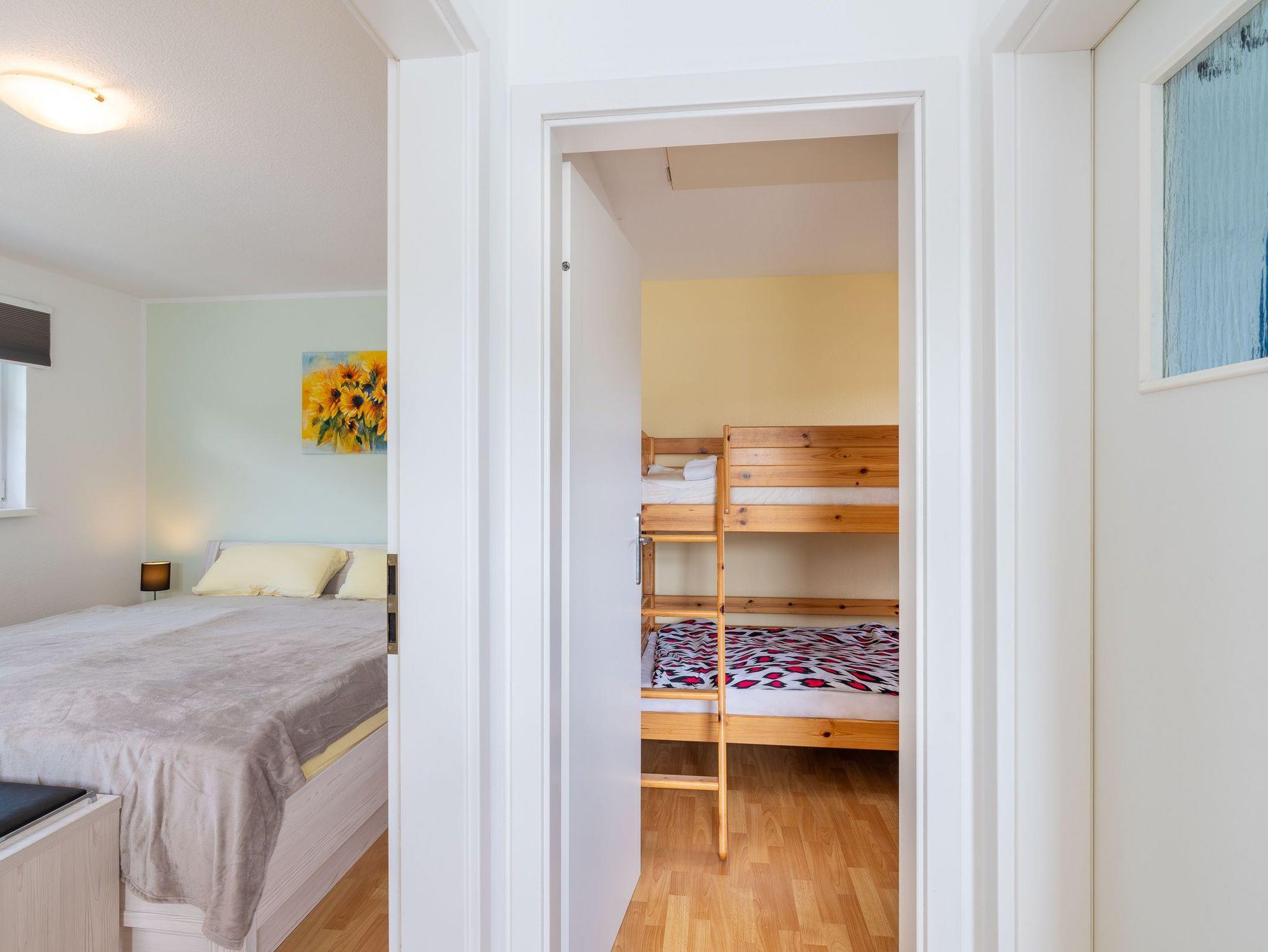 Das Ferienhaus verfügt über ein Wohnzimmer mit offenen Küchen- und Essbereich, ein Duschbad, sowie einen Abstellraum im Erdgeschoss. Im Obergeschoss befinden sich zwei Schlafzimmer und eine Gästetoilette.