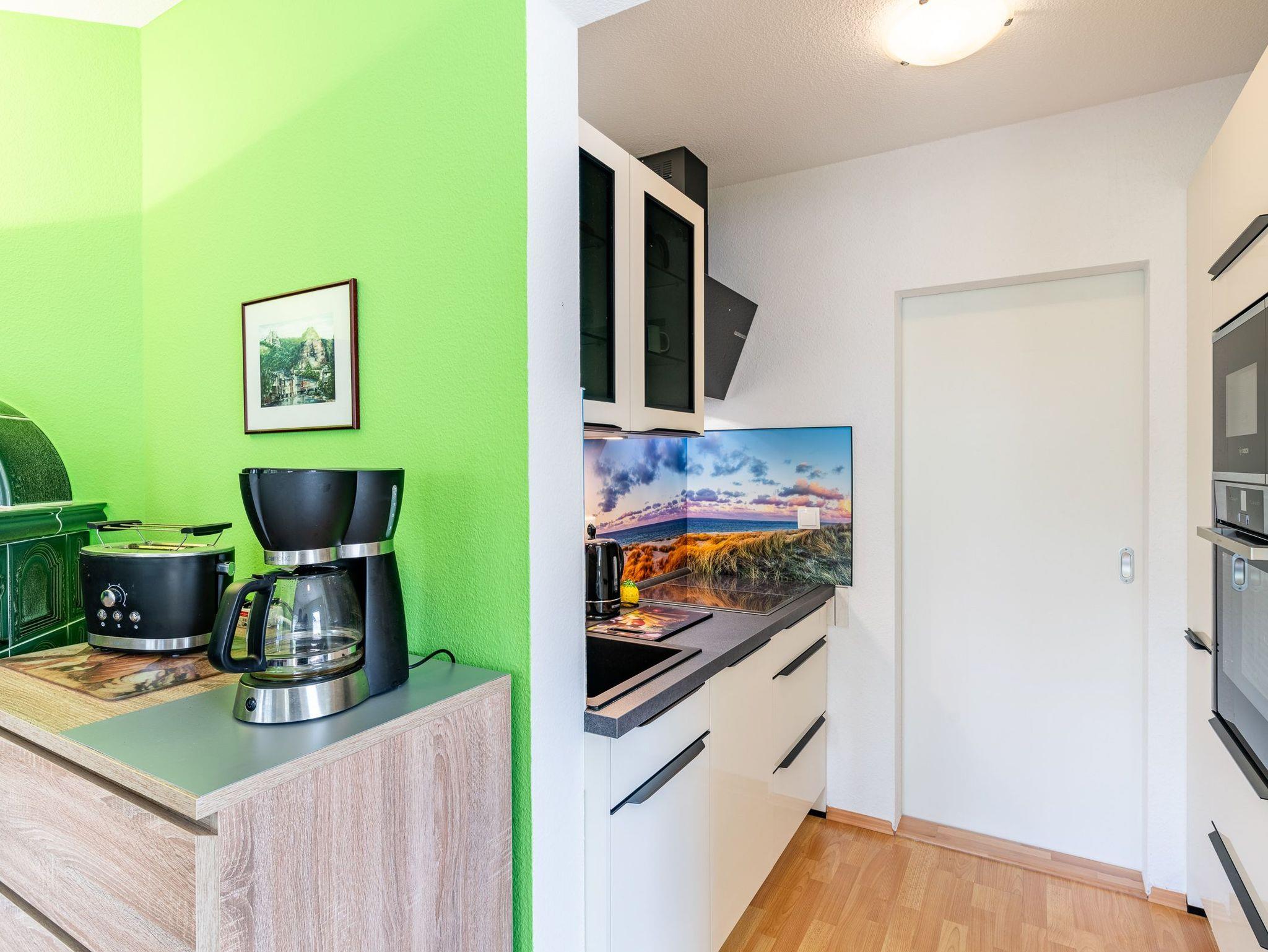 - vollausgestattete Küche mit Herd, Ofen, Geschirrspüler, Kaffeemaschine, Toaster, Wasserkocher, Mikrowelle und Kücheninventar
