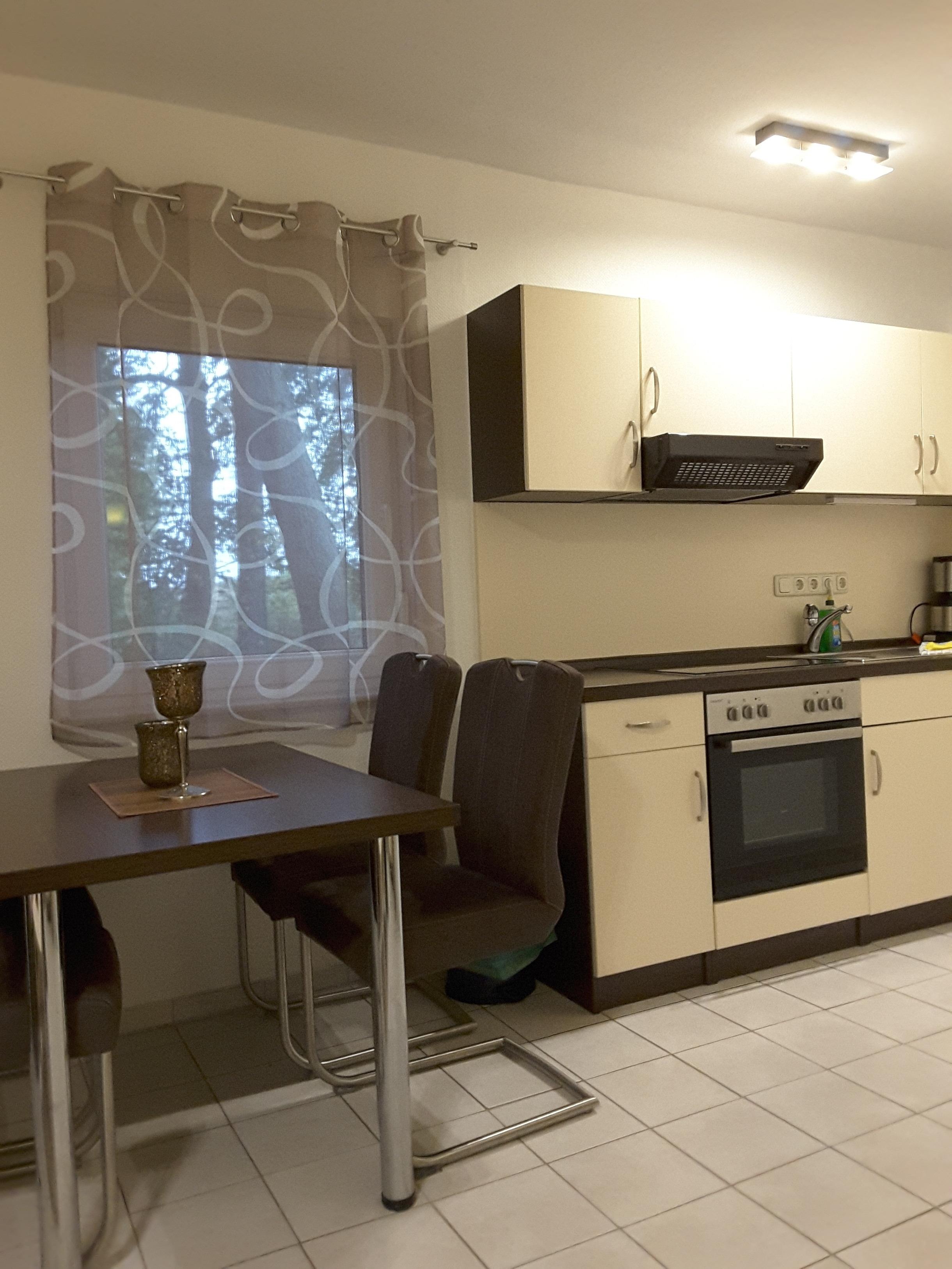 Die Wohnung verfügt über die Grundausstattung mit Kühlschrank, Herd, Kaffeemaschine, Wasserkocher und Sat TV.