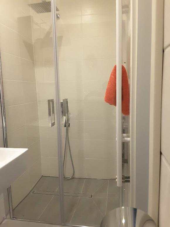 Im Badezimmer befinden sich Dusche und WC.