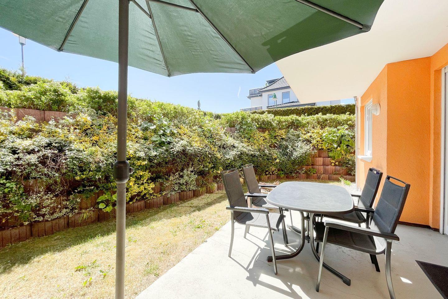 Ein besonderes Highlight ist die überdachte Terrasse, die Ihnen einen wunderschönen Ausblick auf die umliegende Natur bietet. Hier können Sie den Tag mit einer Tasse Kaffee beginnen oder den Abend beim Grillen ausklingen lassen. Der Garten ist ein weiterer Rückzugsort, perfekt für entspannte Stunden im Freien, während die Kinder unbesorgt spielen können. Die kinderfreundliche Ausstattung der Wohnung macht Ihren Aufenthalt komfortabel und unbeschwert.