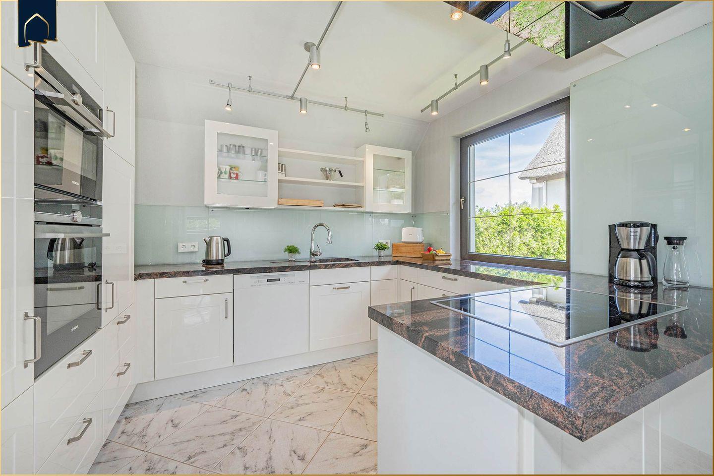 Das Herzstück des Hauses ist der große Wohnbereich mit bequemer Sofaecke, digitalem TV und einem Kaminofen, der an kühlen Abenden für wohlige Wärme sorgt. Fünf separate Schlafzimmer, drei moderne Badezimmer (davon drei Duschen und eine Badewanne), eine voll ausgestattete Küche mit Backofen, Spülmaschine, großem Gefrierfach und Kaffeemaschine sowie ein großzügiger Essbereich mit Esstisch lassen keine Wünsche offen. Für Wellness-Fans steht eine private Sauna zur Verfügung (kostenpflichtig) – ideal zum Entspannen nach einem Tag am Meer.