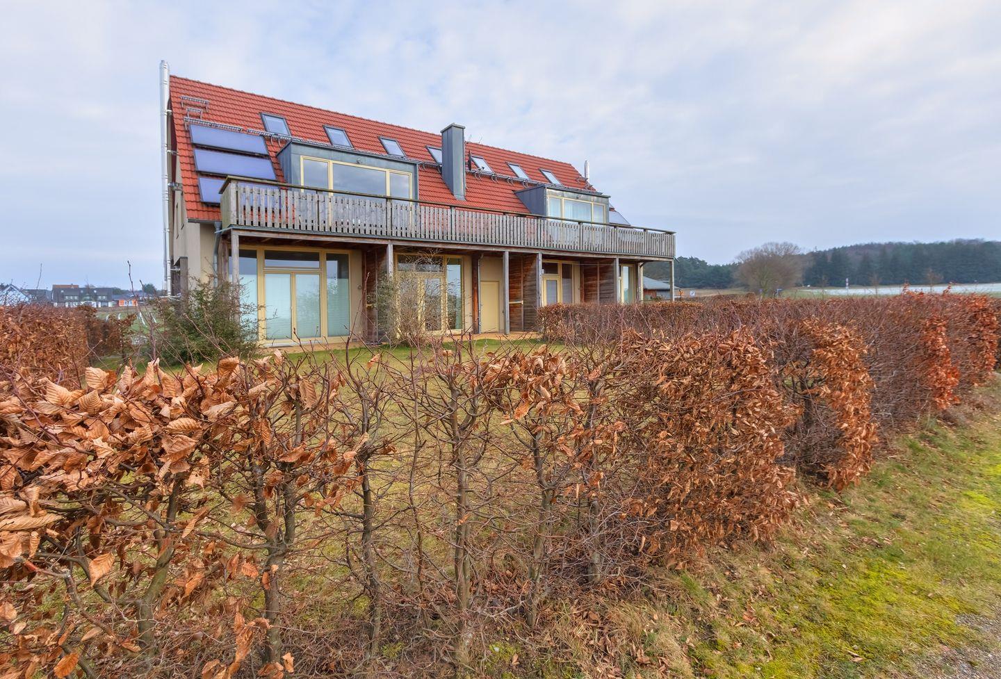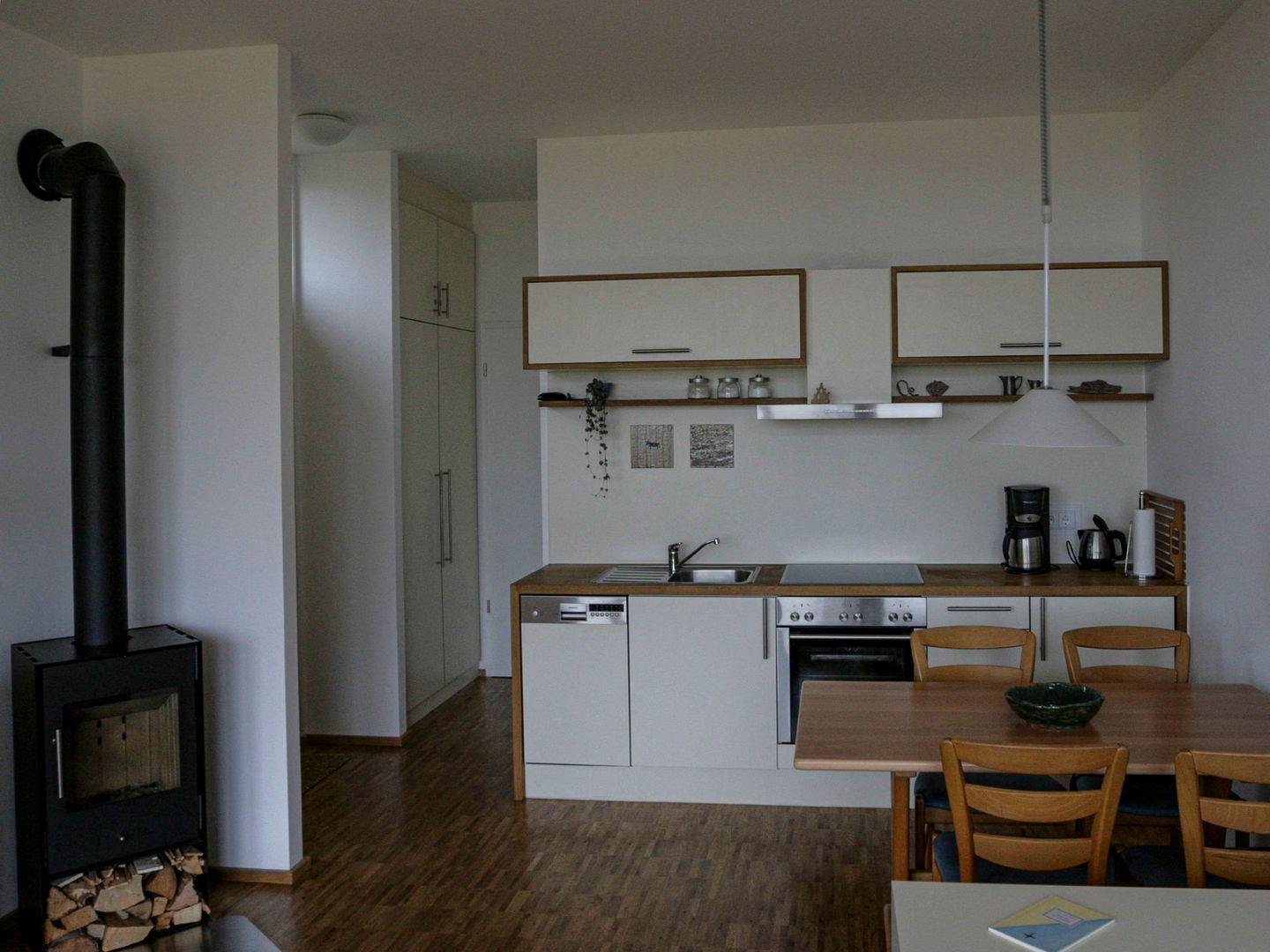 Die Wohnung ist auch durchdacht und funktional ausgestattet. Durch die Fußbodenheizung und den Kamin ist es auch in der kalten Jahreszeit mollig warm. Eine Terrasse (südliche Ausrichtung 4,00 x 2,60 m), von Rosen und Sommerflieder umgeben, lädt zum Essen und Entspannen ein. Schnell ist man mit Rad, Auto, Bahn und Bus oder zu Fuß am Meer, im herrlichen Buchenwald, in den Kaiserbädern und in gastronomischen Einrichtungen.